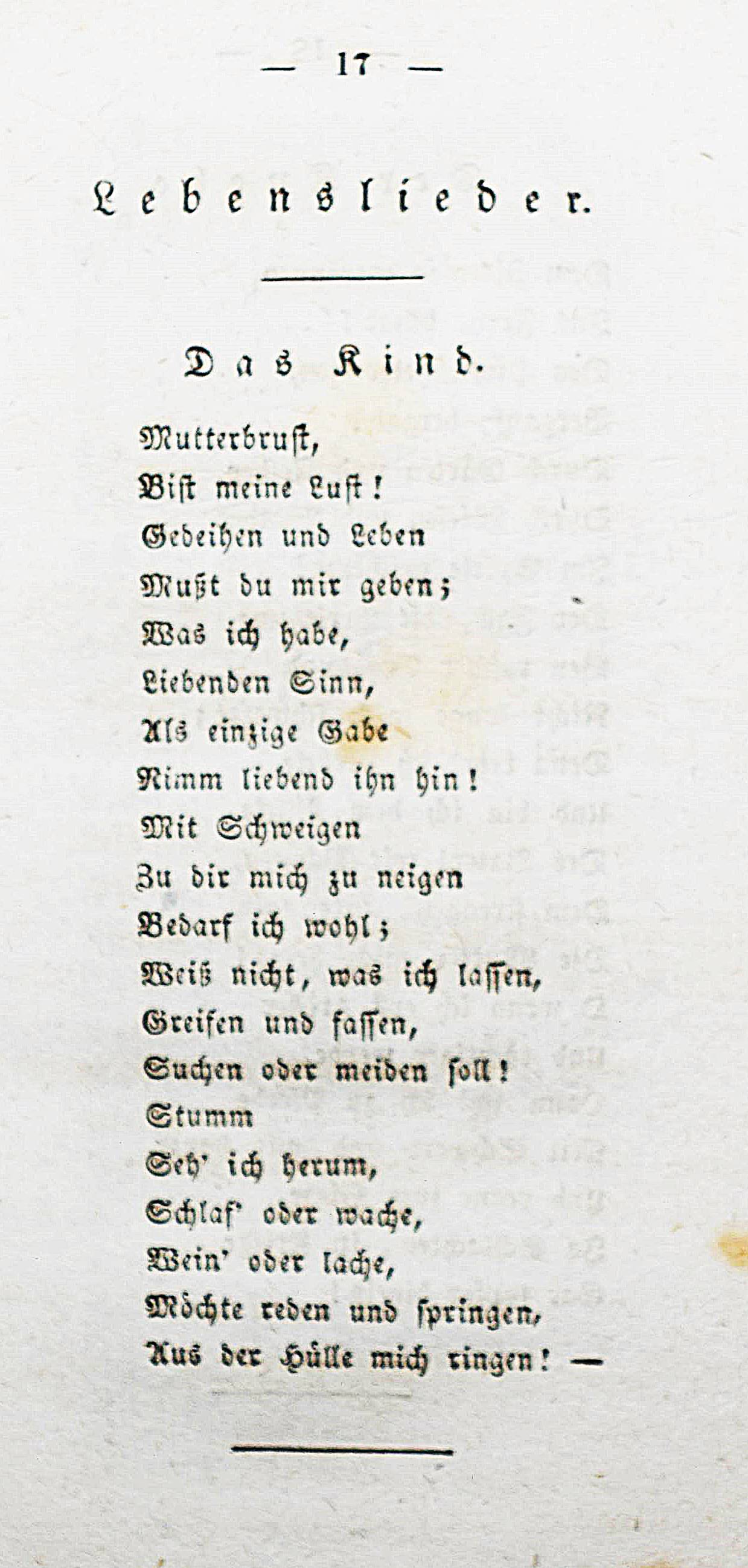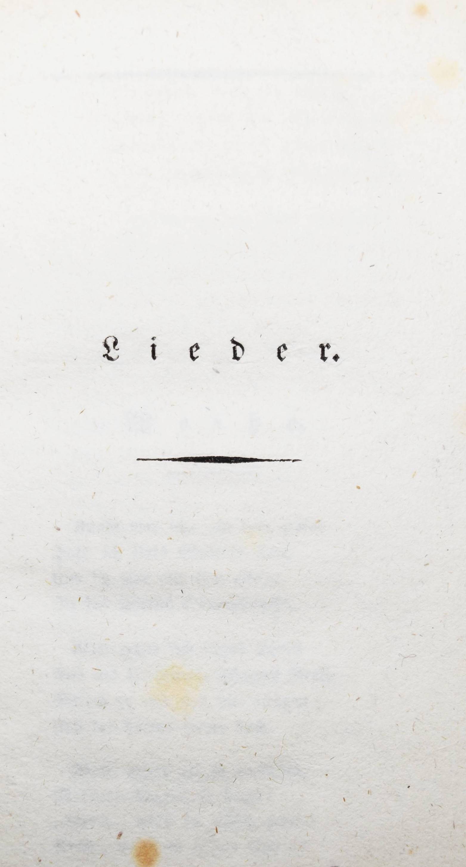 (Beck, Friedrich. Gedichte). München, Wolf 1829. Kl.-8°. 1 Bl., 116 S., 1 Bl. Typogr. OBr. Titelblatt fehlt, mit leichten Gebrauchsspuren, stockfl., gutes Exemplar.