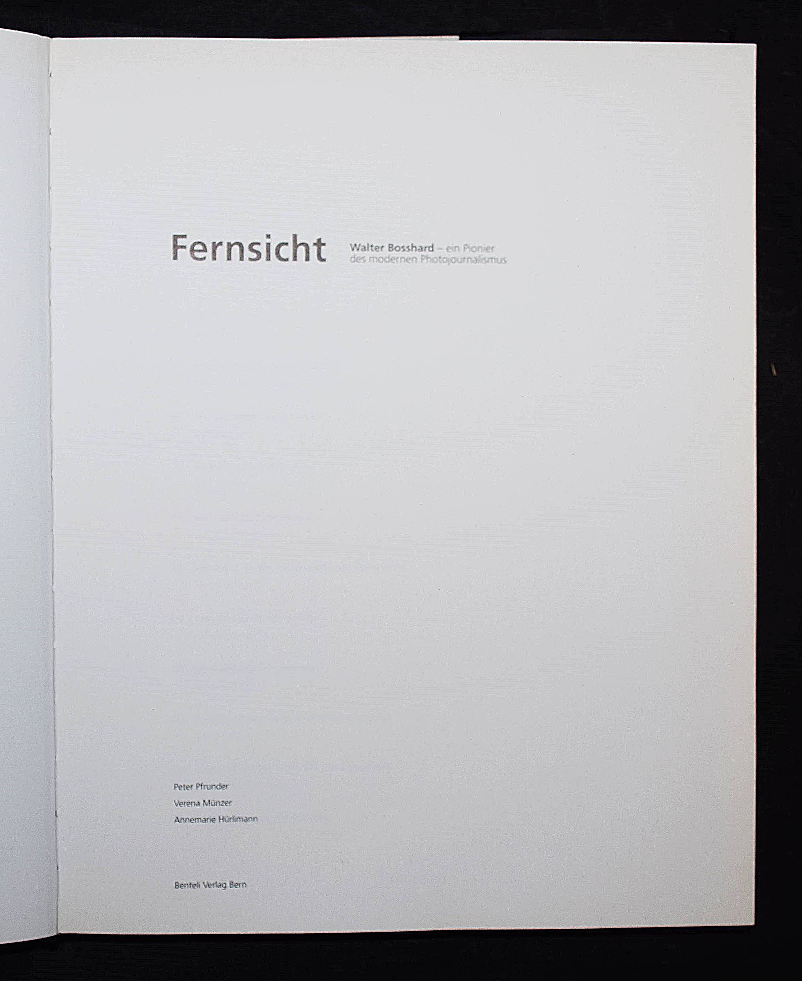 Bosshard, Walter. Fernsicht. Ein Pionier des modernen Photojournalismus. Bern, Benteli 1997. 4°. 238 S. mit zahlr. Abb. OLn. mit illustr. OU. (Schweizer Photographie, 13). Sehr gutes Exemplar.