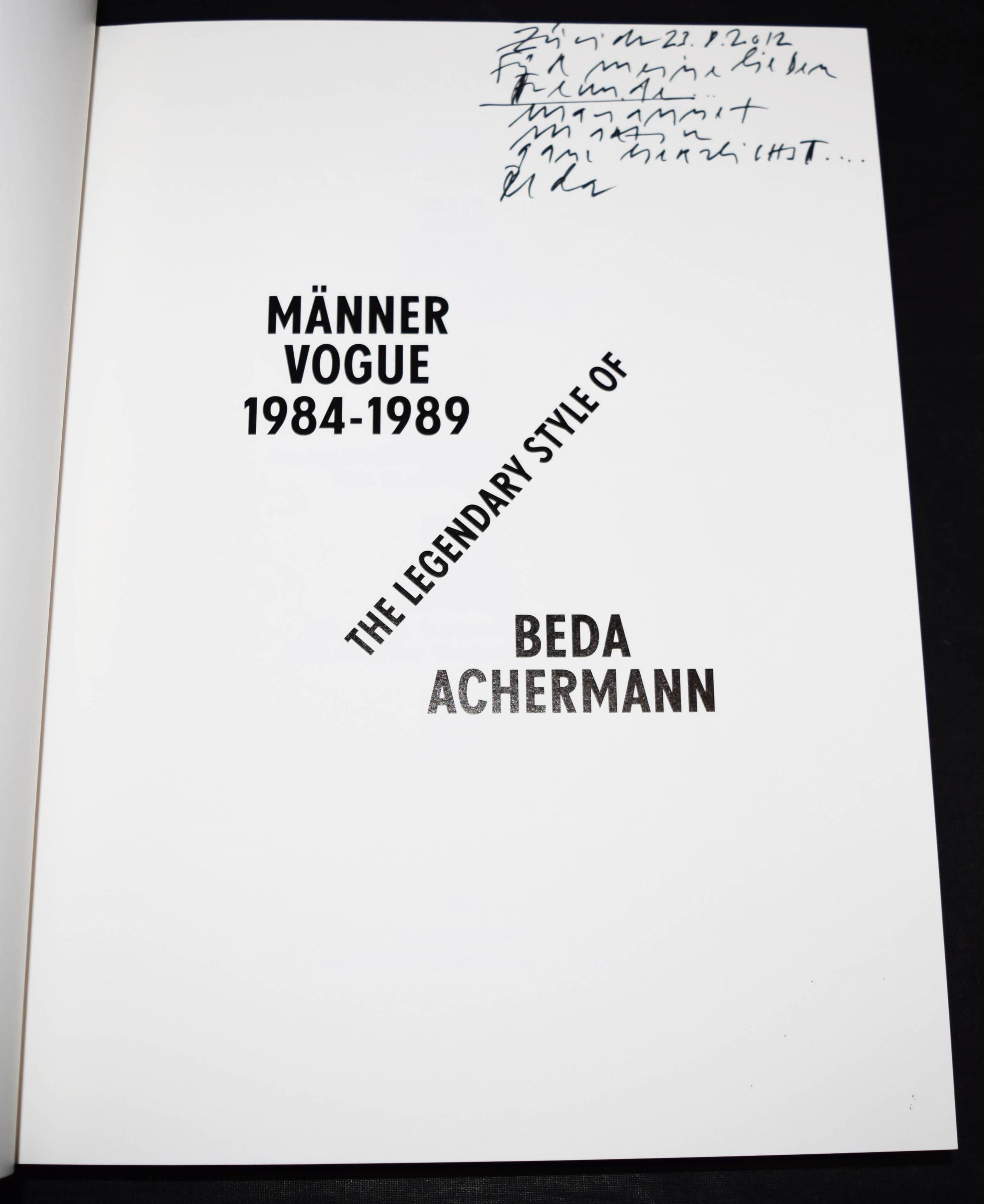 Achermann, Beda. Big time. The legendary style of Männer Vogue. 1984 – 1989. Vorwort von Karl Lagerfeld. Text von Mario Testino. Göttingen, Edition 7L / Steidl 2012. 4°. 397 S. überw. teils farb. Abb. OKart. mit Orig.-Pappschuber. Mit eigenhändiger Widmung von Beda Achermann auf dem Nebentitel. – Sehr gutes und sauberes Exemplar.