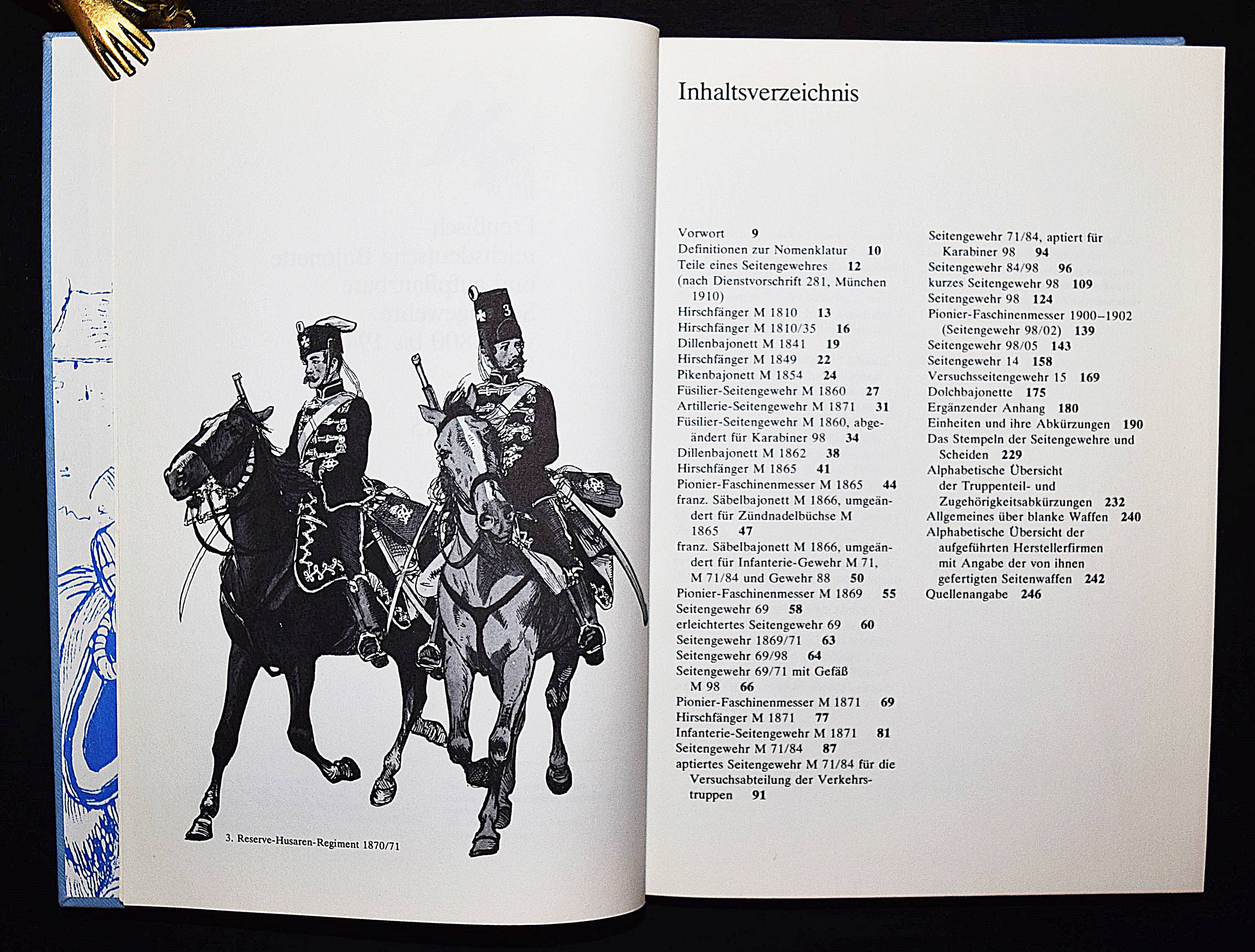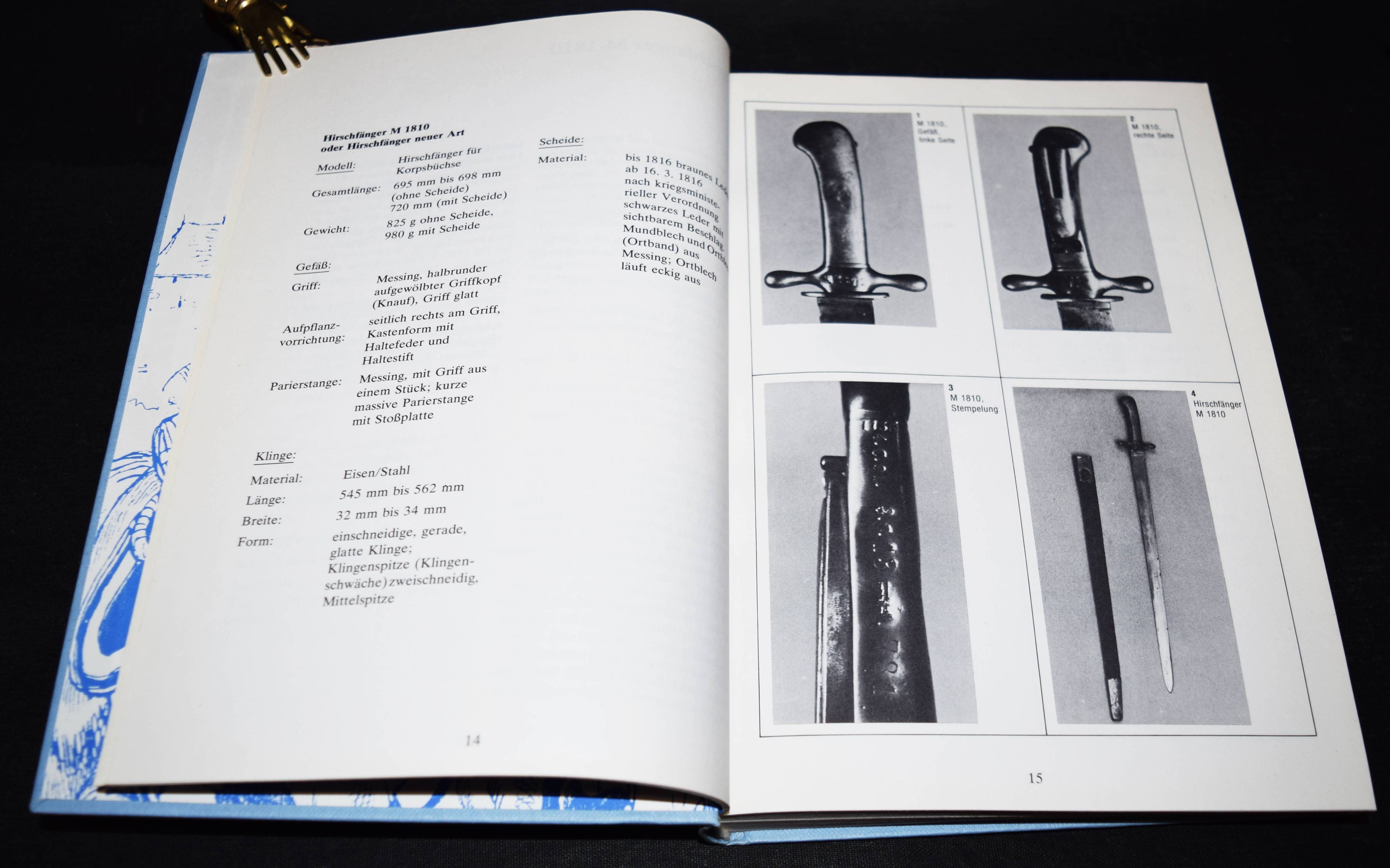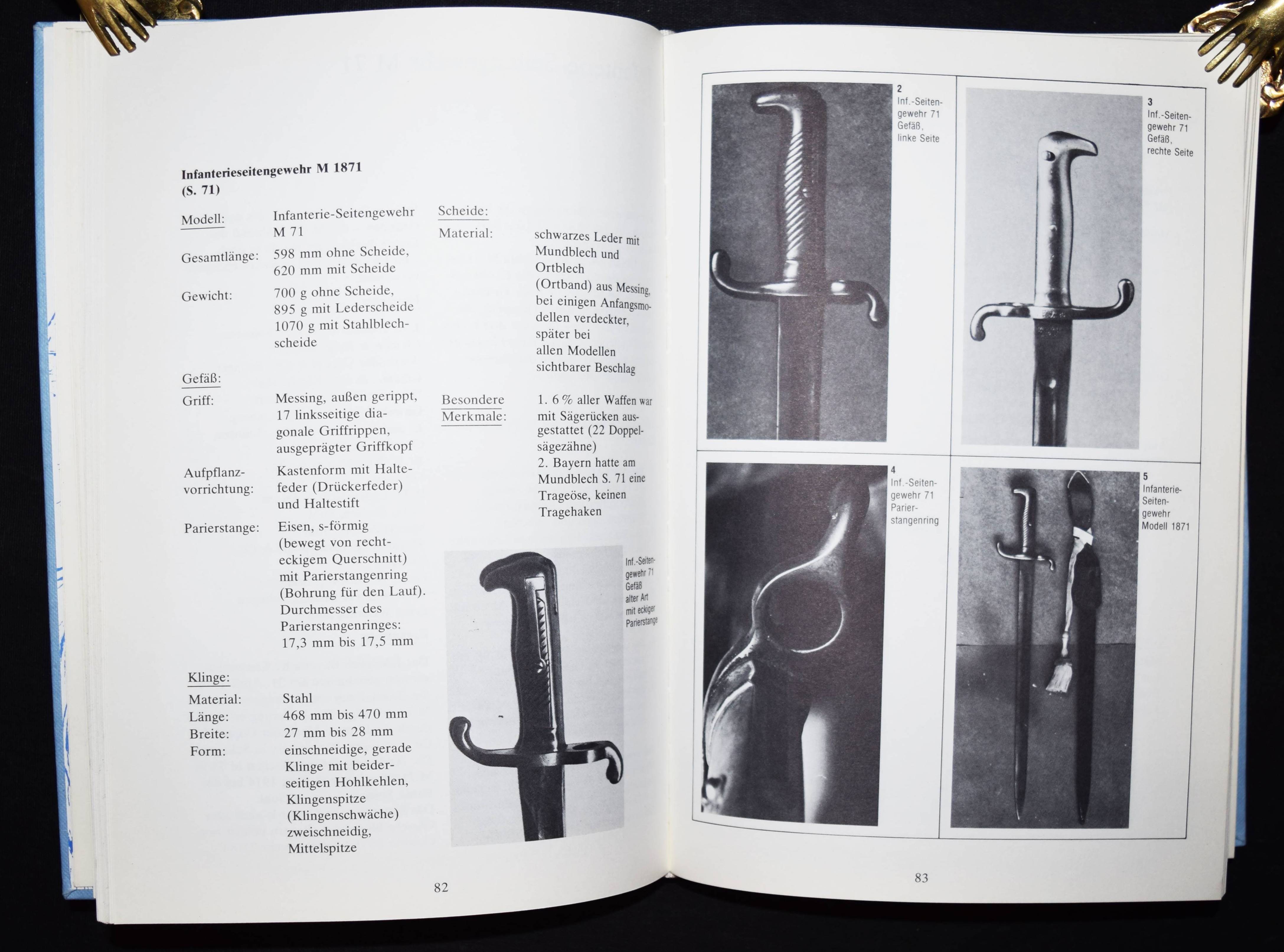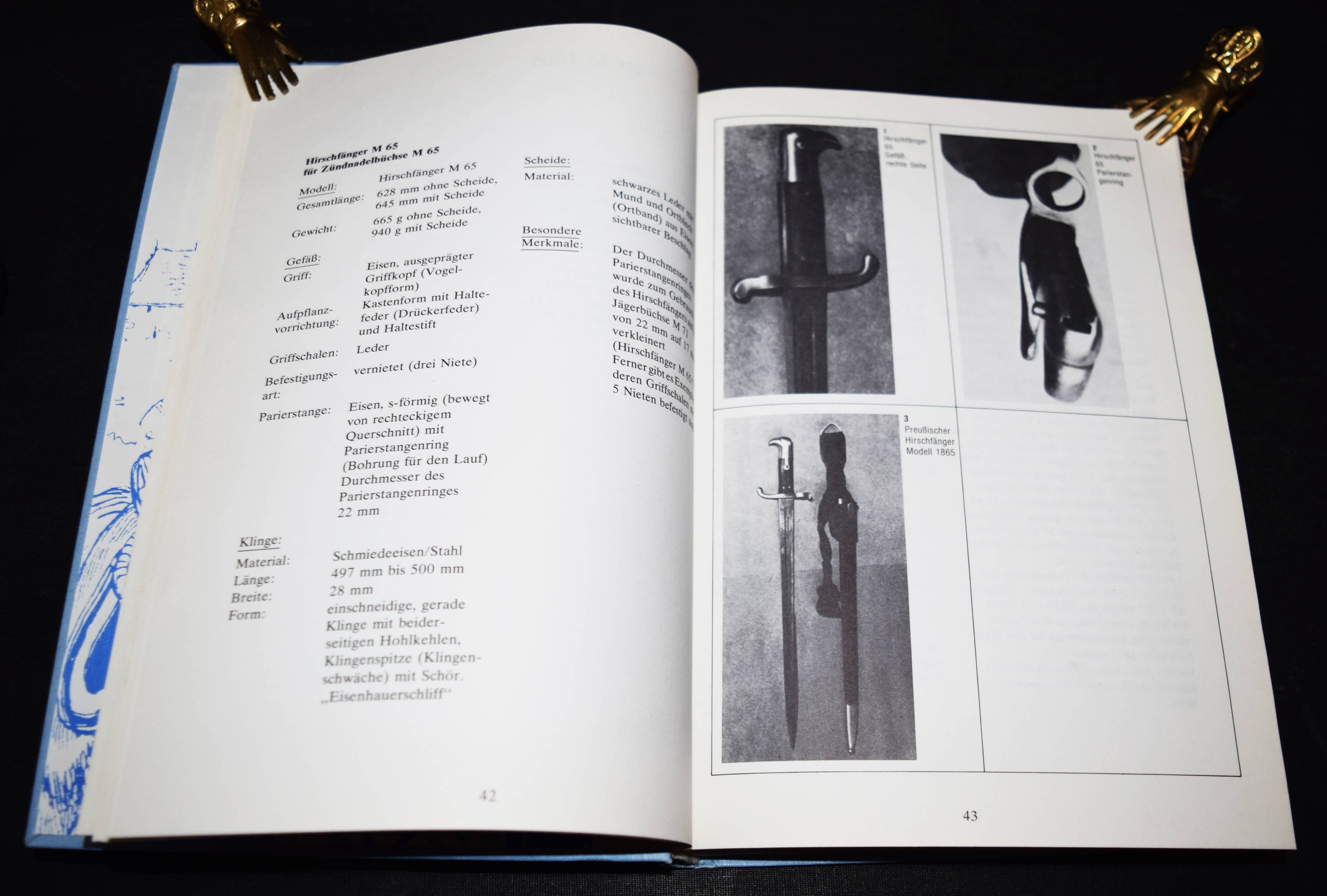 Franz, Rüdiger (W. A). Preußisch-reichsdeutsche Bajonette und aufpflanzbare Seitengewehre von 1800 – 1945. Teil 1: 1800-1915 1. Aufl. Schwäbisch Hall, Schwend 1979. Gr.-8°. 247 S. mit zahlr. Abb. OPbd. (Ein Leitfaden für den Blankwaffensammler). Gutes Exemplar.