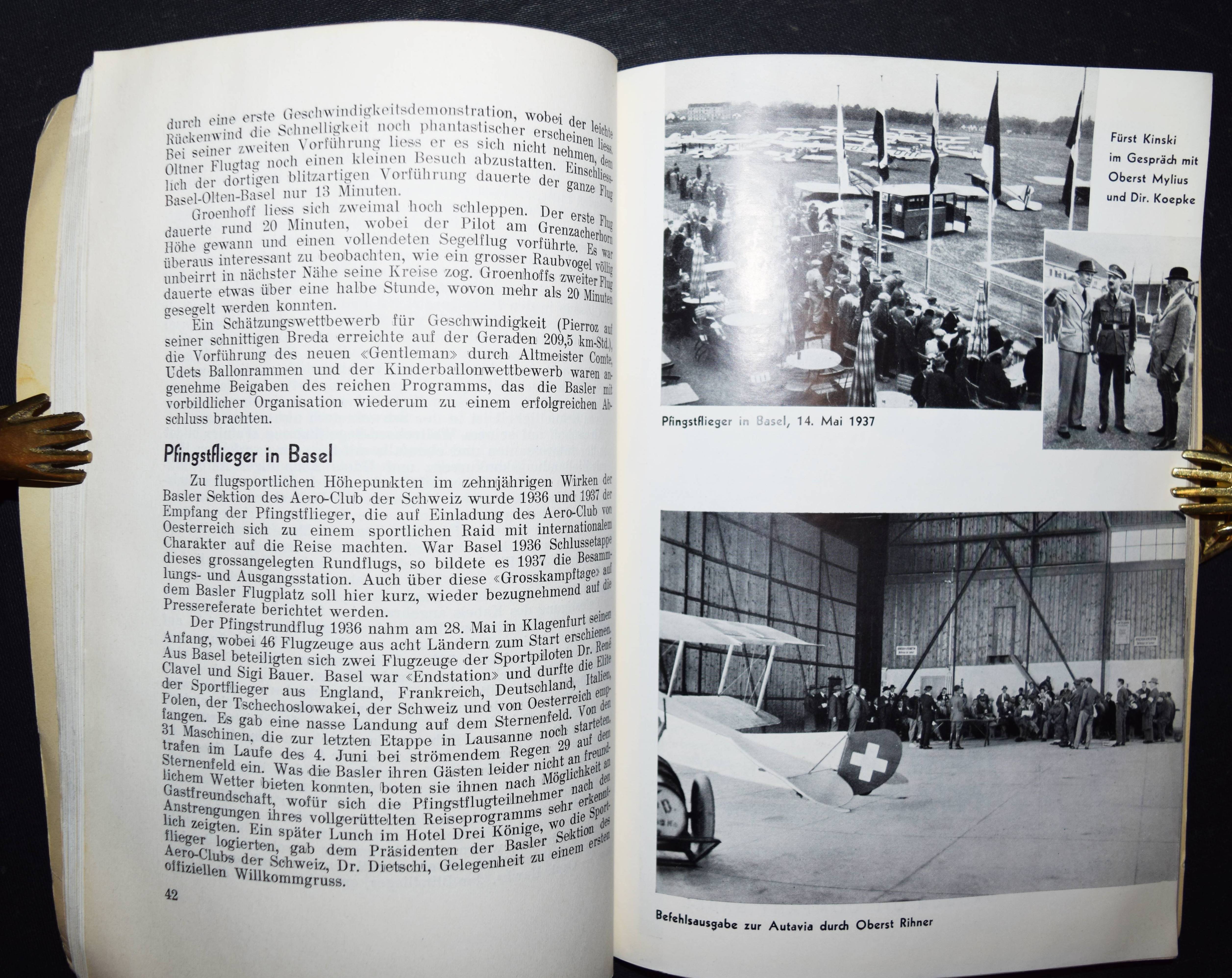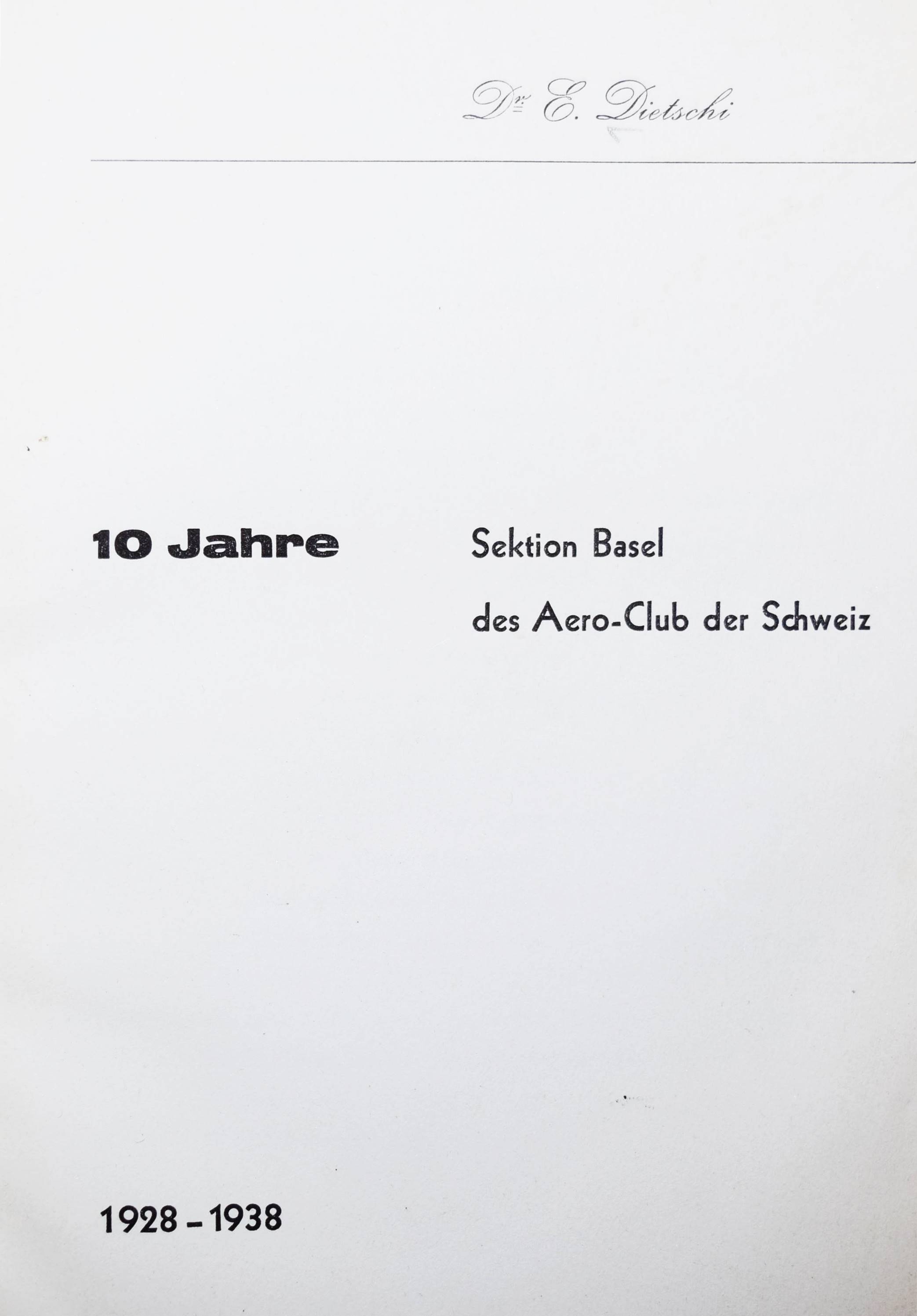 Dietschi, E(ugen). 10 Jahre Sektion Basel des Aero-Club der Schweiz 1928 – 1938. Basel, Buchdruckerei der Nationalzeitung 1938. 8°. 83 S., 2 Bl. OKart. Gutes Exemplar.