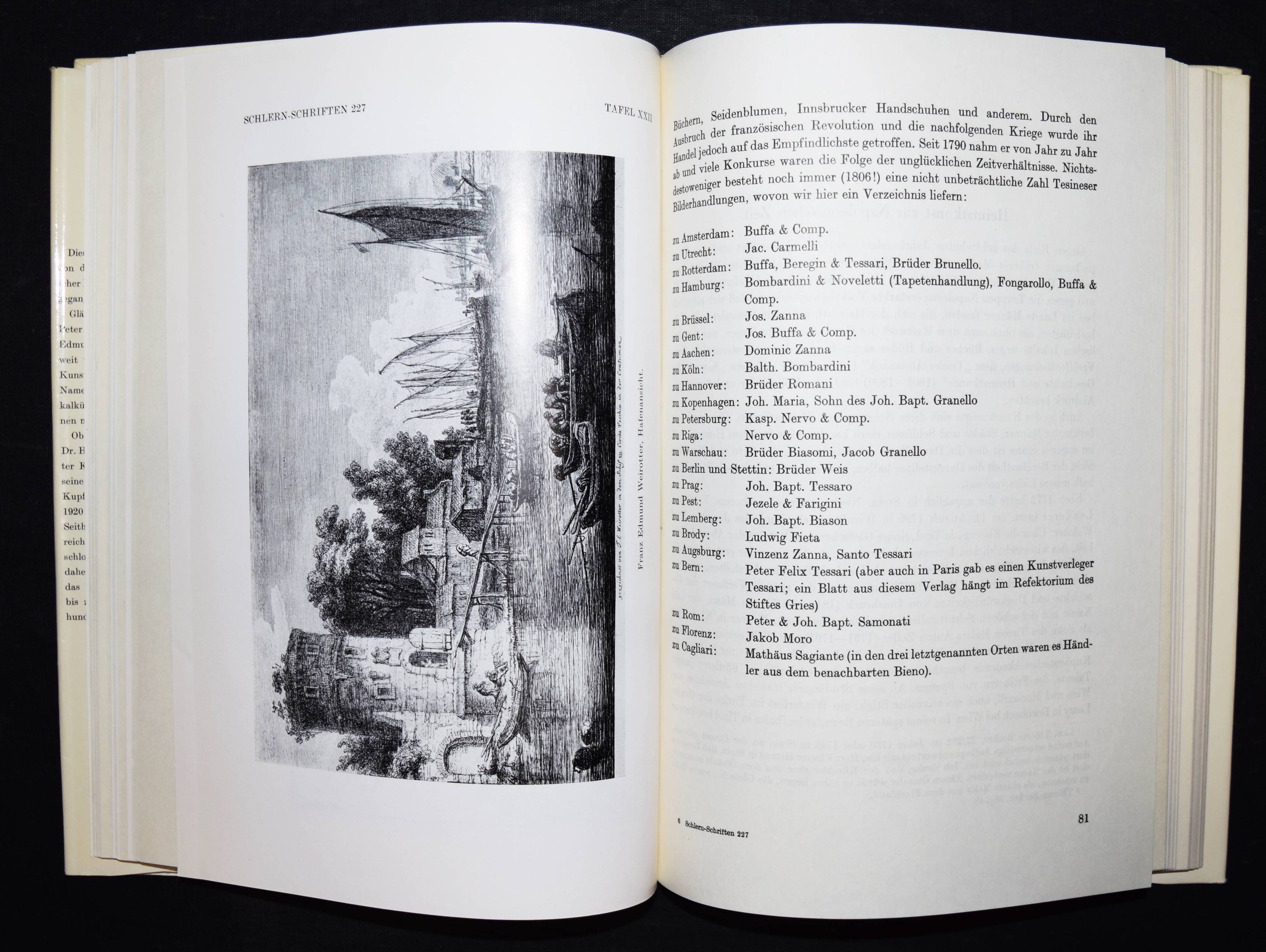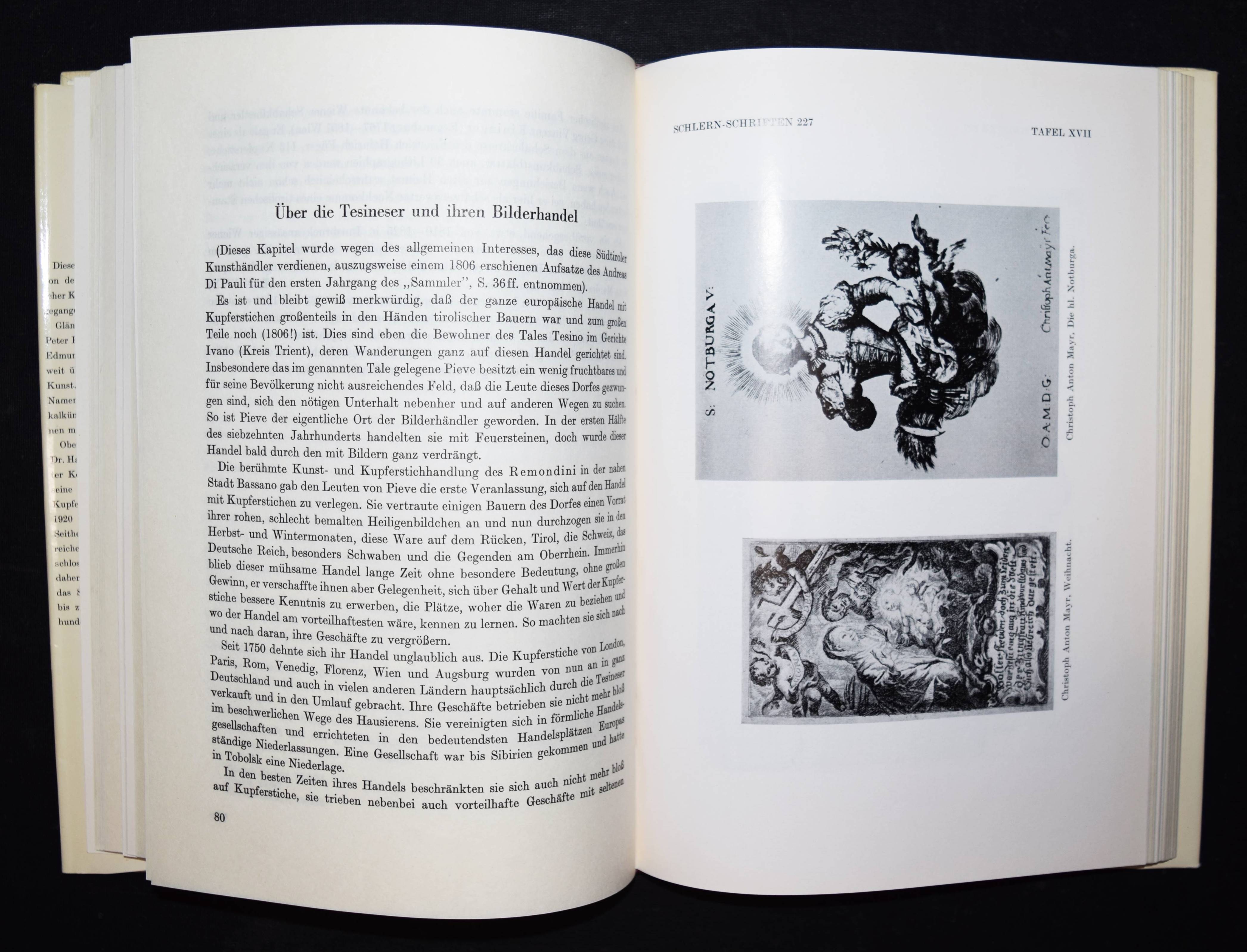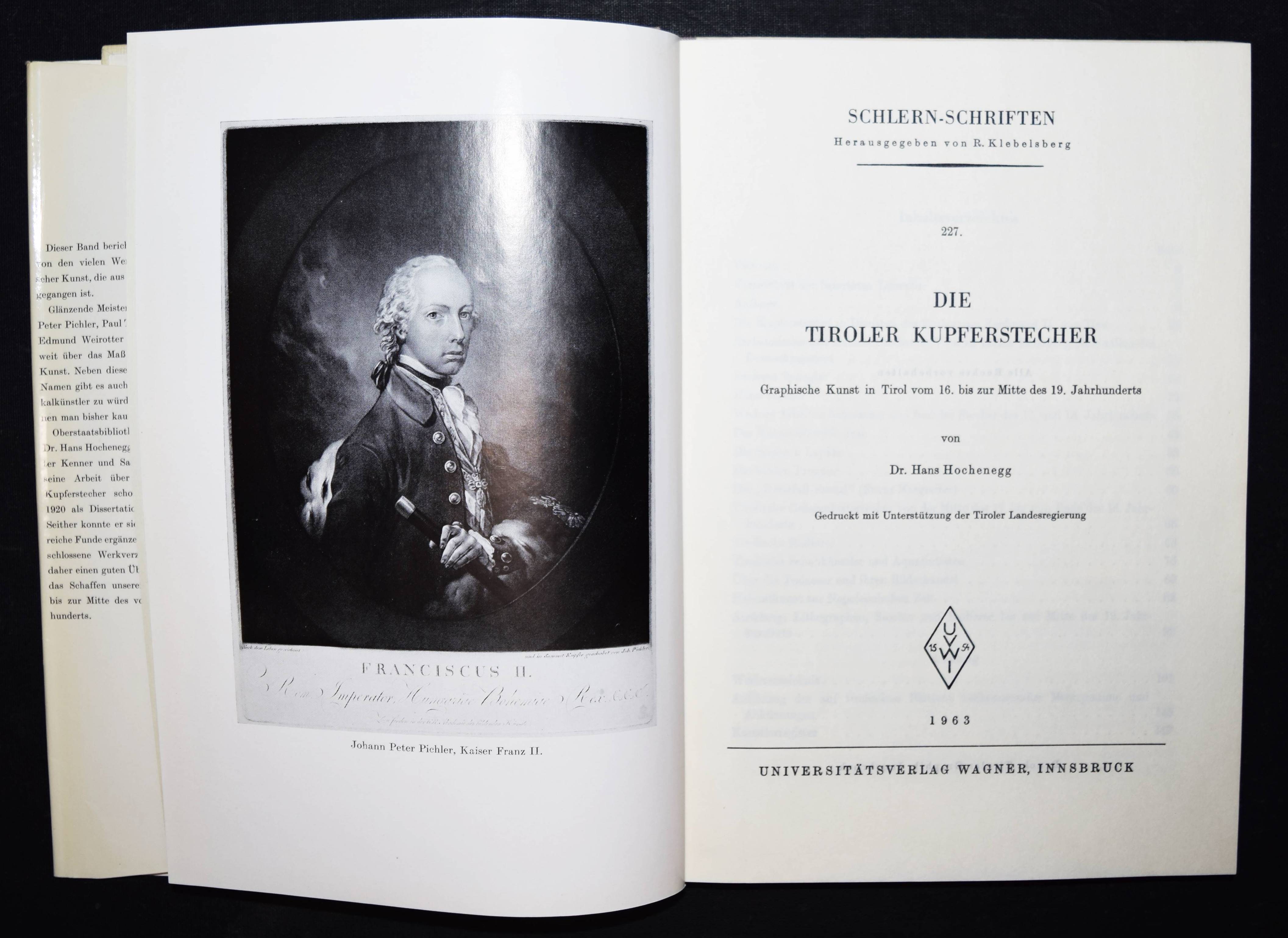 Hochenegg, Hans. Die Tiroler Kupferstecher. Graphische Kunst in Tirol vom 16. bis zur Mitte des 19. Jahrhunderts. Innsbruck, Wagner 1963. 153 S. mit zahlr. Abb. OHln. mit illustr. OU. (Schlern-Schriften, 227). Schutzumschlag mit Gebrauchsspuren, sonst sehr gutes Exemplar.