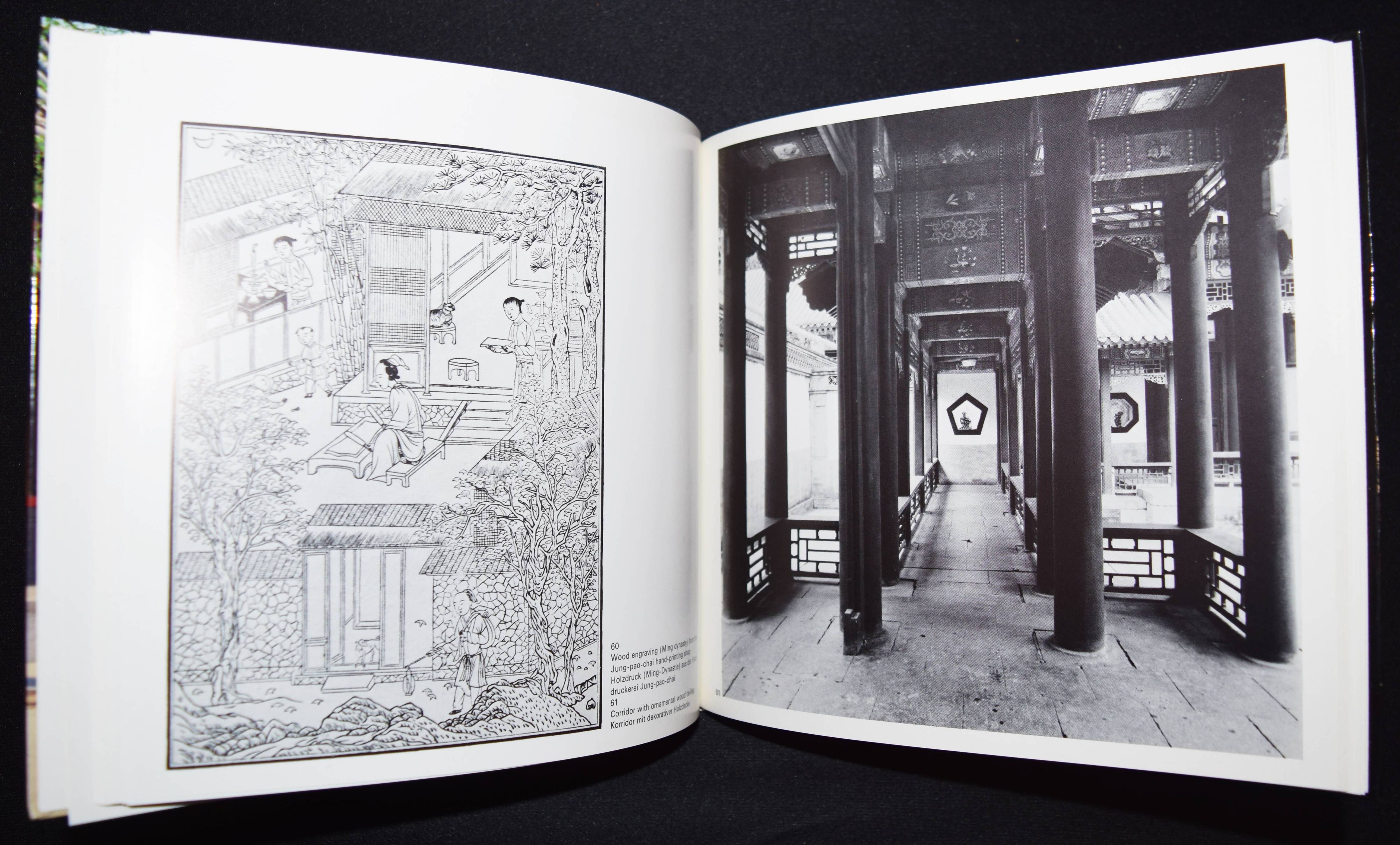 Blaser, Werner. Courtyard house in China. Hofhaus in China. Tradition and present. Tradition und Gegenwart. Basel, Boston, Stuttgart, Birkhäuser 1979. Quer-8°. 111 S. mit zahlr. teils farb. Abb., Grundrissen u. 1 Karte. Farbig illustr. OPbd. Text in englisch und deutsch. – Sehr gutes Exemplar.