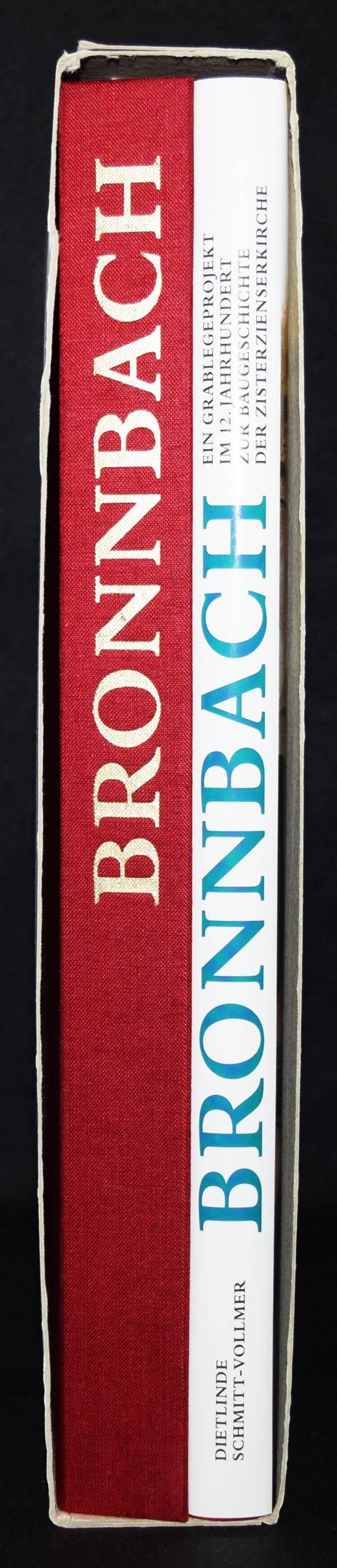 Schmitt-Vollmer, Dietlinde. Bronnbach. Ein Grablegeprojekt im 12. Jahrhundert. Zur Baugeschichte der Zisterzienserkirche. 2 Bde. Stuttgart, Theiss 2007. 4°. 238 S. mit zahlr. teils farb. Abb.; 56 S. mit 51 teils farb. Tafeln u. 7 gefalt. Beilagen. OLn. mit farbig Illustr. OU., OBr. u. 7 Beilagen in Orig.-Leinenkasette in Orig.-Pappschuber. (Forschungen und Berichte der Bau- und Kunstdenkmalpflege in Baden-Württemberg, Band 12). Sehr gutes Exemplar.