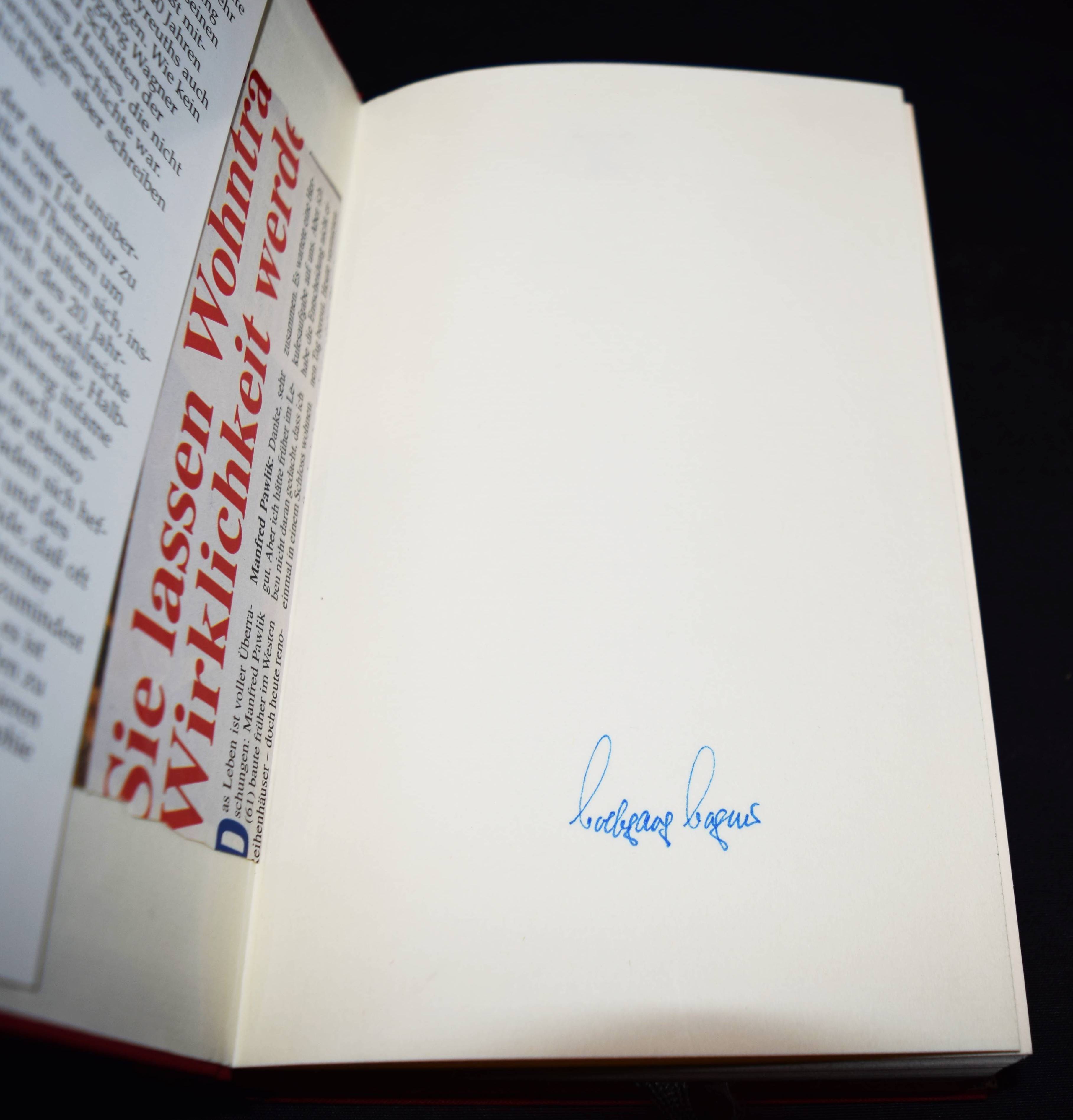 Wagner, Wolfgang. Lebens-Akte. Autobiographie. 1. Aufl. München, Knaus 1994. Gr.-8°. 508 S. mit Abb. OLn. mit farbig illustr. OU. Mit Signatur von Wolfgang Wagner auf dem Vorsatz. – Schutzumschlag mit Gebrauchsspuren ( Randläsuren), sonst sehr gutes Exemplar.
