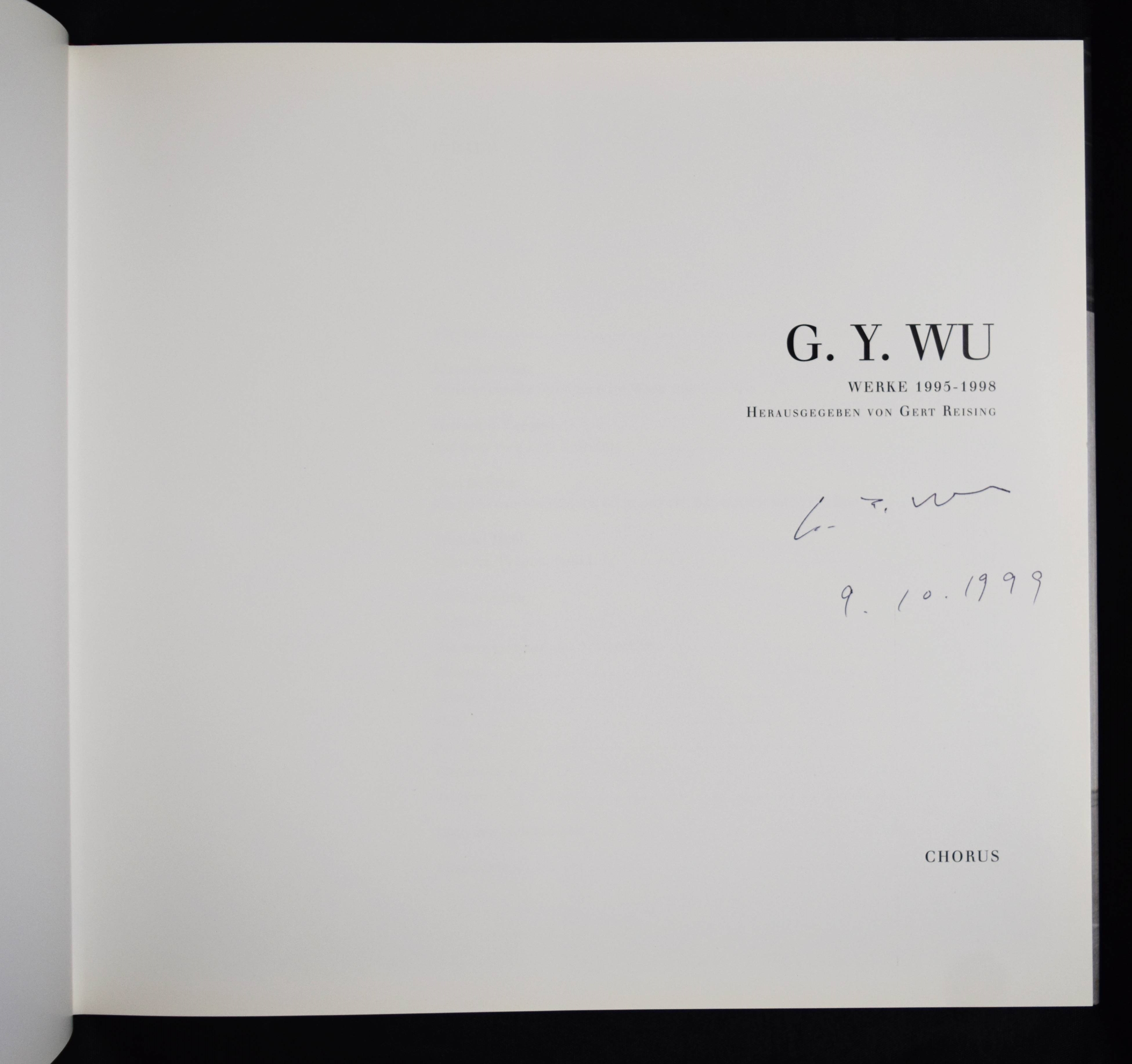 Wu – Reising, Gert (Hrsg.). G. Y. Wu. Werke 1995 – 1998. München, Chorus 1998. 4°. 81 S. mit zahlr. teils farb. Abb. OPbd. mit illustr. OU. Mit eigenhändiger Signatur von G. Y. Wu auf Titelblatt. – Schutzumschlag mit leichten Gebrauchsspuren, sonst sehr gutes Exemplar.