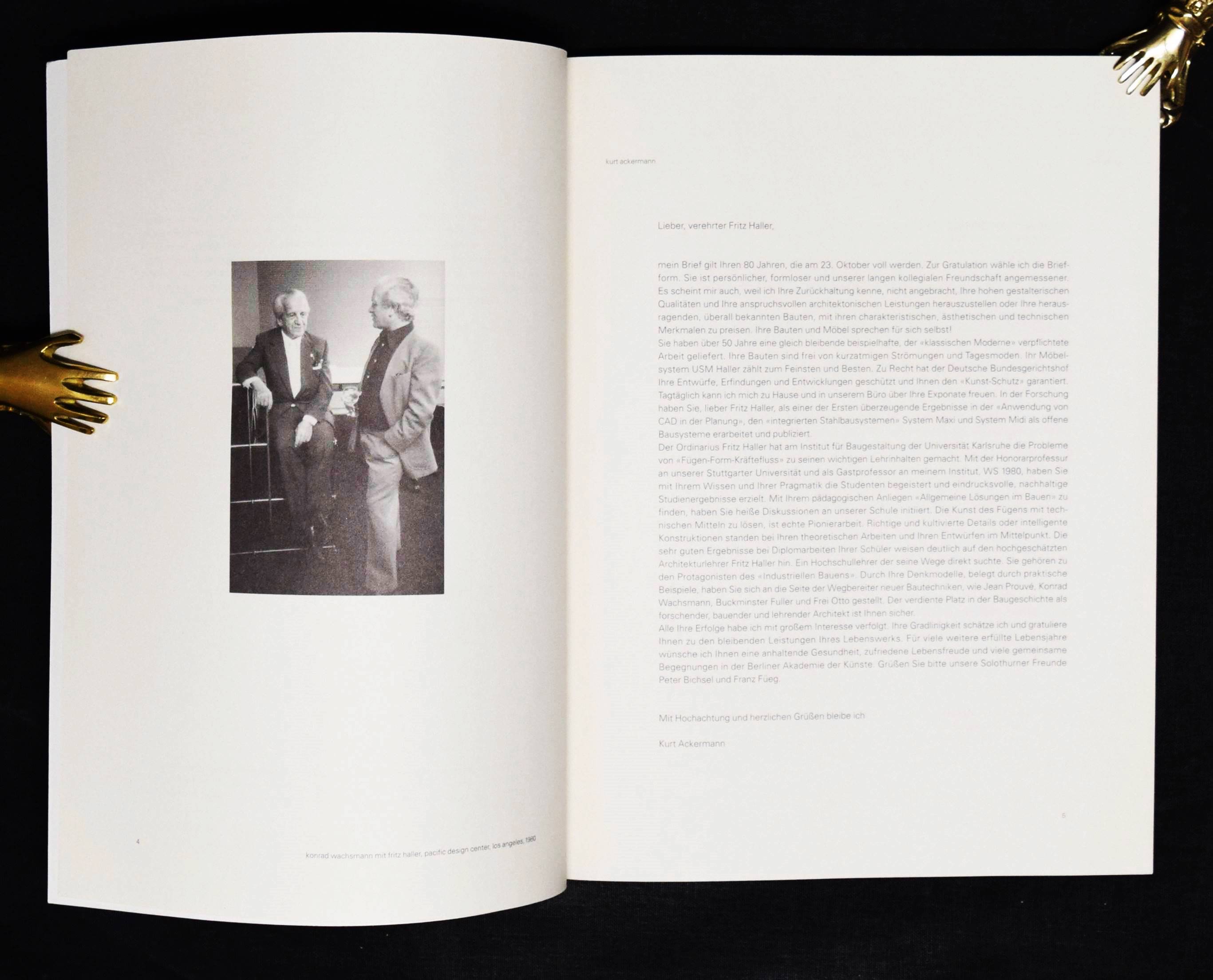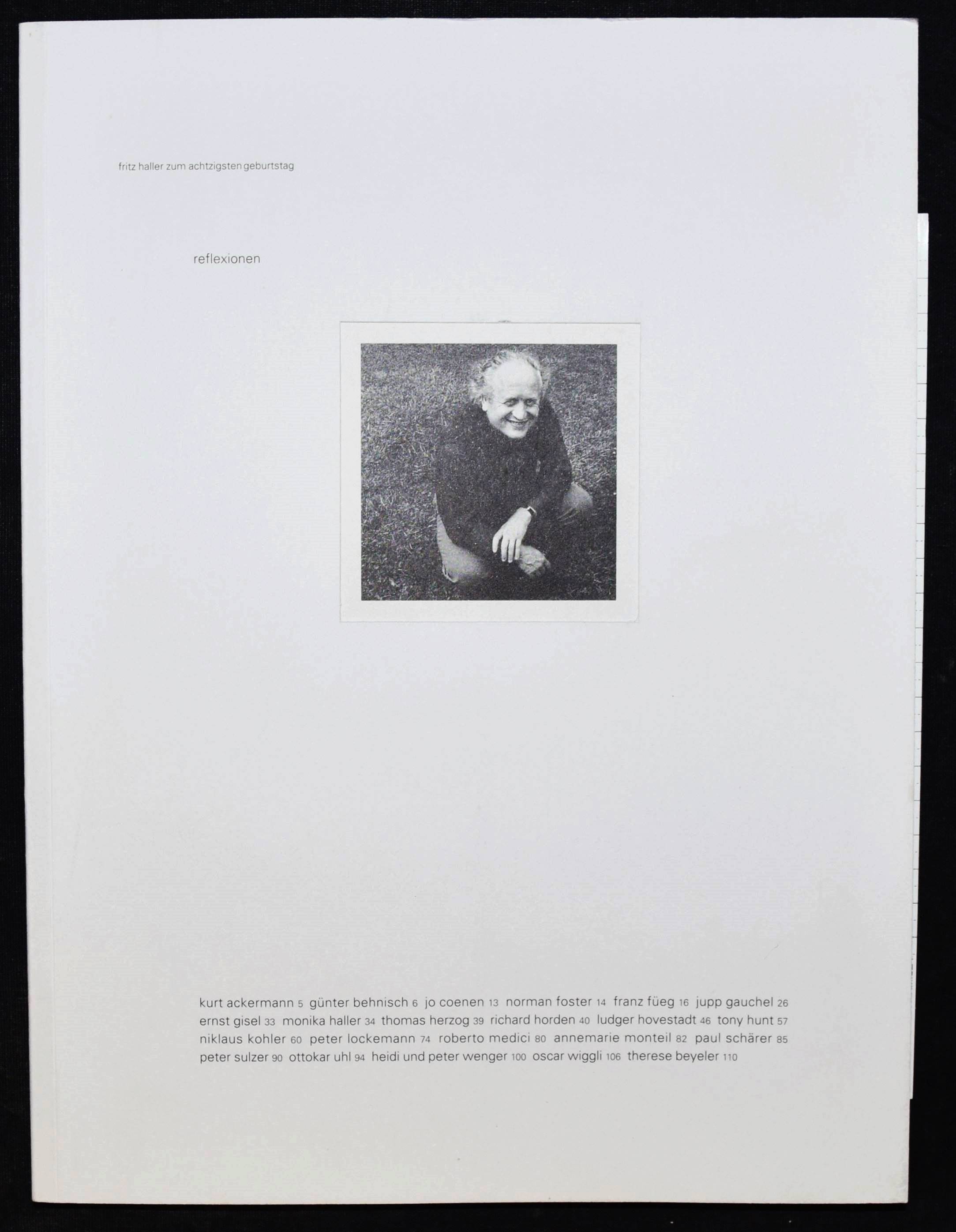 Haller – Reflexionen. Fritz Haller zum achtzigsten Geburtstag. Karlsruhe, KIT 2004. 4°. 117 S. mit zahlr. Abb. OKart. Sehr gutes Exemplar.