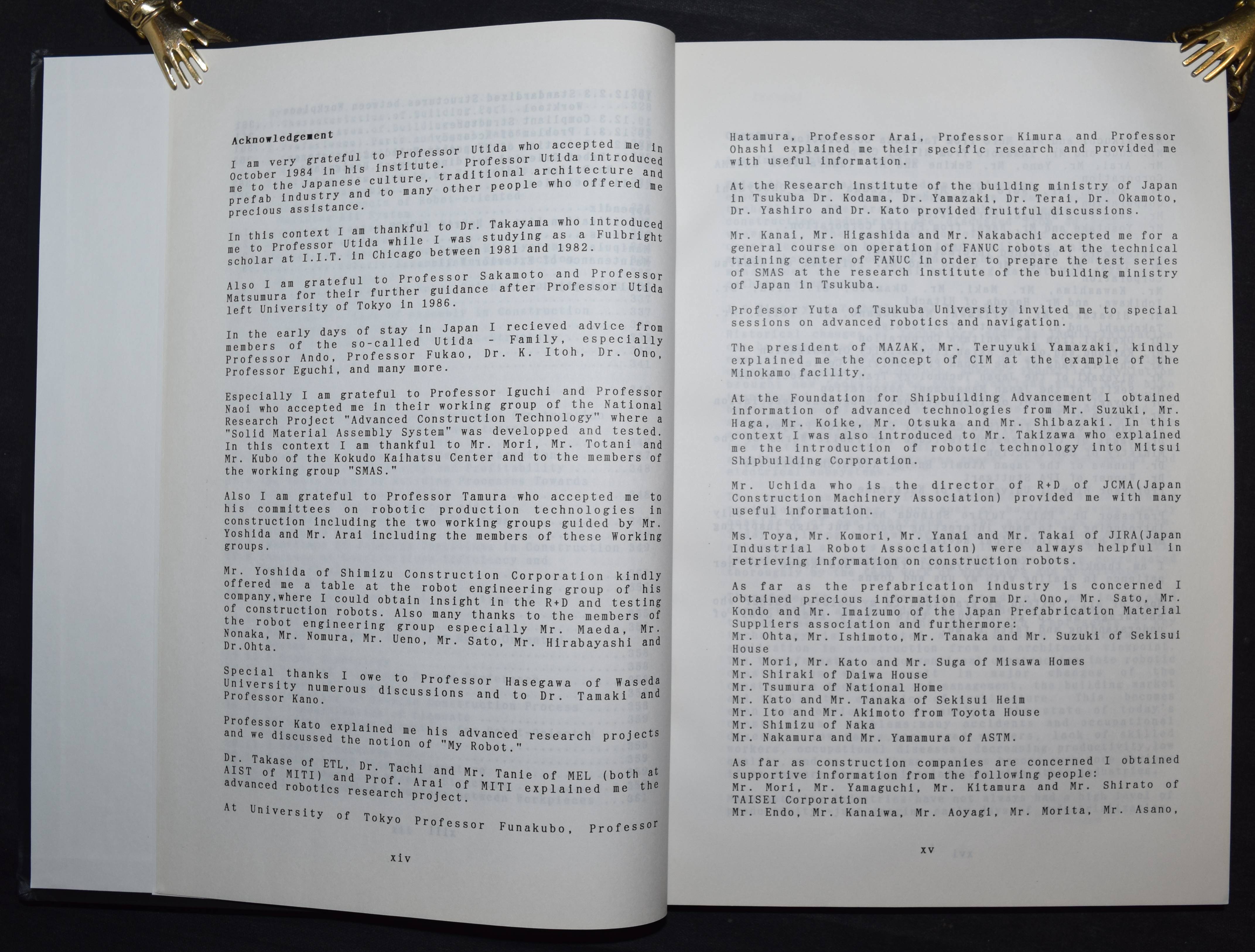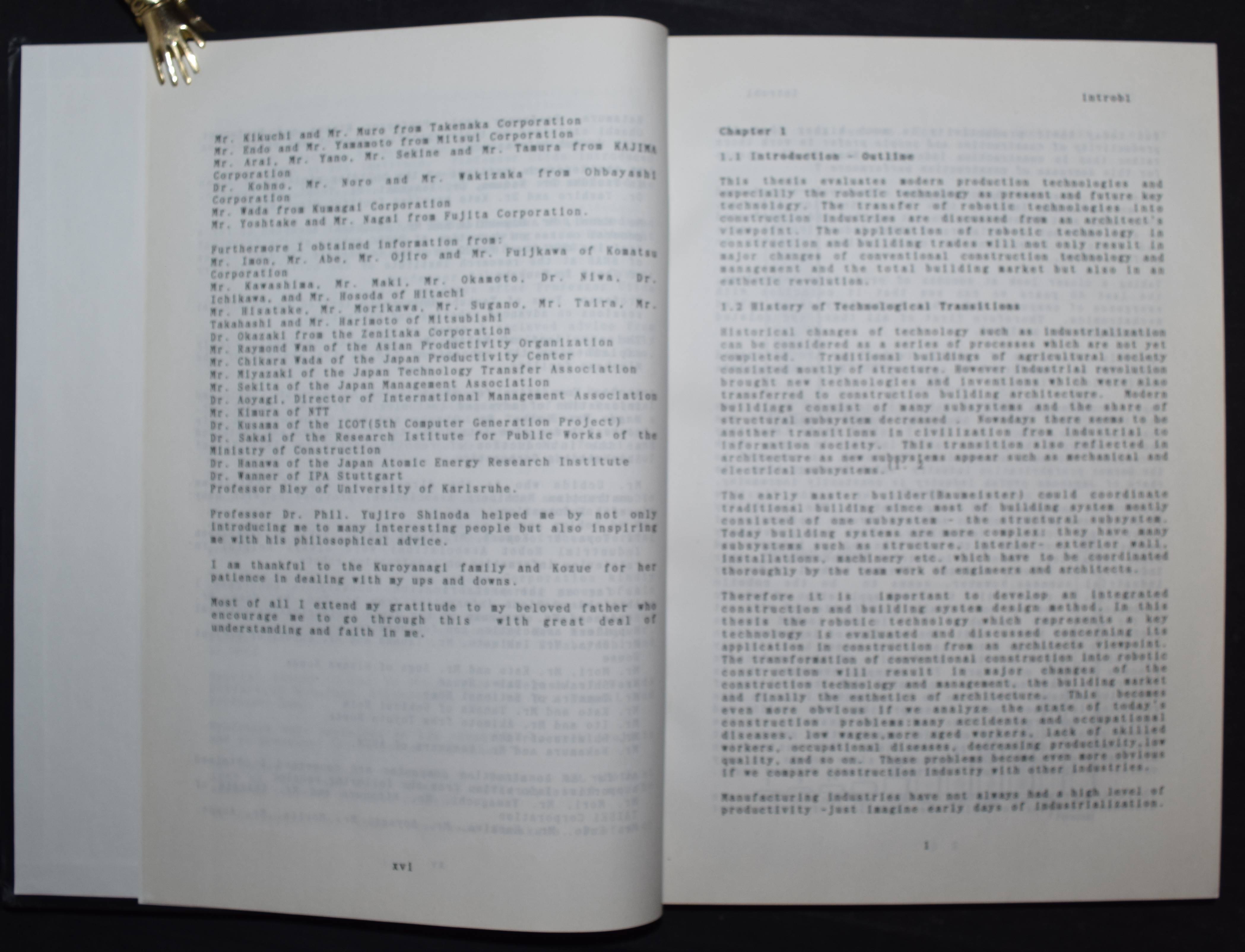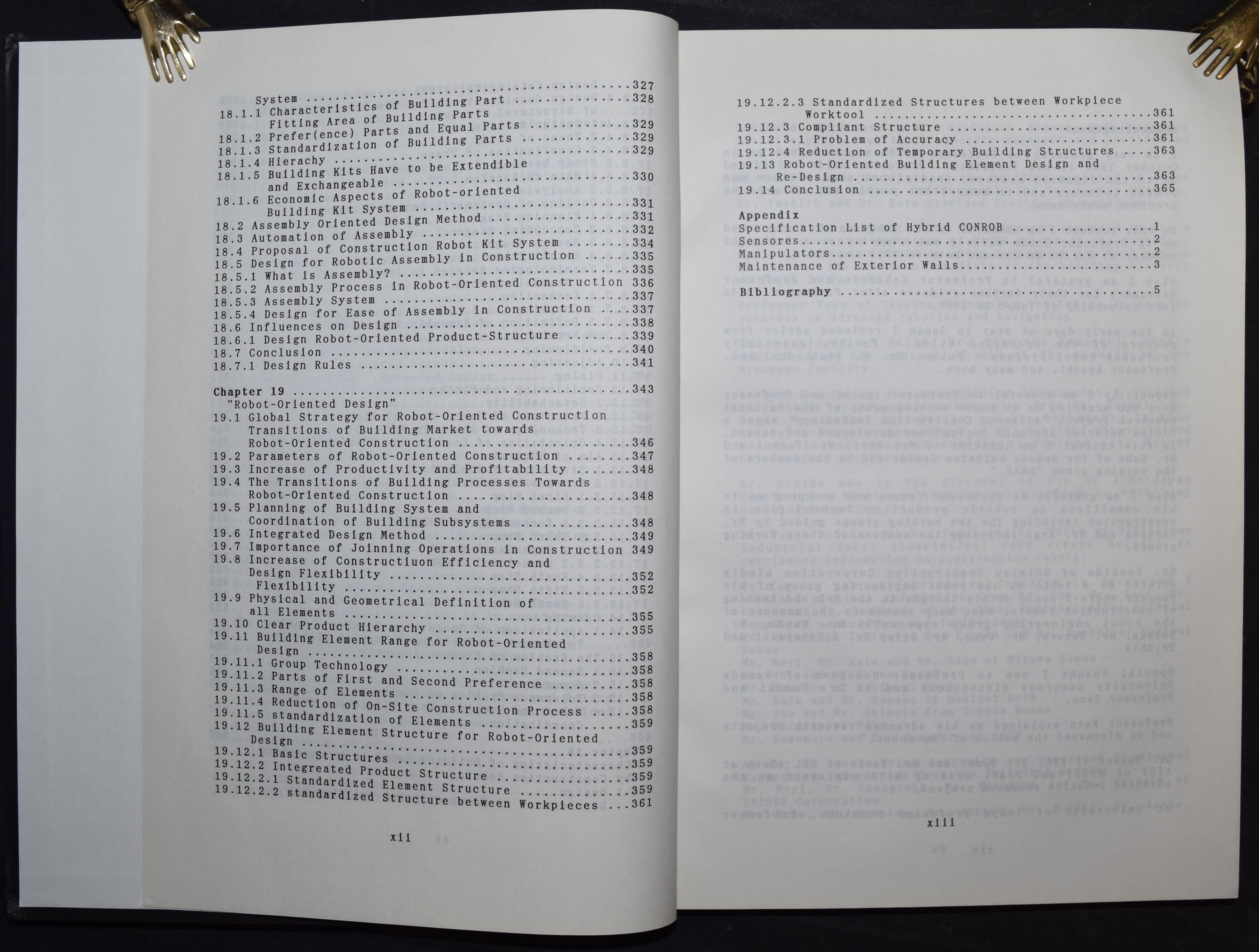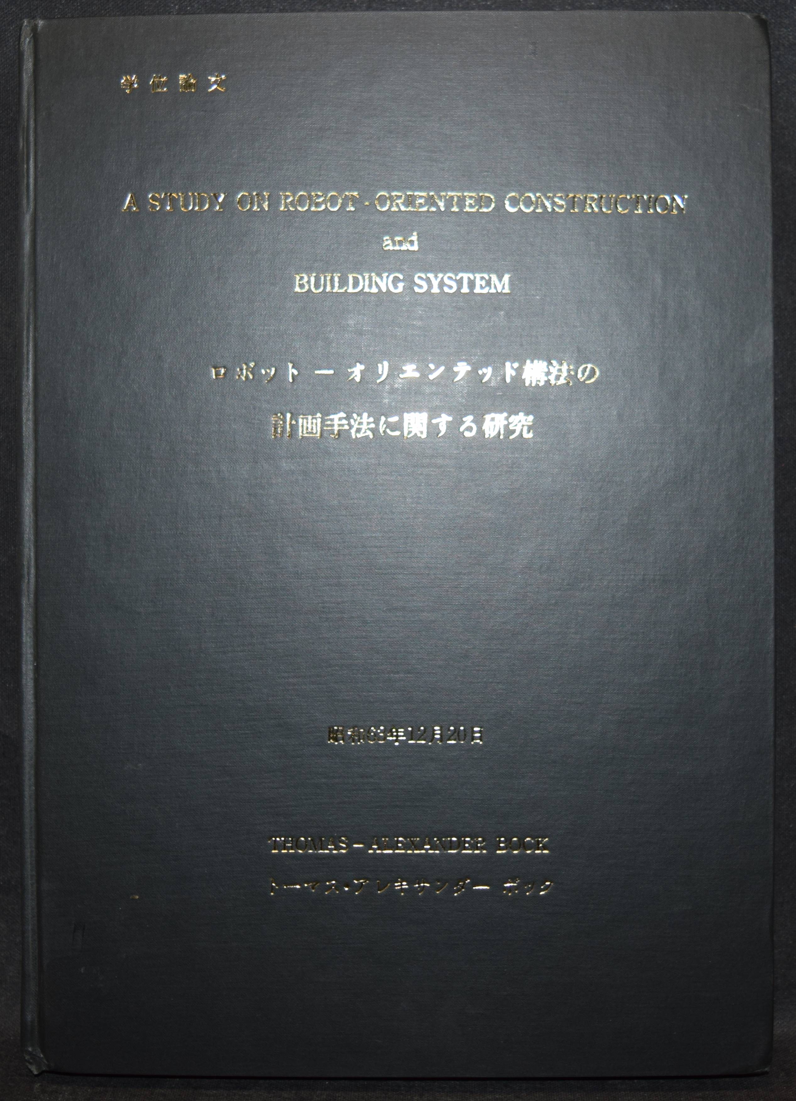 Bock, Thomas Alexander. (Thesis). A study on robot-oriented construcion and building system. O.O., Dr. u. J., (Tokyo ca. 1980). 4°. XVI, 369, 29 S. with several figures. OPbd. Sehr gutes Exemplar.