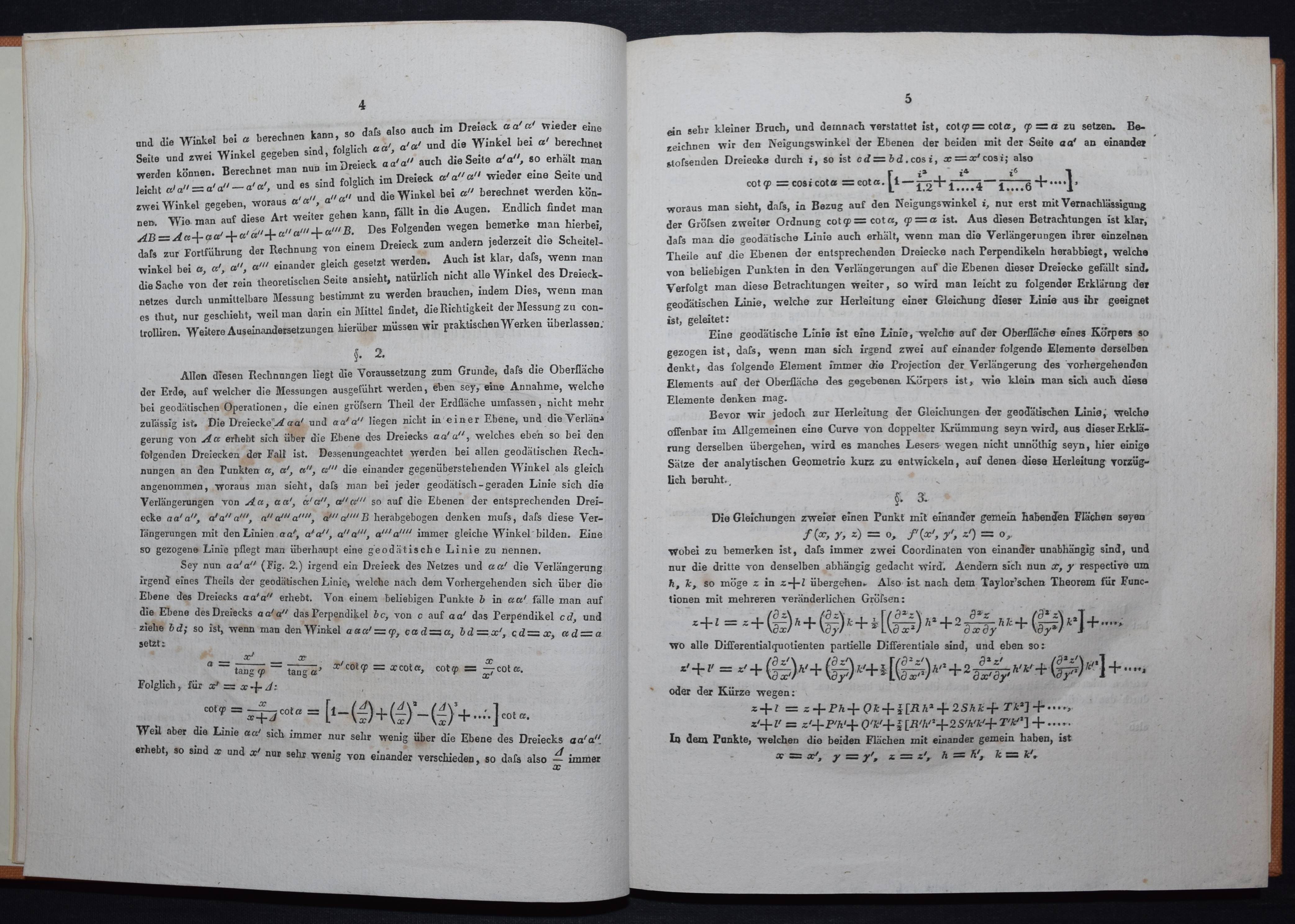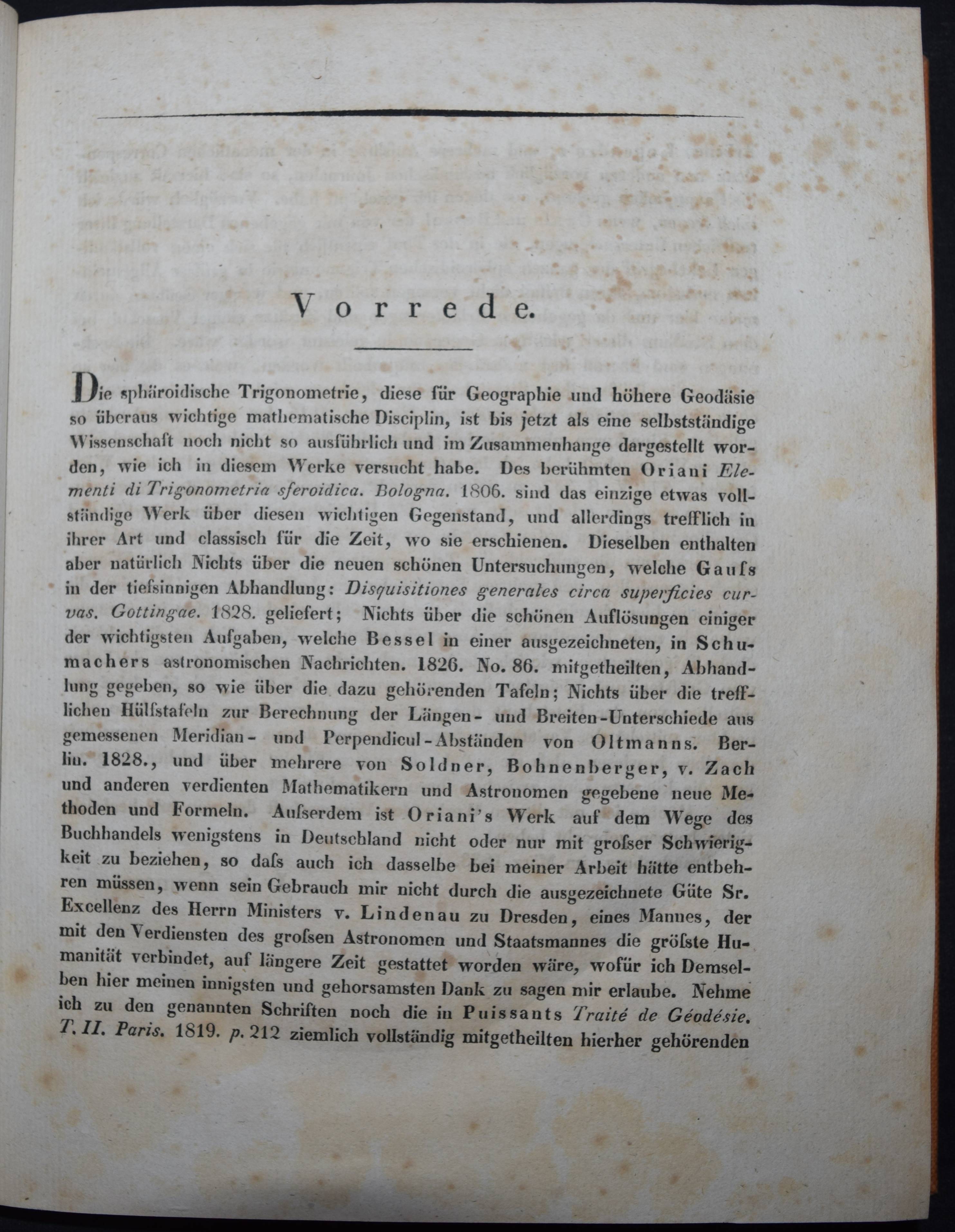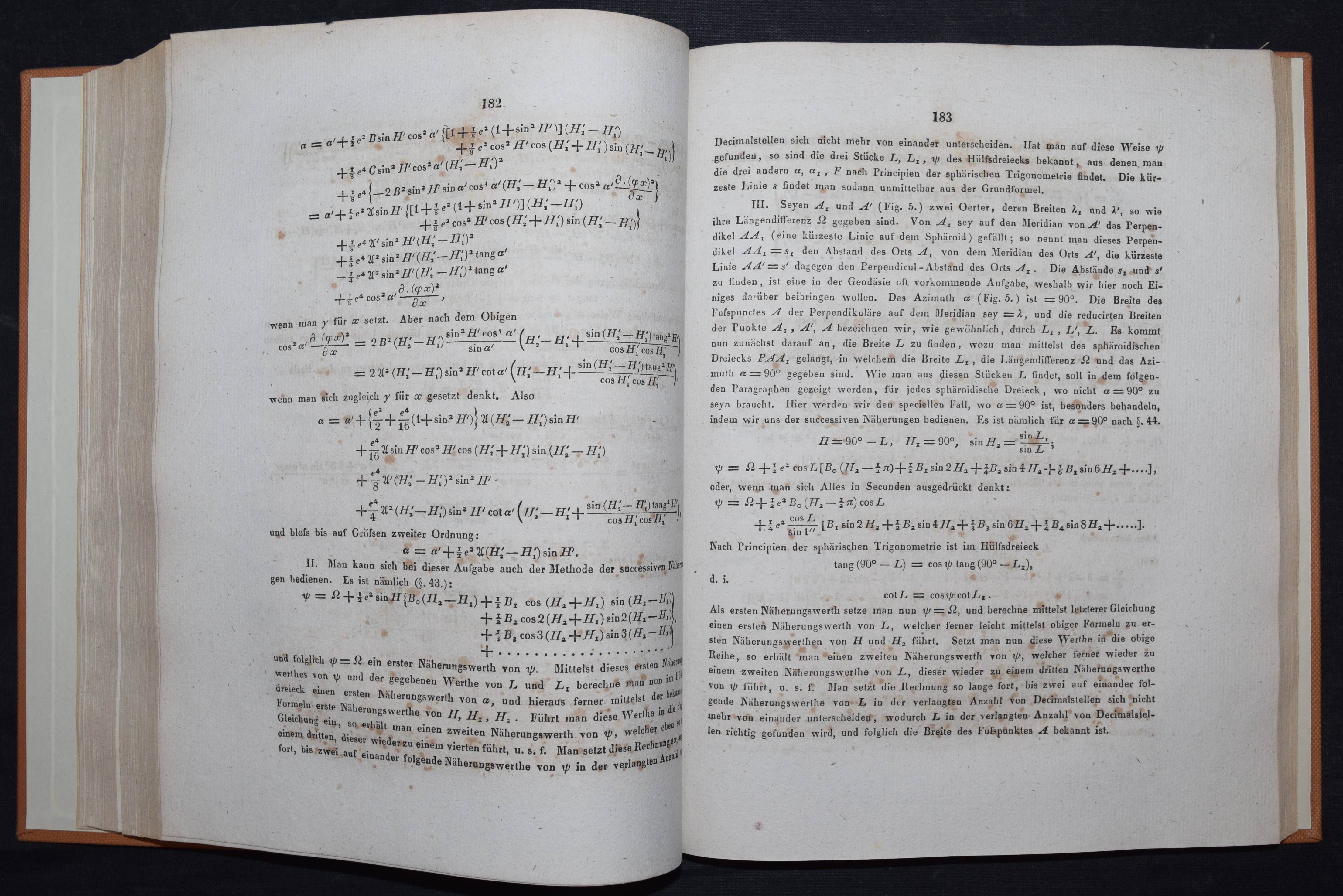 Grunert, Johann August. Sphäroidische Trigonometrie. Berlin, Reimer 1833. 4°. IV, 311 S. ohne die Kupfertafel. Moderner Ln. mit goldgepr. Rückenschild. Poggendorff I, 966. Vgl. NDB VII, 231. – Erste Ausgabe. – J. A. Grunert (1797-1872) war Schüler von J. F. Pfaff und C. F. Gauss und gründete 1841 das „Archiv der Mathematik und Physik“. – Einband etwas berieben. Innen stockfleckig, St. a. V., sonst gutes Exemplar.
