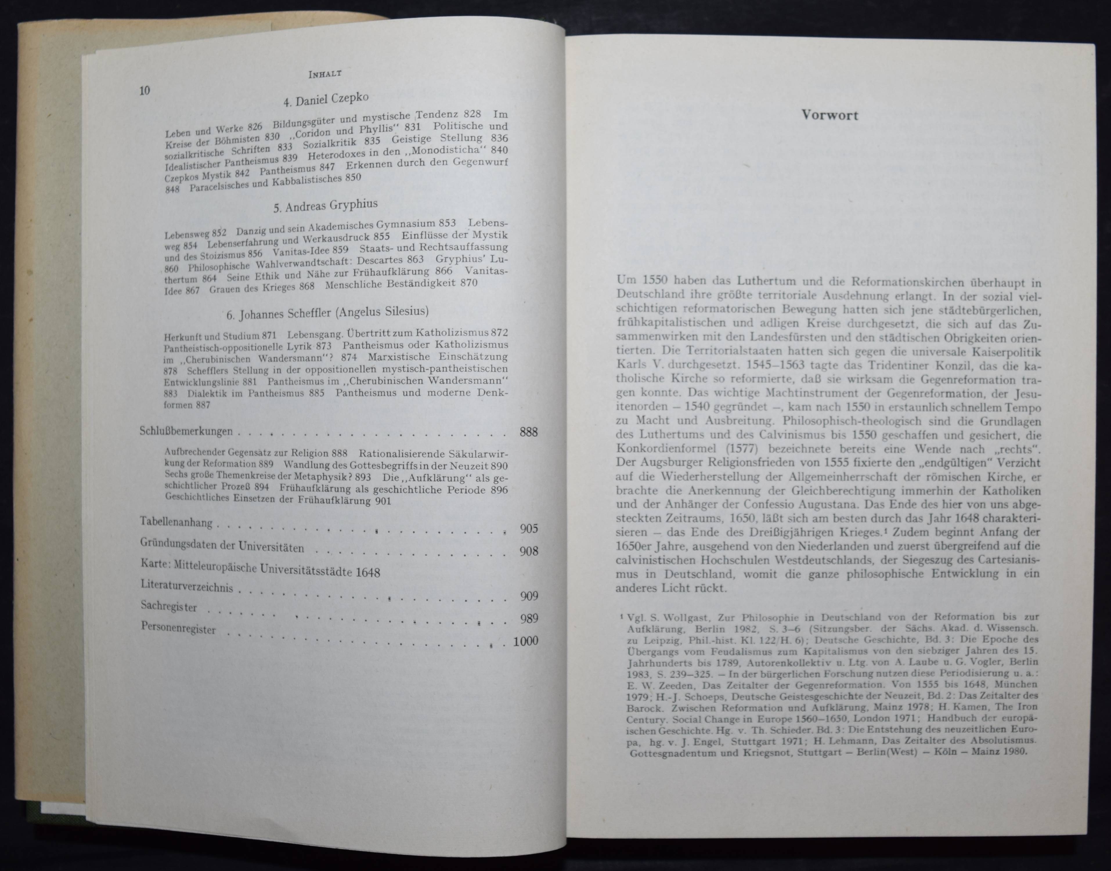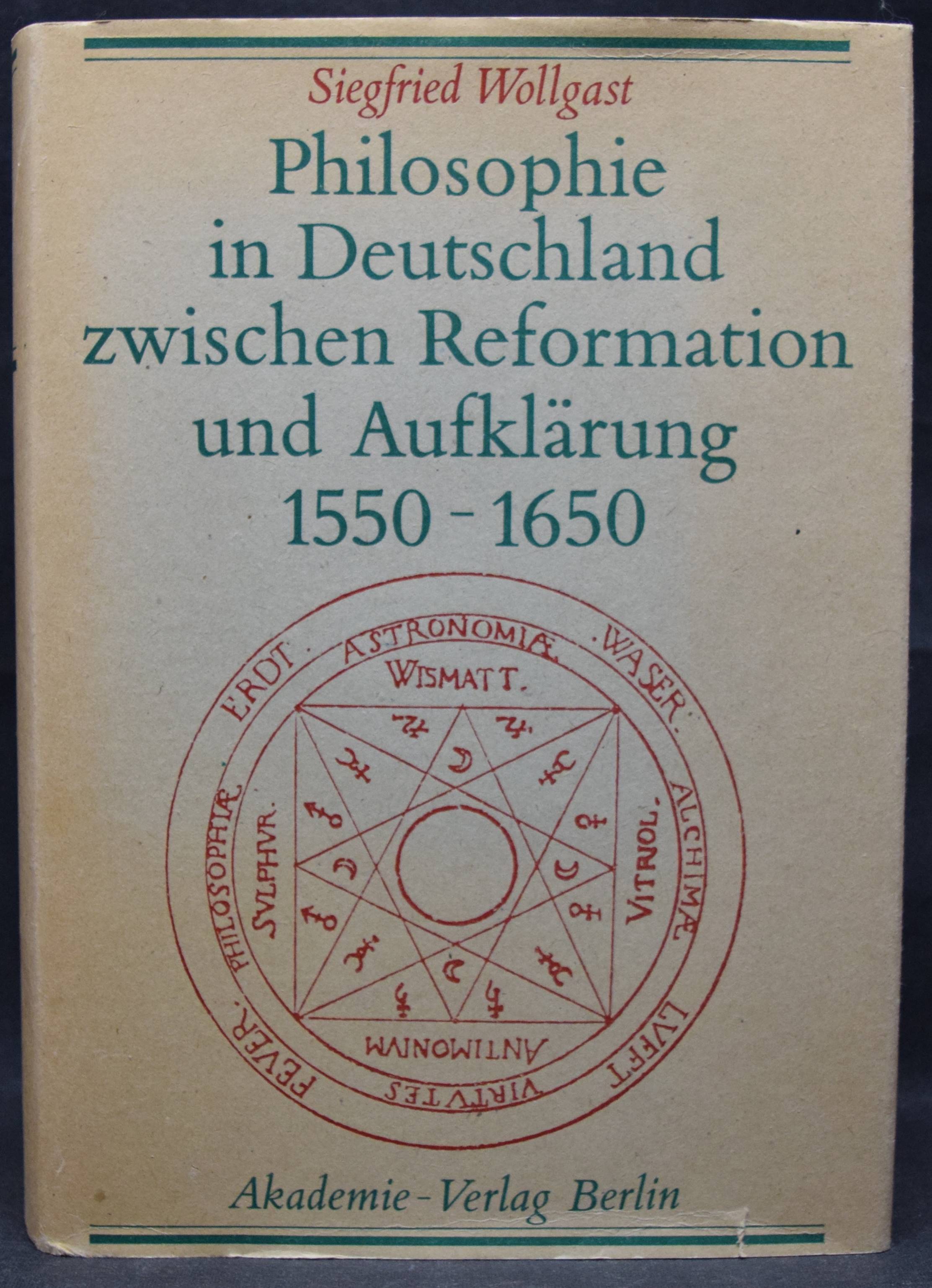 Wollgast, Siegfried. Philosophie in Deutschland zwischen Reformation und Aufklärung. 1550 – 1650. Berlin, Akademie-Verl., 1988. Gr.-8°. 1037 S. u. 1 Karte. OLn. mit OU. Sehr gutes Exemplar.
