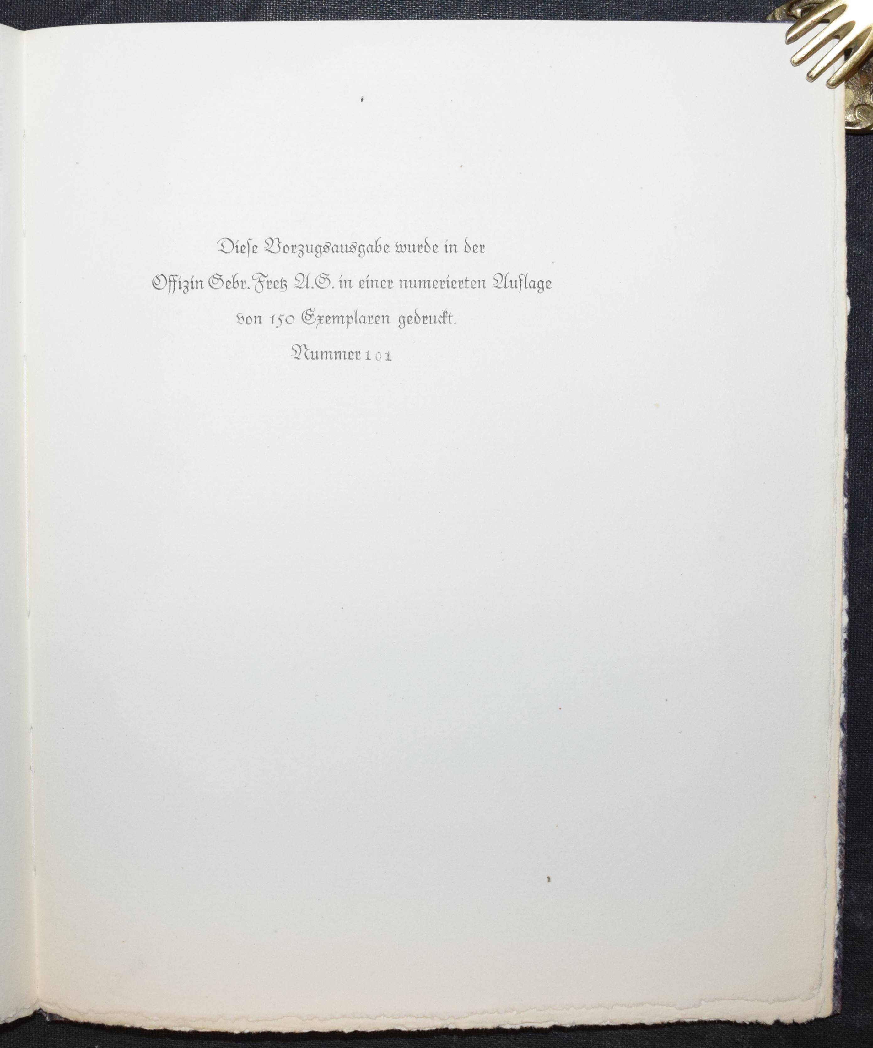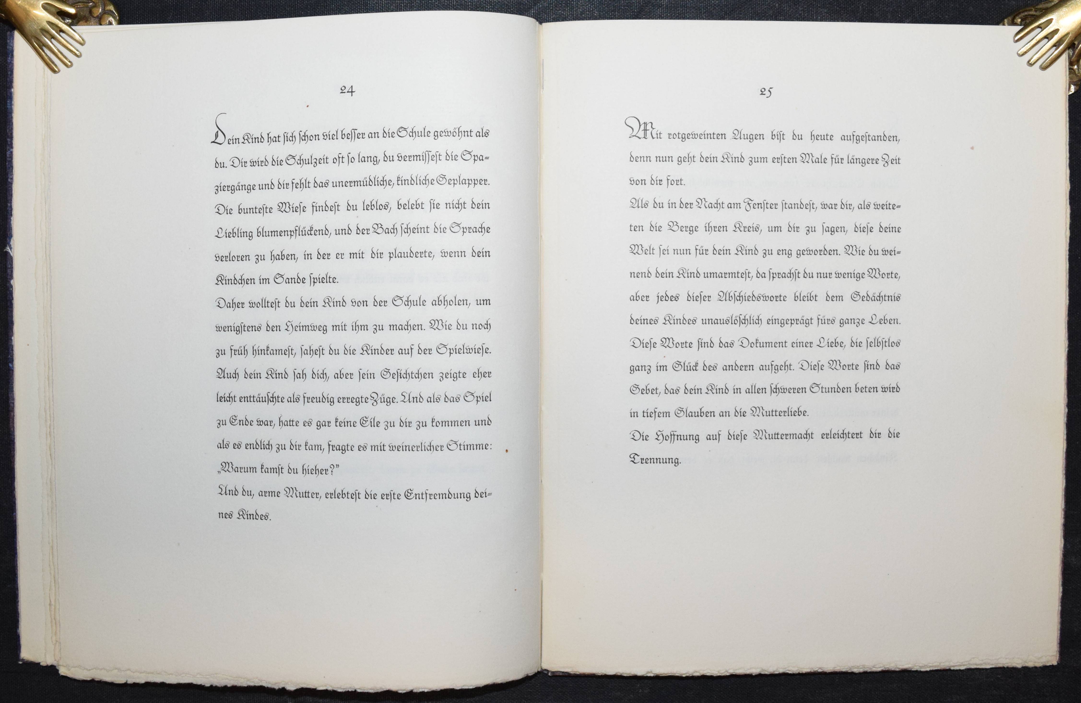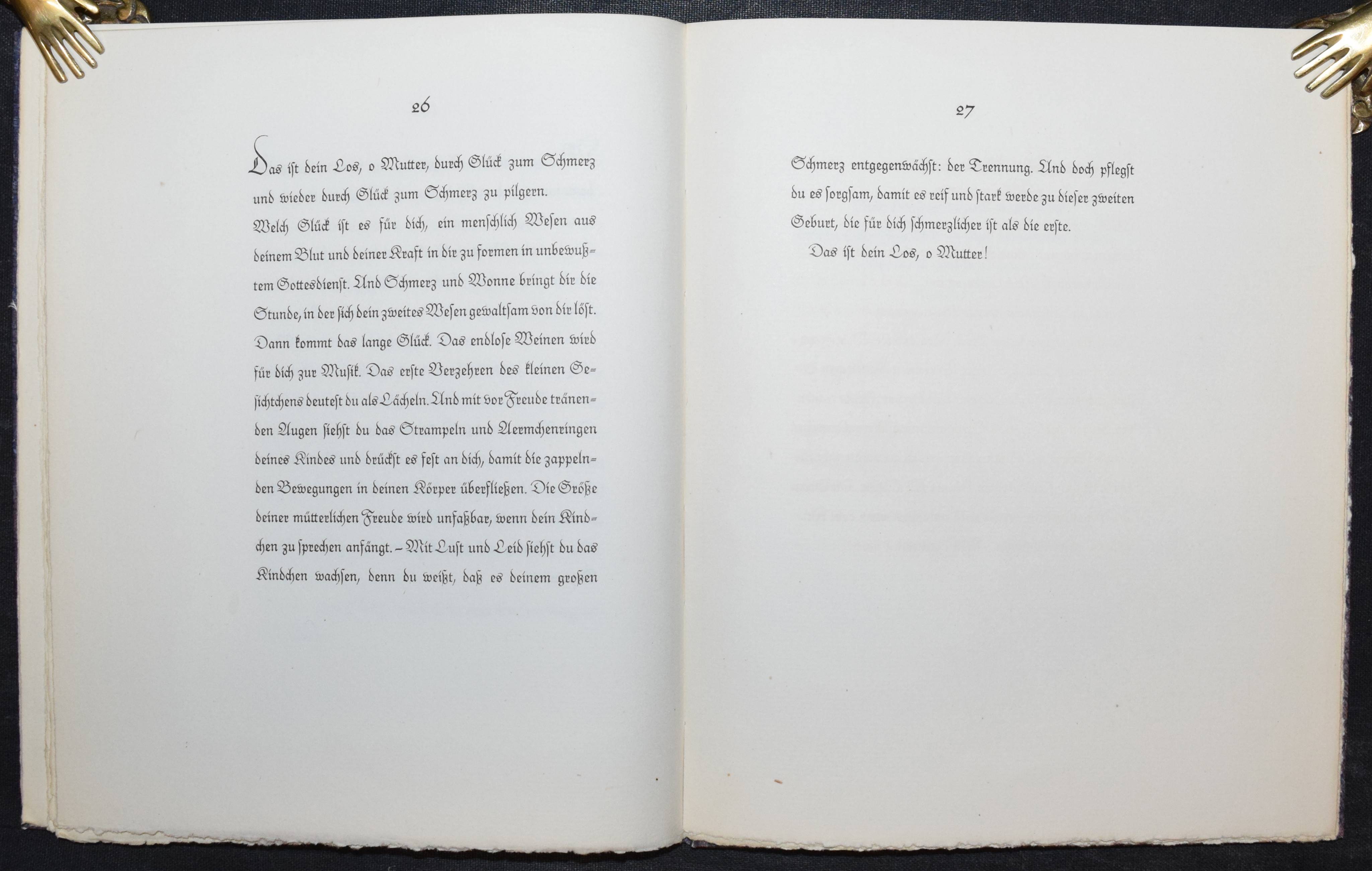 | Heß, Emil. Mutter und Kind. Eine Skizzenfolge. Zürich, Gebr. Fretz 1922. Gr.-8°. 27, (2) S. OPbd. mit Deckelschild in Orig.-Pappschuber mit Deckelschild. Eines von 150 num. Exemplaren der Vorzugsausgabe auf Van-Gelder Bütten-Papier. – Schönes Exemplar.