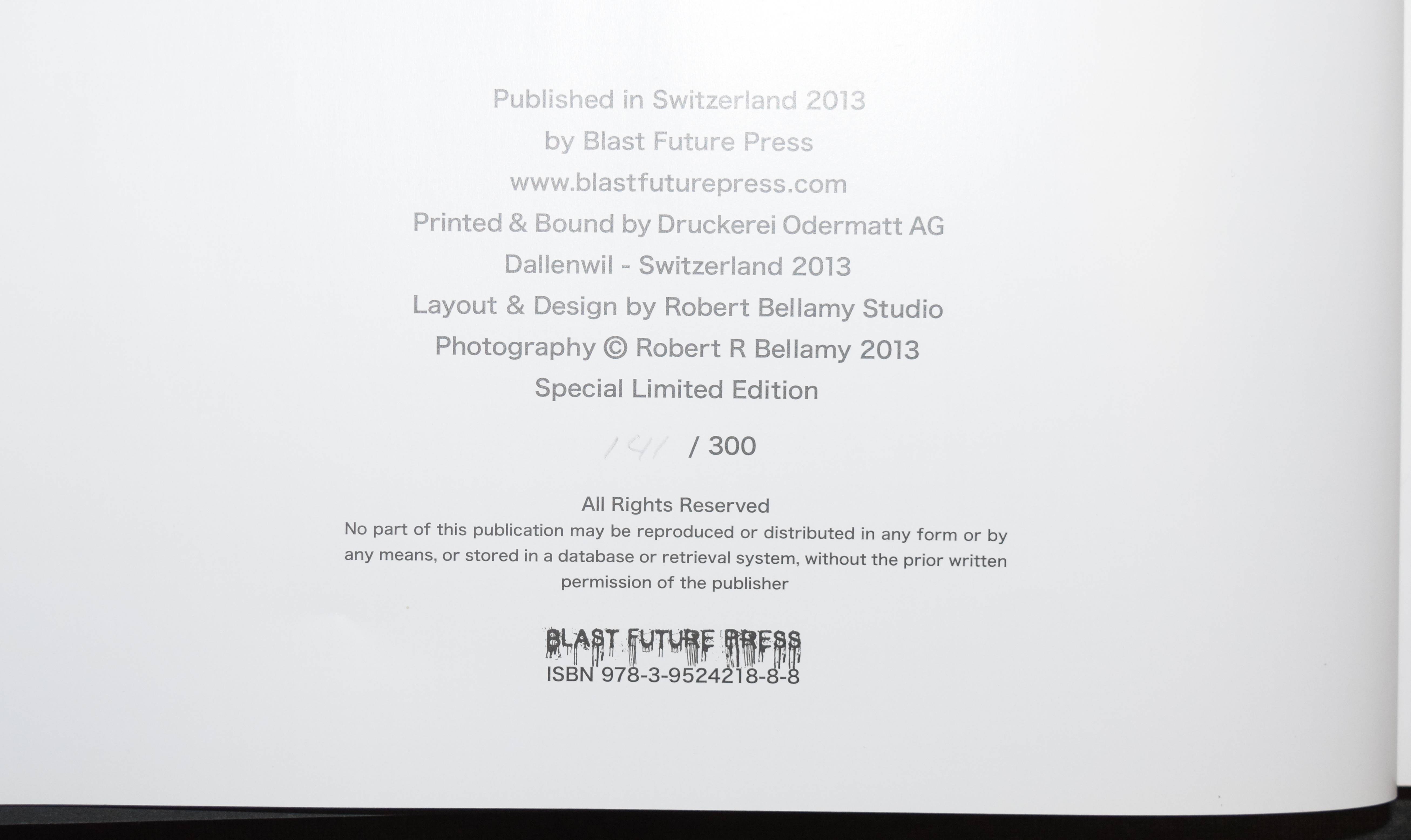 Bellamy, Robert. Blue heron. Dallenwil, Blast Future Press 2013. 4°. [38] Bl. mit zahlr. Abb. OPbd. mit illustr. OU. Eines von 300 num. Exemplaren. – Auf dem Titel von R. Bellamy signiert. – Eindrucksvolle Schwarzweiss-Aufnahmen aus Japan (Tokio, Osaka, Kyoto und Hiroshima) des amerikanischen Multimedia-Künstlers, Designers und Photographen. – Neuwertiges Exemplar.