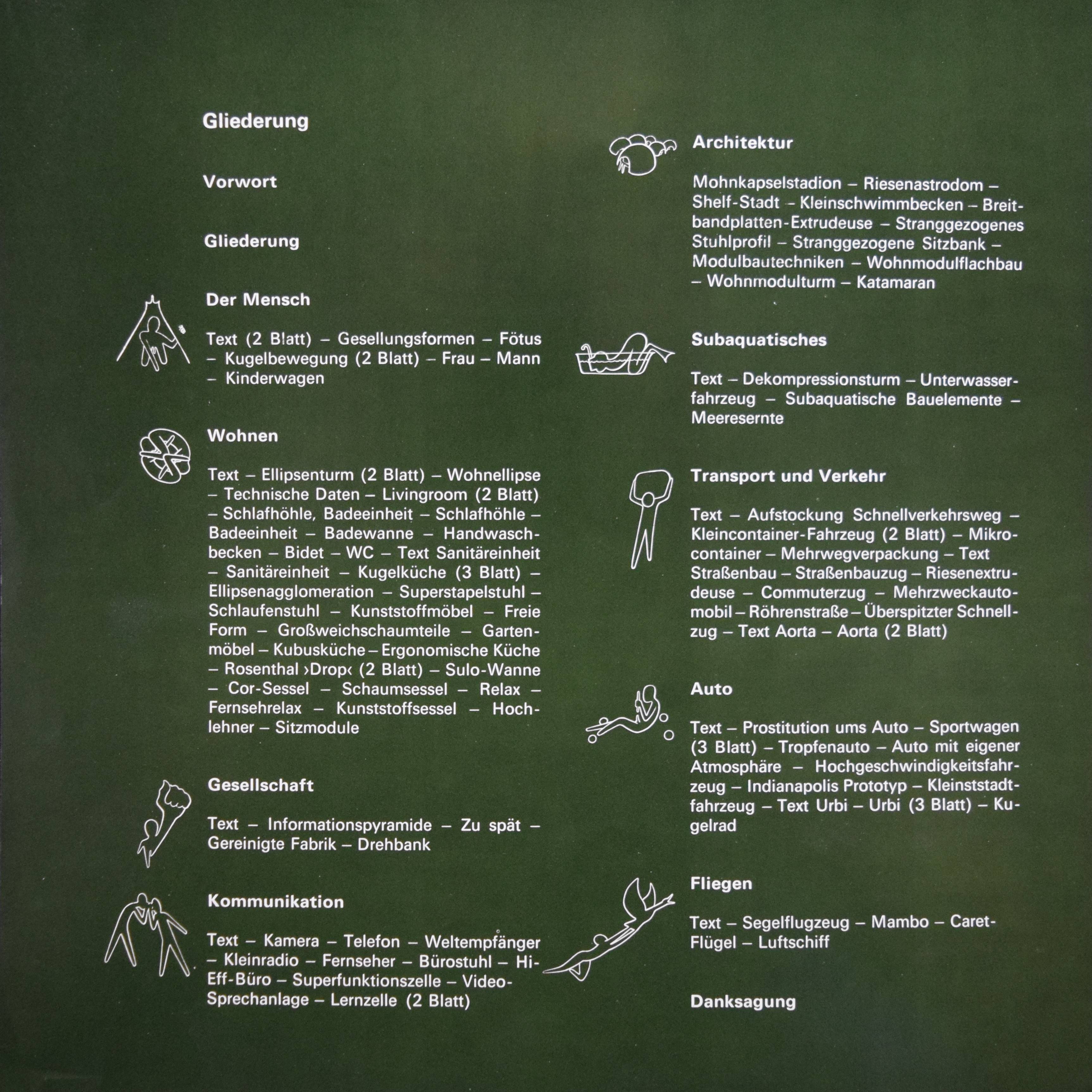 Colani, Luigi. YLEM. Gütersloh, Wien, Bertelsmann-Sachbuchverlag u. Edizione internazionale Colani 1971. 4°. [39] Bl., [160] S. mit zahlr. farb. Abb. u. Illustrationen lose in Rotem Orig-Kunststoff-Koffer mit Deckeltitel. Einzige Ausgabe. – Hauptwerk des berühmten Designers und Künstlers mit Schautafeln und Designarbeiten zu den Themen: Der Mensch; Wohnen; Gesellschaft; Kommunikation; Architektur; Subaquatisches; Transport und Verkehr; Auto; Fliegen. – „Ylem, nicht im ordentlichen wissenschaftlichen Sprachschatz gebraucht, da Zentralwort wagemutiger Spekulation über die Entstehung des Alls von größter geistiger Penetranz und Elastizität“. – Text Deutsch, Englisch und Französisch. – Der Plastik-Koffer mit Kratzspuren, eines der drei Deckelgelenke gebrochen, sonst sehr gut erhalten.