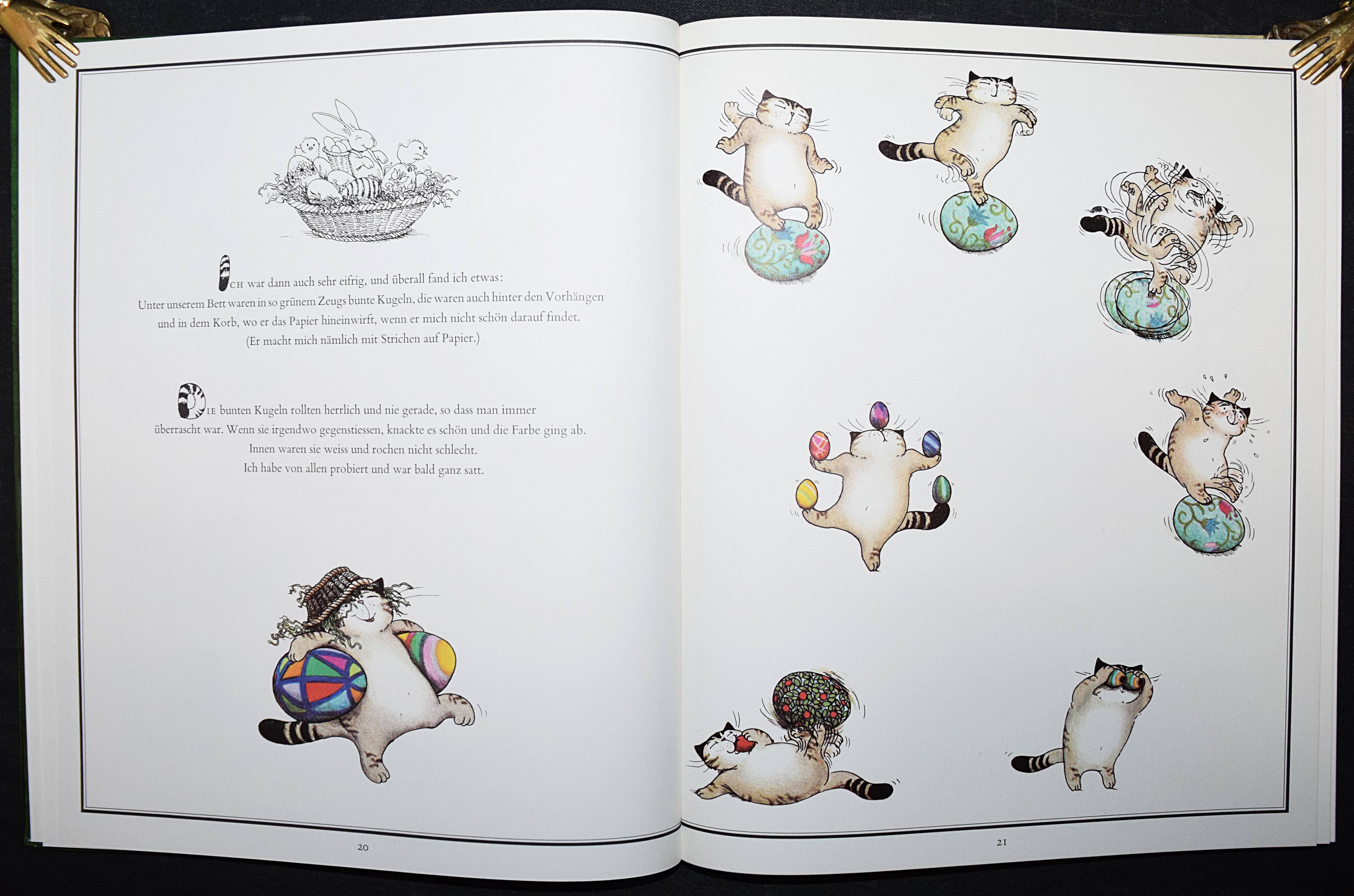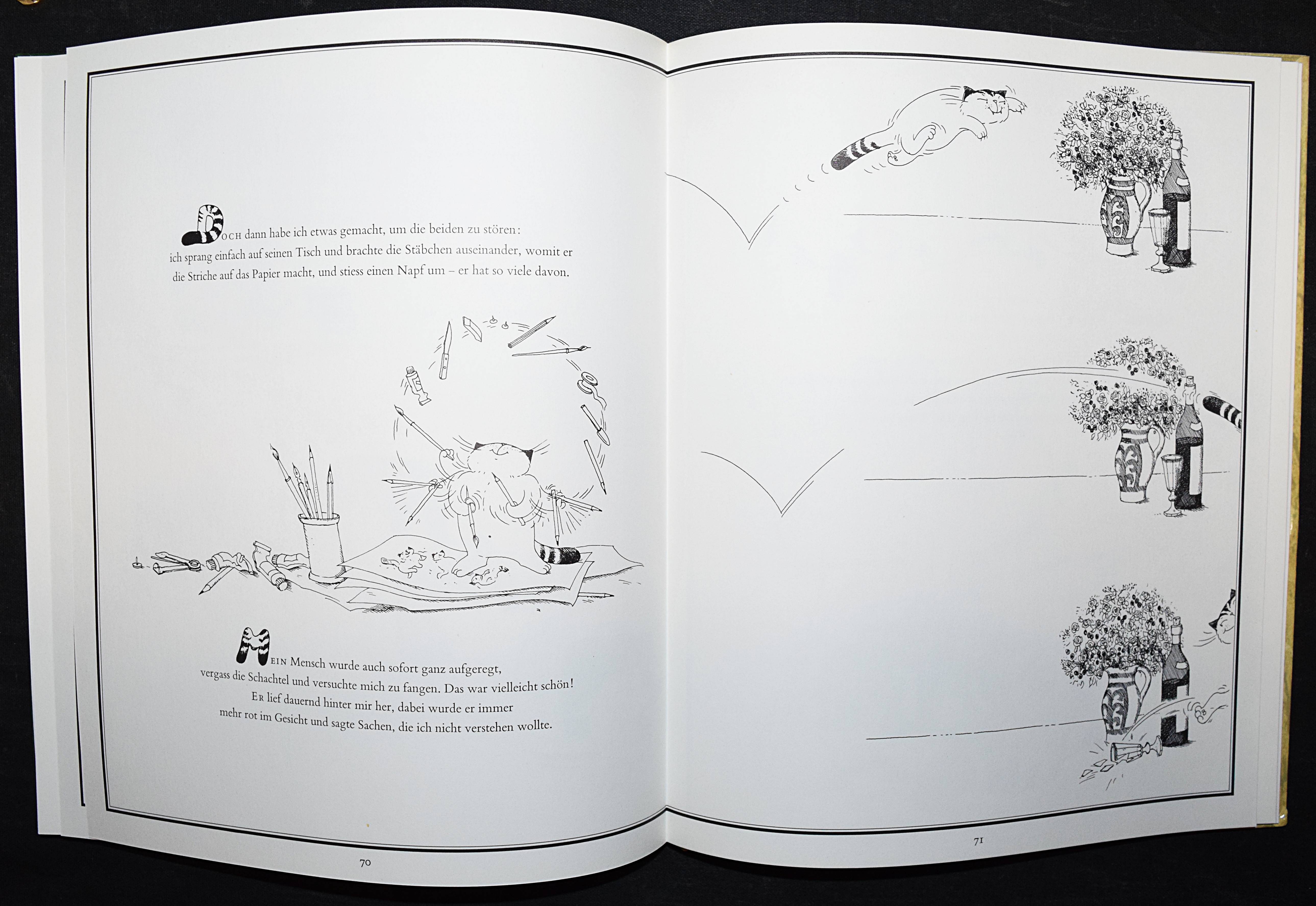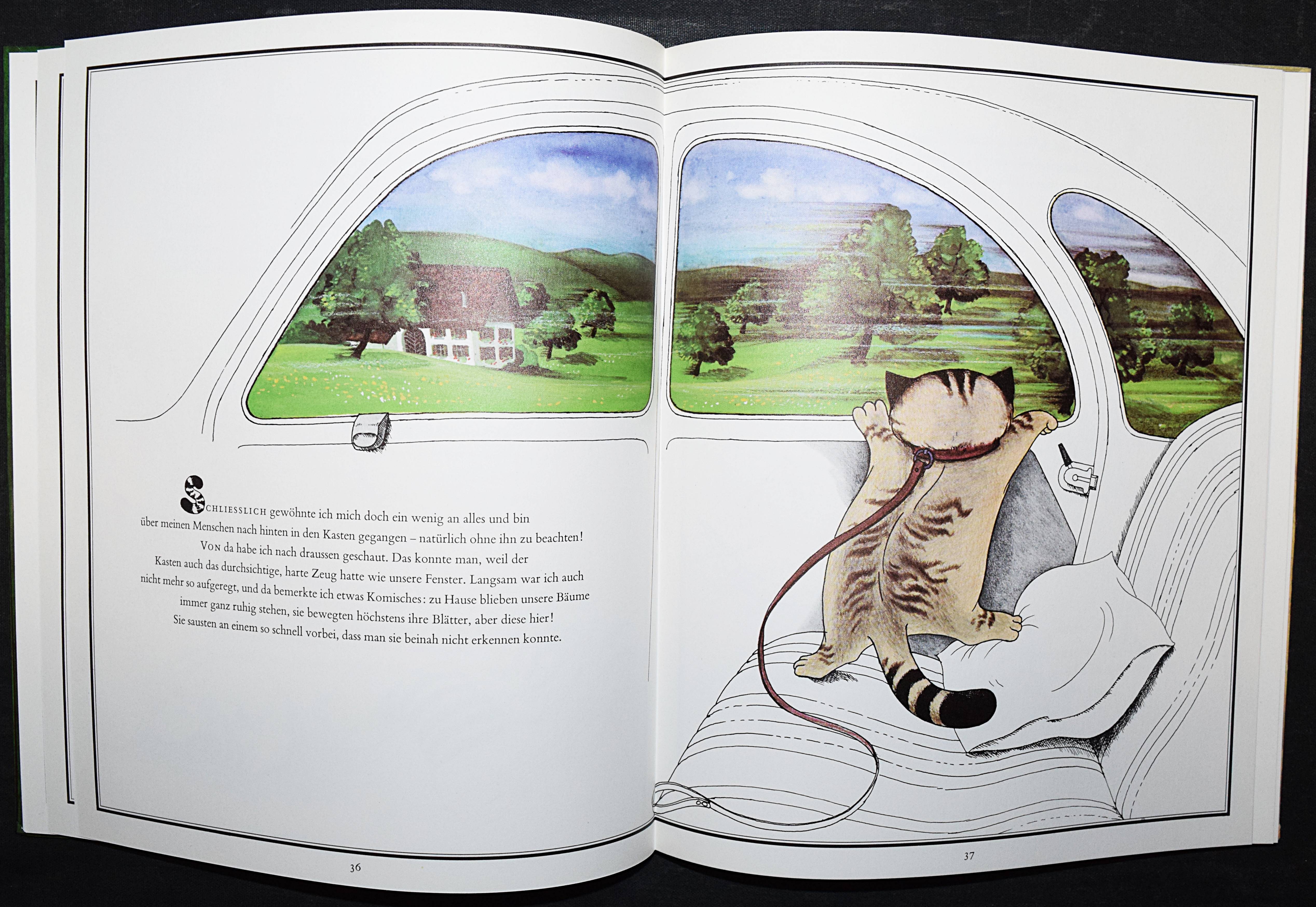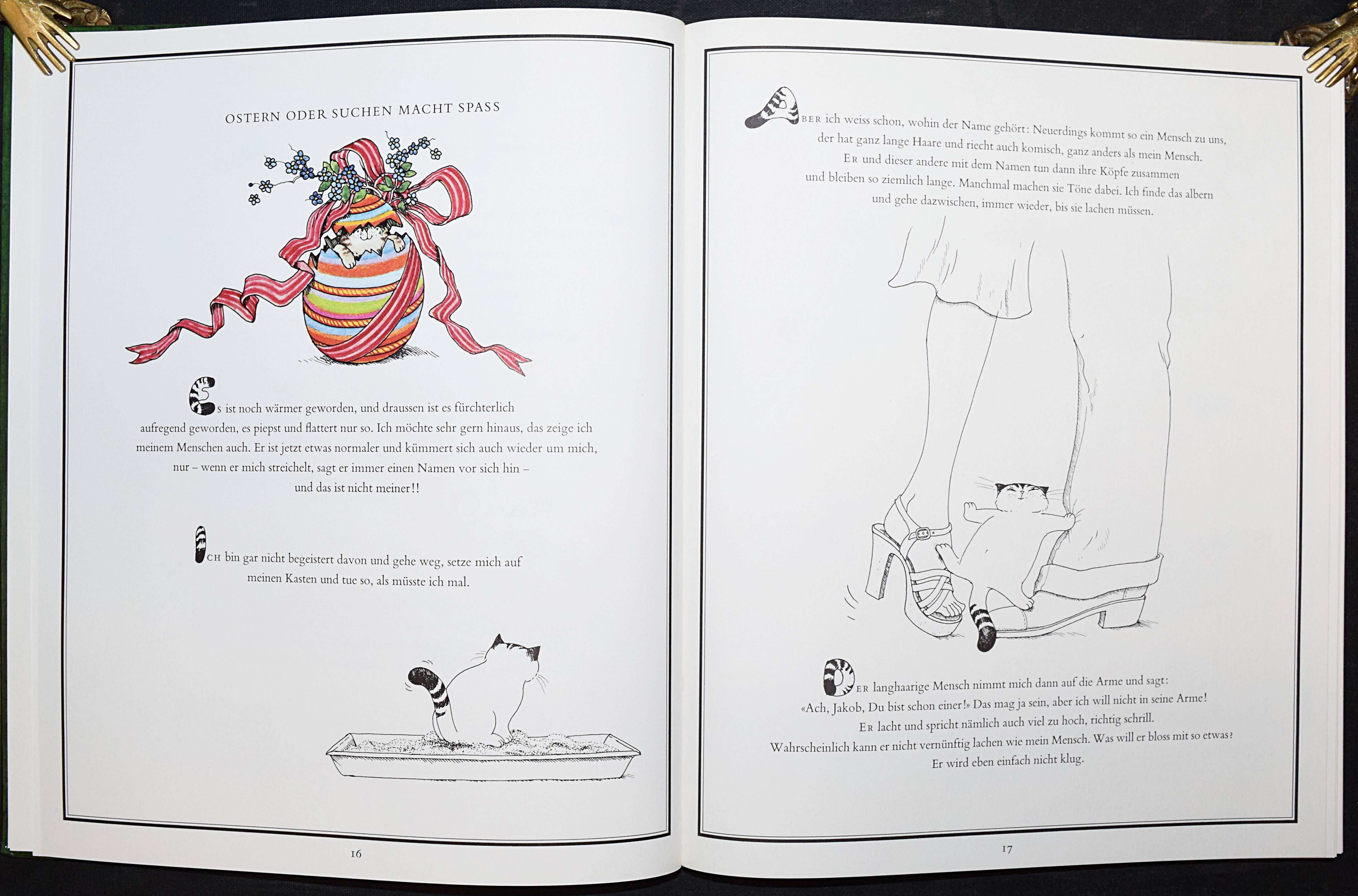 Hartmann, Sven u. Thomas Härtner. Jakob. Ich und mein Mensch. Kleine Katzengeschichten. Bern, Benteli 1977. 4°. 79, (1) S. mit teils farb. Illustrationen. Farbig illustr. OPbd. (Jakob, Band 2). Erste Ausgabe. – Mit eigenhändiger Widmung S. Hartmann auf dem vord. freien Vorsatzblatt. – Sehr gutes Exemplar.