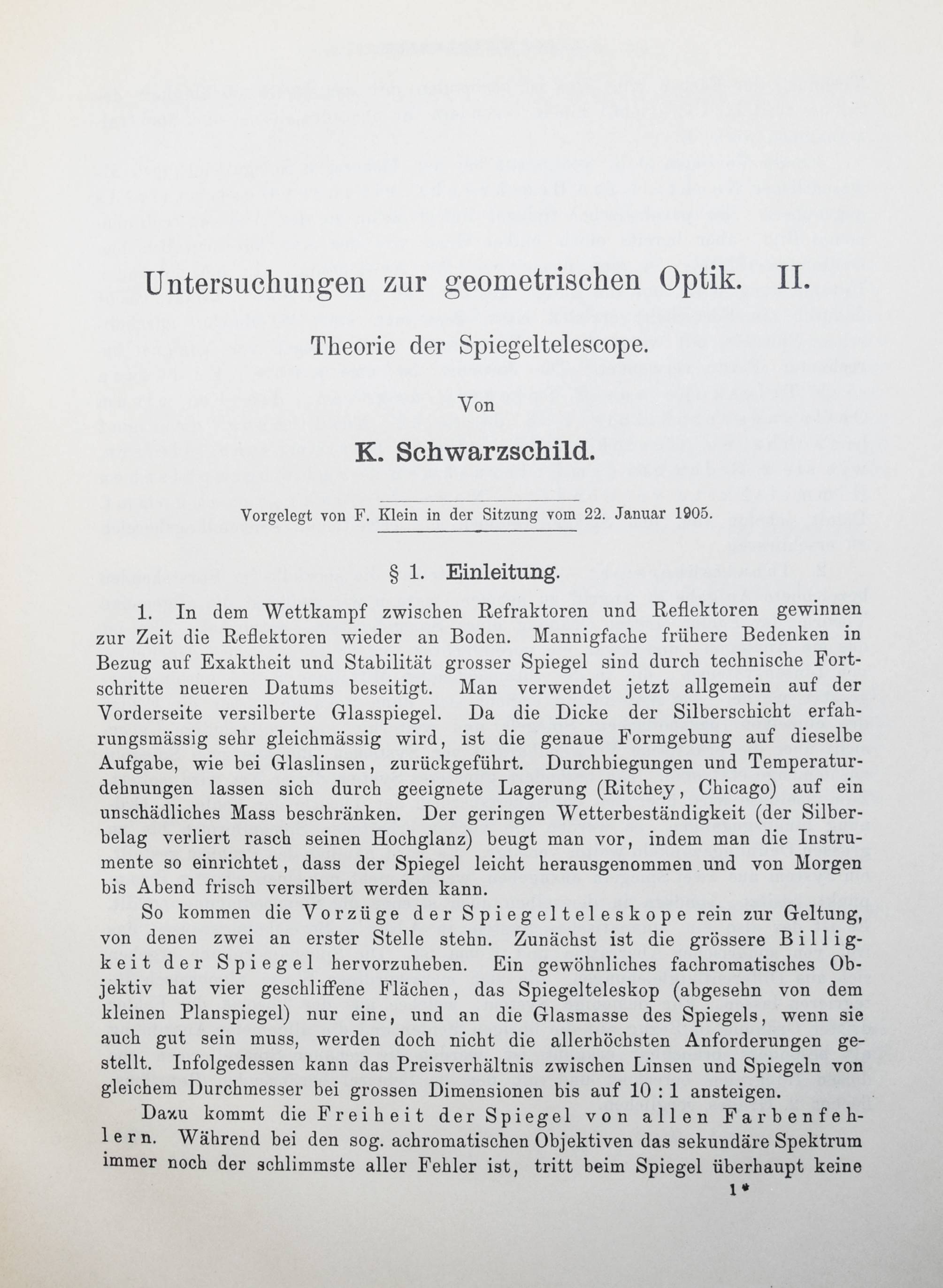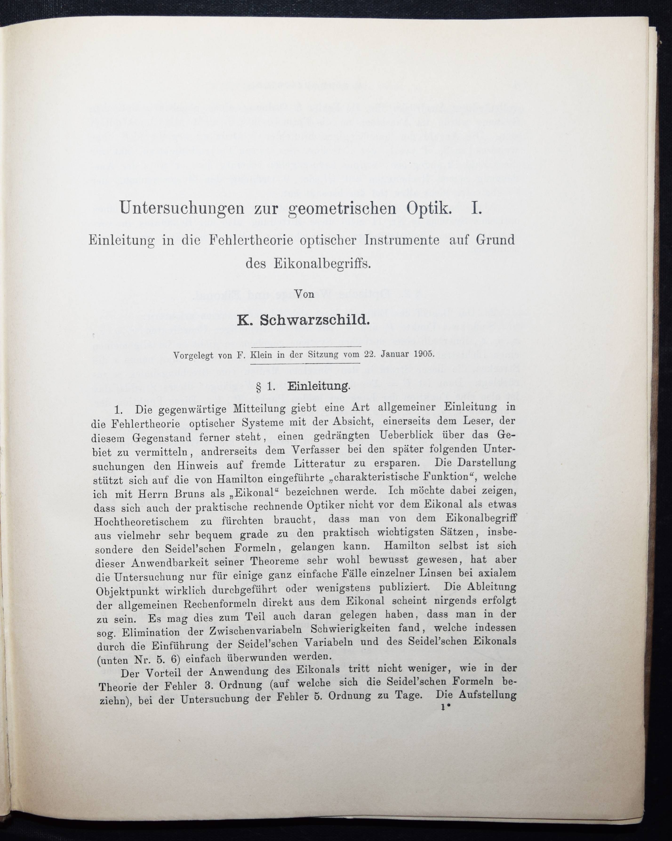 Schwarzschild, Untersuchungen zur geometrischen Optik I. u. II.