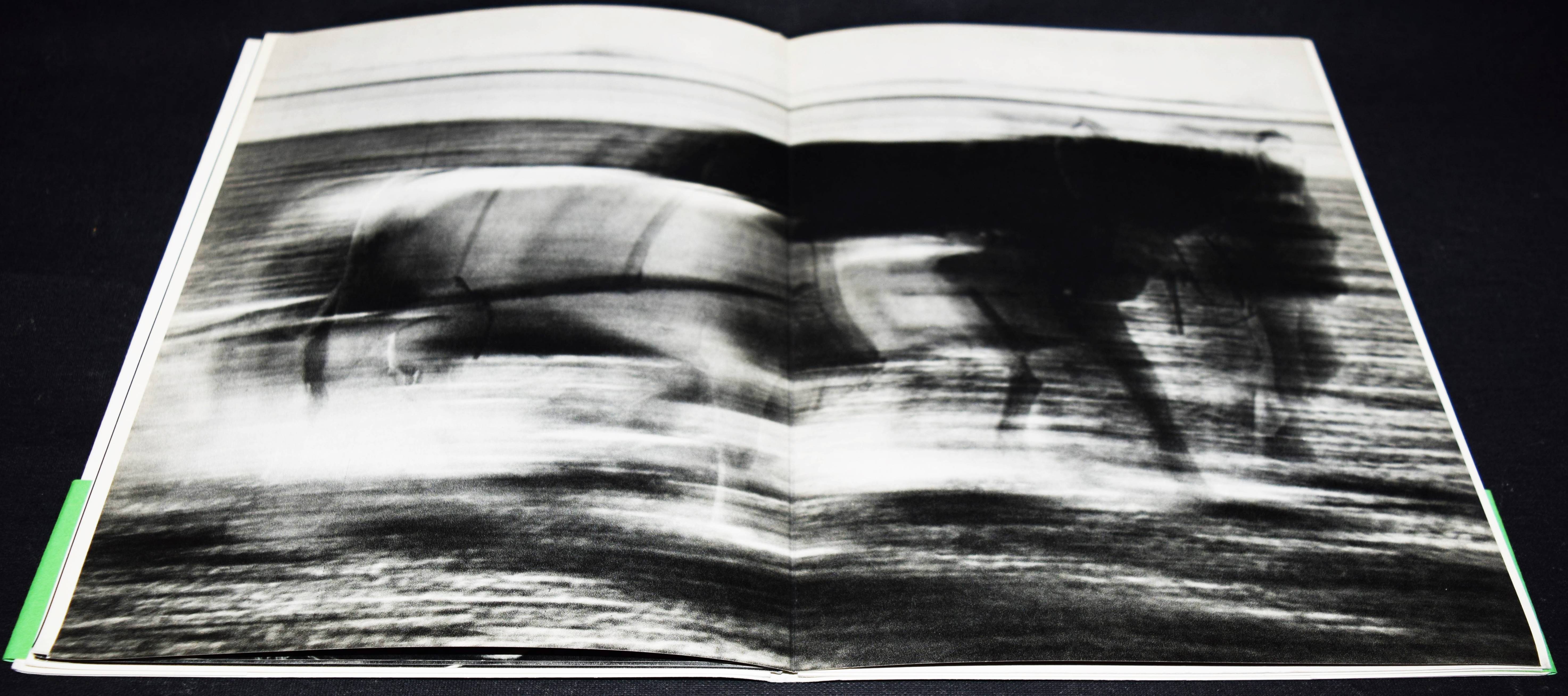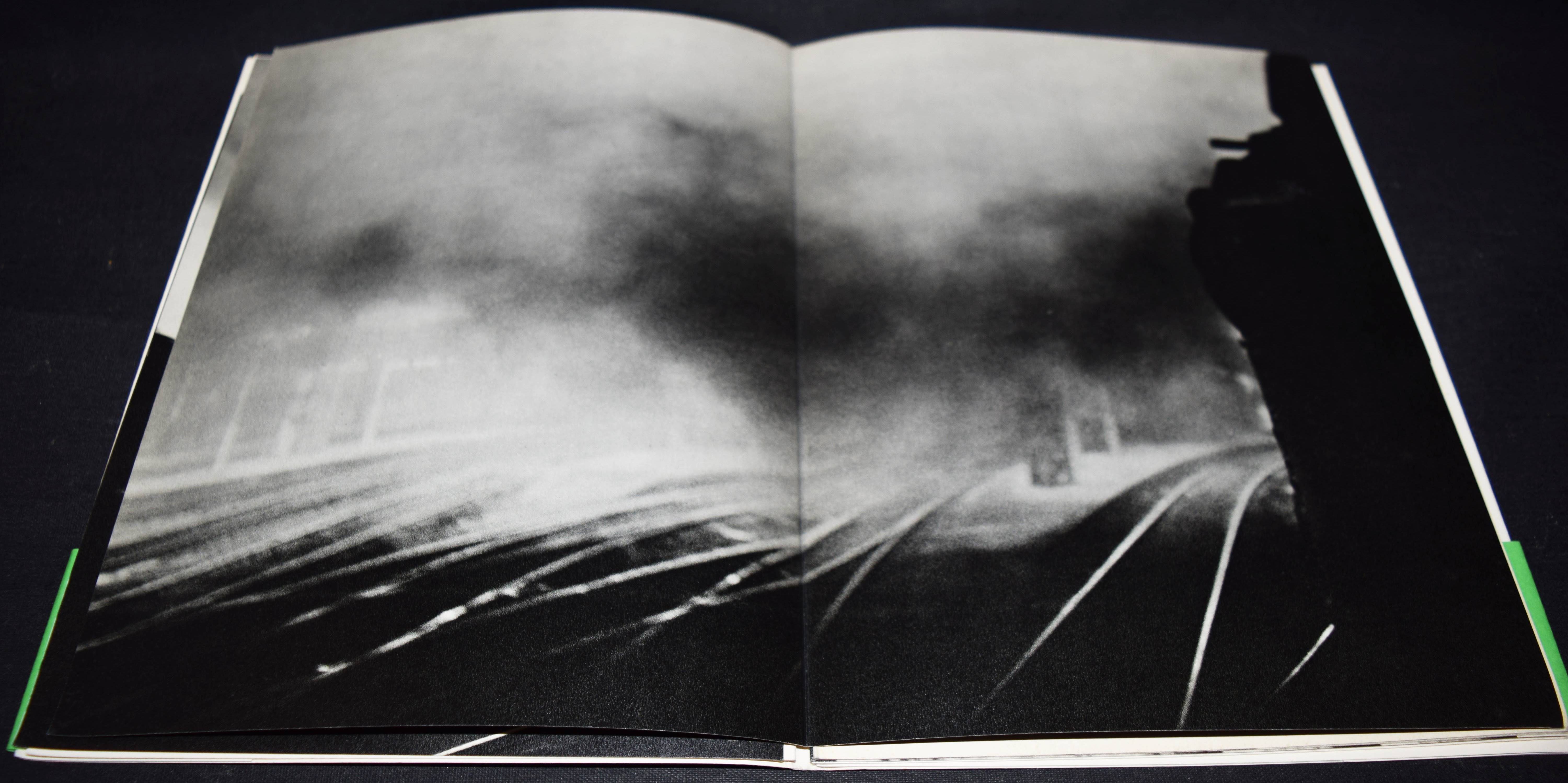 Groebli, René. Magie der Schiene. Fotos: René Groebli. Gedicht: Albert Ehrismann. (Nachwort von Hans Ulrich Gasser). Zürich, Kubus-Verlag (1949). Gr.-8°. Portfolio, [8] Doppelbl. mit 12 ganzseit. u. 2 doppelblattgr. Abb. Illustr. Karton-Umschlag mit Bauchbinde (Buchschleife). Auer 335. Heidtmann 12417. Koetzle 176 f. The Open Book 152 f. Parr/Badger I, 204. Schweizer Fotobücher 162 ff. – Eines von 700 num. Exemplaren (GA 1000 Exemplare). – Von R. Groebli im Druckvermerk signiert. – „Die 24 x 18 Zentimeter grosse Mappe … gilt als Meilenstein der Schweizer Nachkriegsfotografie und Fotobuchgestaltung. Schon die rasant bewegungsverwischte Titelfotografie auf dem Umschlag zieht den Betrachter in ihren Bann: Liest man das Motiv der schnellen Einfahrt eines Zugs in das Halbrund eines gähnend schwarzen Tunnels umgekehrt, also als befreiende Ausfahrt aus dem dunkel ans Licht (was auch eine legitime Interpretation des Bildes wäre), so hat man eine starke Metapher für den Aufbruch der jungen Schweizer Fotografie ab 1975 nach der Zeit des Eingeschlossenseins während des Krieges. Eine Generation von Fotografierenden wollte den eingeschränkten Bewegungsradius ausdehnen und begann, international auf Reisen zu fotografieren. Sie suchte dabei auch auf zeitgemässe Weise an die grosse Tradition einer berichtenden Fotografie anzuknüpfen, die in der Schweiz unter anderem bereits um die Zürcher Illustrierte und ihren Chefredakteur Arnold Kübler in den späten 20er-Jahren begonnen hatte. Leonhard von Matt, Werner Bischof, Ernst Scheidegger, Henriette Grindat, Robert Frank, Jean Mohr, Yvan Dalein oder René Burri brachten dabei nicht nur aus der Schweiz auf, um die Welt zu „er-fahren“. Sie suchten oft zugleich eine neue zeitgenössische Bildsprache, eine andere Art von Wirklichkeitsvermittlung, was sie mit vielen internationalen Fotografierenden verband, auch in den USA mit der Life-Fotografie. … Ein Teil der Auflage erhielt eine im Handsatz bedruckte grüne „Bauchbinde“, die Groebli später auch auf dem Printer nachproduzierte (wie bei vorliegendem Exemplar)“ (T. Koenig in Schweizer Fotobücher). – „The 14 photographs, reproduced in fine gravure, are about the experience of train travel, particularly speed and movement. Groebli captured this by making simple, graphic pictures, and constructing a series of formal variations that investigate blurring and freezing movement, sharp and soft focus. The result is an extremely elegant mood piece, a self-assigned protect turned into an immaculate showcase for the talents of all concerned“ (Parr/Badger). – Sehr schönes sauberes Exemplar mit der meist fehlenden Bauchbinde.