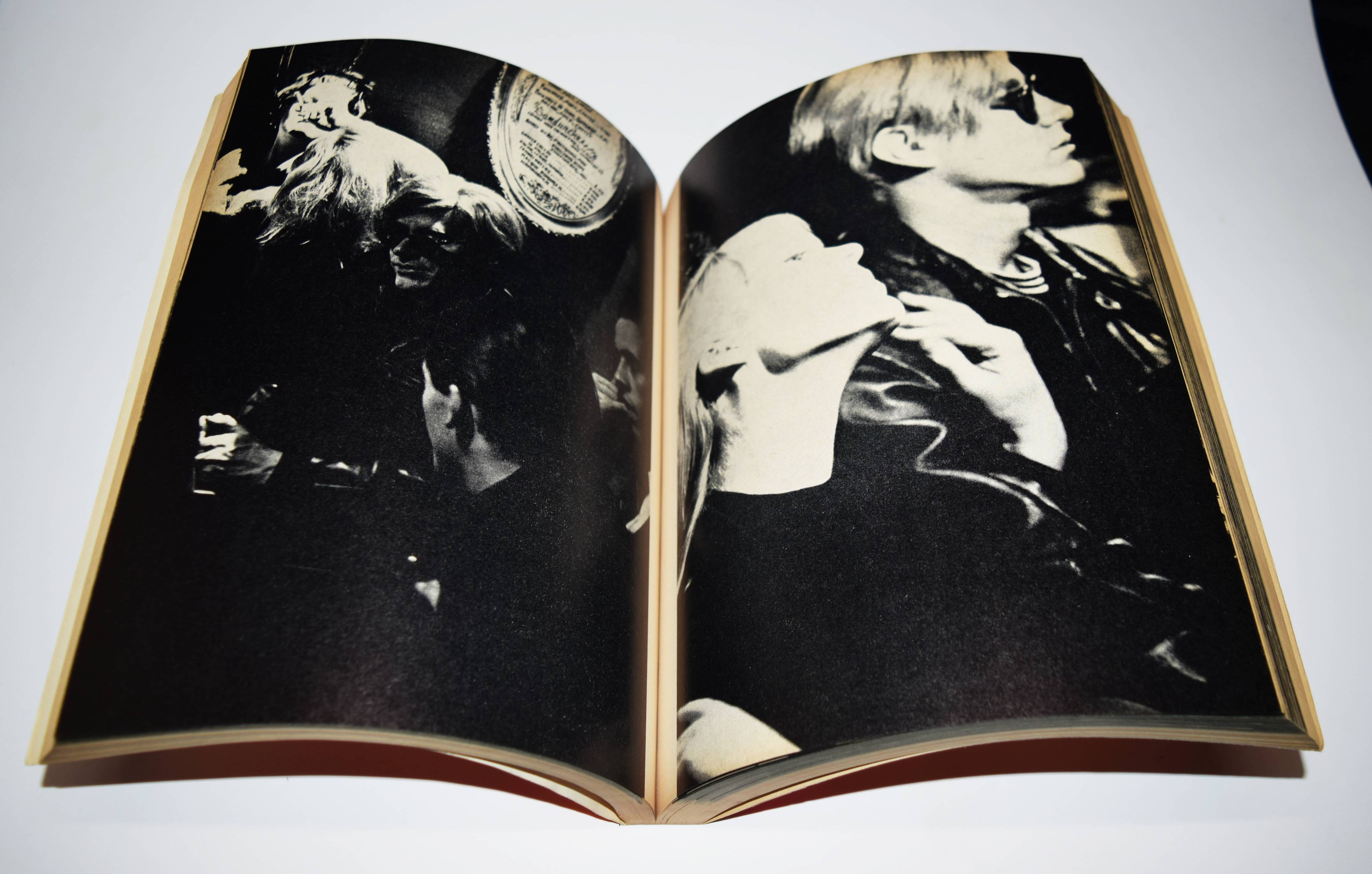 Warhol – Andy Warhol. (Publication on the occasion of the Andy Warhol Exhibition at Moderna Museet in Stockholm, February-March 1968). Second edition. Malmö, Melin, Svensson, Arbman (1969). Gr.-8°. [327] Bl. mit über 300 meist ganzs. Abb. nach Photographien von Rudolph Burckhardt, Eric Pollitzer und John D. Schiff. Farbig illustr. Orig.-Pappband mit Orig.-Versandkarton. Crone 81. Parr/Badger II, 144 f. Roth, The Open Book 238 f. – Von Andy Warhol, Kaspar König, Pontus Hultén und Olle Granath herausgegeben. – Mit eigenhändiger Widmung von A. Warhol „to Dietmar Schneider Andy Warhol“. – „The Moderna Museet book is a worthy adjunct to Index (Book), an exhibition catalogue that transcends any limitations that might be suggested by this genre. It is a fine example of the catalogue-as-artist’s-book, a form that ostensibly began with the Dadaists and Surrealists, and is produced with some of the roughest reproductions ever seenm which are entirely appropriate, and supplemented by a long sections of Factory snapshots again by Billy Name. The genre was revitalized by the Pop movement, and Warhol in particular, which demonstrates his position as a latter-day Dadaist. If you could only have one Warhol-inspired photobook, the Index must rank first, but the Moderna Museet book is close behind“ (Parr/Badger). – „Die Fotografie und das Fotografieren bilden das Zentrum des Werks von Andy Warhol“ (U. M. Schneede in Koetzle). – Der meist fehlende Versandkarton mit Gebrauchsspuren, papierbedingt wie immer gebräunt, sehr gutes Exemplar. – Edited by Andy Warhol, Kaspar König, Pontus Hultén and Olle Granath. – With handwritten dedication by A. Warhol “to Dietmar Schneider Andy Warhol”. – The mostly missing shipping carton with traces of use, browned paper as usual, very good copy.