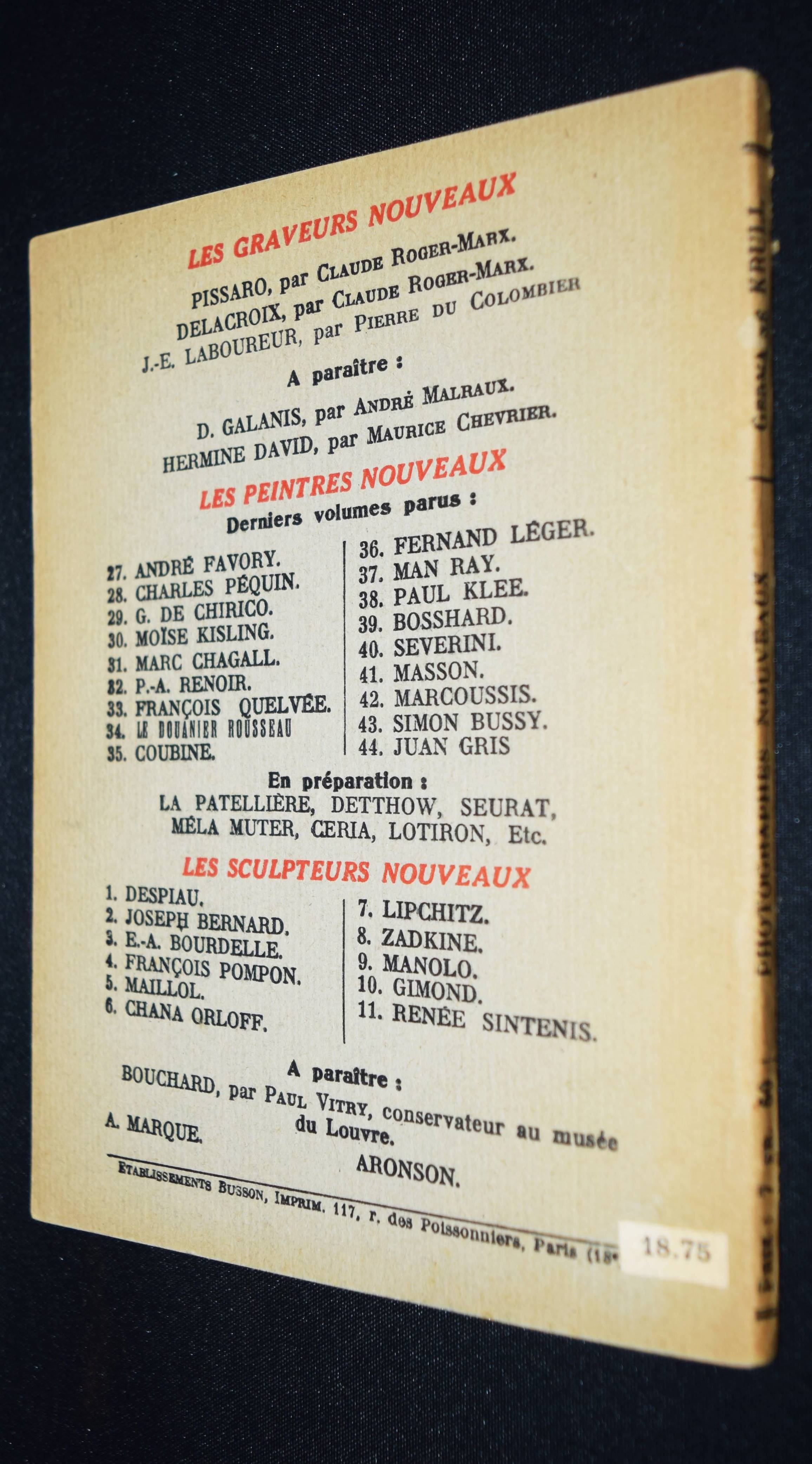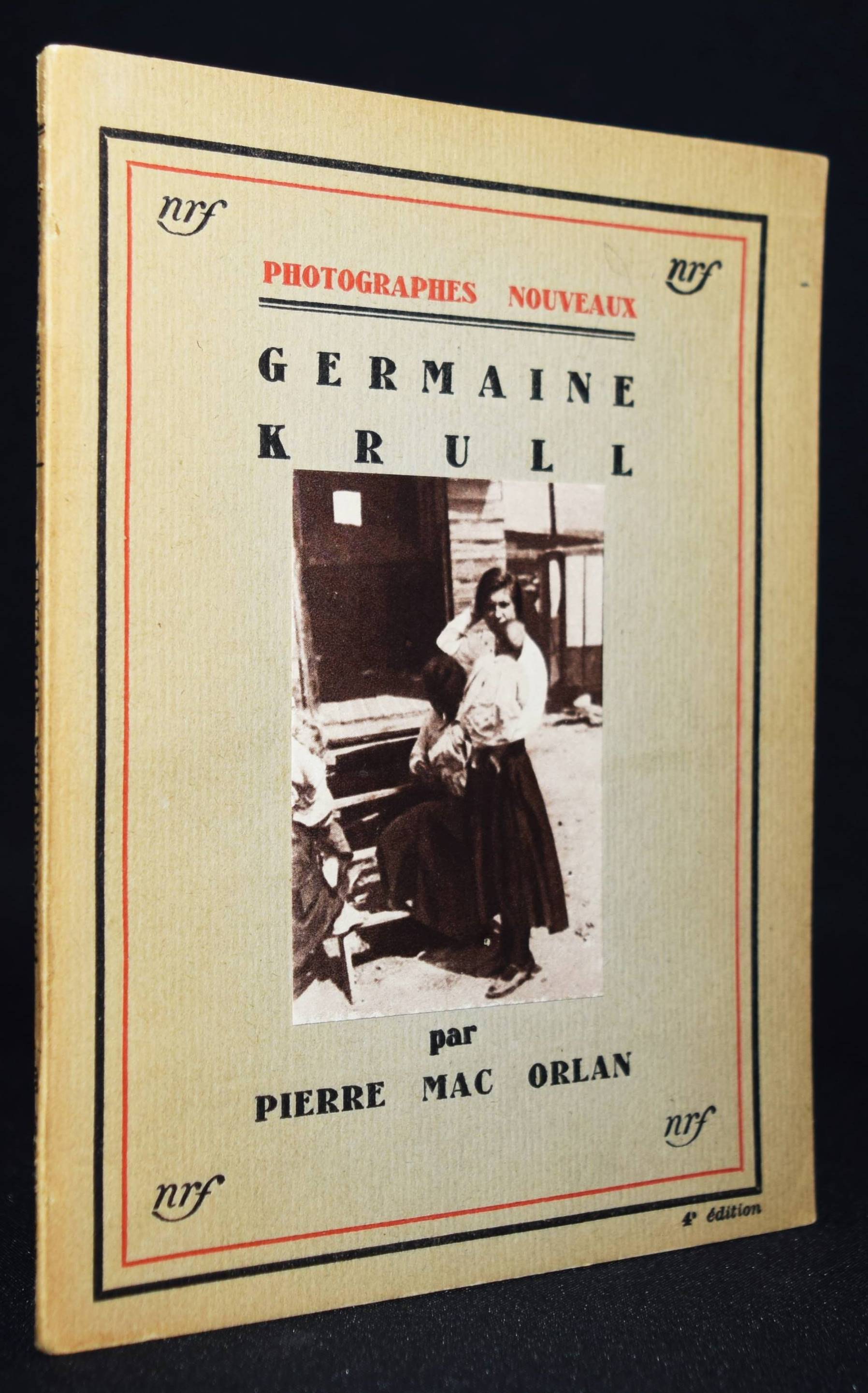 Krull – Mac Orlan, Pierre. Germaine Krull. Photographes nouveaux. Quartrième édition. Paris, Gallimard (1931). Kl.-8°. 63 S. mit Titel-Portrait (nach einem Holzschnitt von Georges Aubert) mit 5 Abb. im Text u. 28 Tafeln. OKart. mit Deckelbild. Bouqueret, Paris 88 (3e édition). Frizot, Krull 176 u. 257. – „La fin de l’année 1930 voit la publication de cette petite monographie consacrée à Germaine Krull: elle comporte 44 reproductions et un texte de Mac Orlan. Elle inaugure et clôt d’un même mouvement chez Gallimaed la collection „Les Photographes nouveaux“, soeur jumelle de la collection „Le Peintres nouveaux“, dans laquelle était déjà paru un Man Ray en 1924, présenté par Ribermont-Dessaignes et comporant 27 oeuvres dont quelques photographies. Cet ouvrage est une véritable consécration pour Germaine Krull, qui apparaît alors de très loin comme la plus généreusement publée des photographes. Tout les genres sont abordés dans cette monographie, du portrait au reportage, sans oublier la publicité et le nu. À la suite d’une courte revue de presse consacrée à la photographe, une lettre de (Jean) Cocteau est reproduite dans le livre, adressée à Krull en avril 1930, et qui se termine ainsi: „Vous êtes un miroir reformant. Vous et la chambre noir obtenez un monde neuf, un monde qui a traversé des mécanismes et une âme“.“ (C. Bouqueret). – Sehr gutes Exemplar.