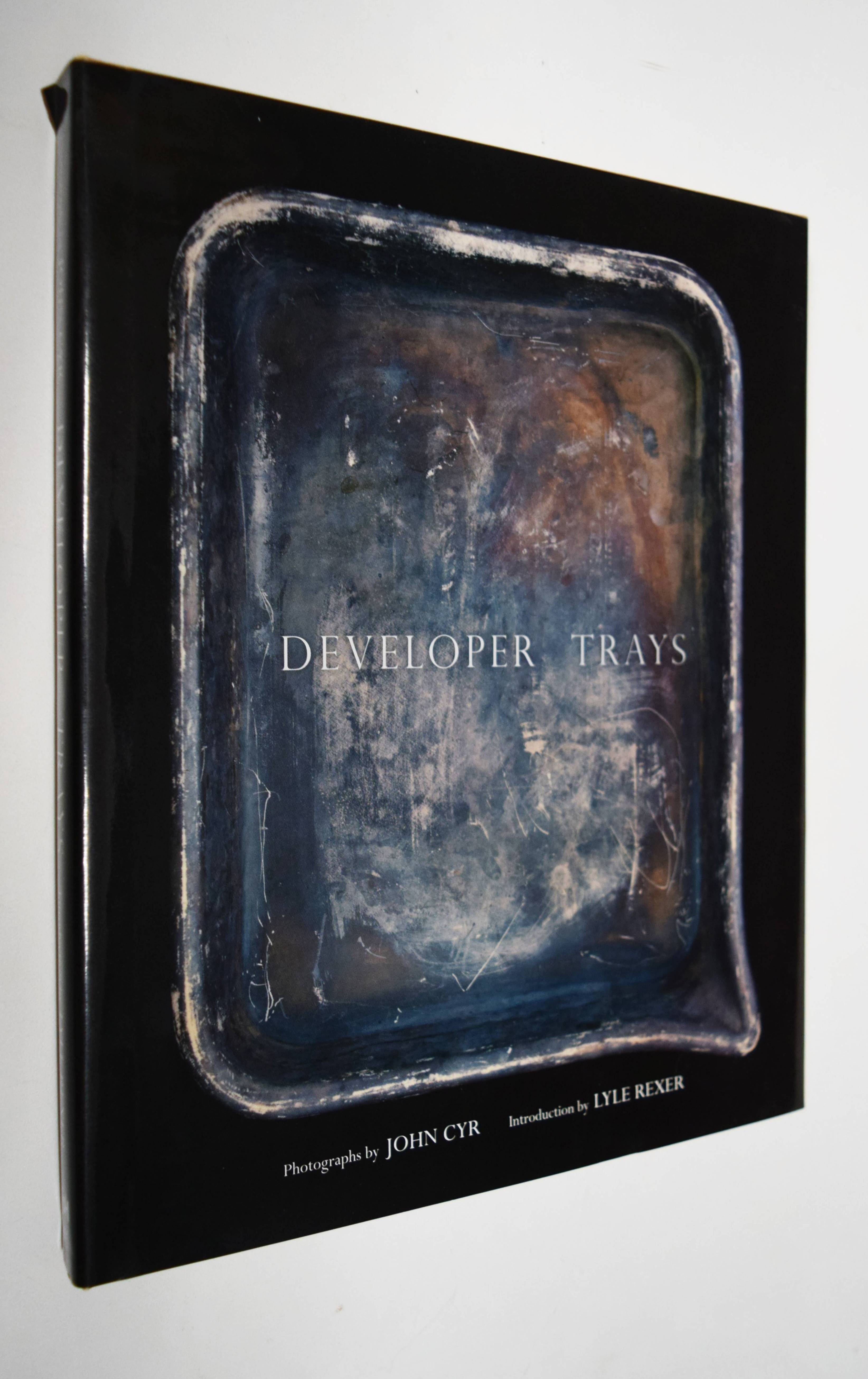Cyr, John. Developer trays. Introduction by Lyle Rexer. Brooklyn, Powerhouse Books (2014). 4°. 144 S. mit Farbtafeln. OPbd. mit farbig illustr. OU. Erste Ausgabe. – Der New Yorker Fotograf und Professor für Fotografie am Suffolk County Community College John Cyr (geb. 1991) präsentiert Entwickler-Schalen bekannter amerik. Fotografen mit ihren Gebrauchsspuren, darunter von Ansel Adams, Sally Mann, Minor White, Bruce Davidson, Tom Baril, Bill Burke, Elliott Erwitt, Larry Fink, Aaron Siskind, Joel-Peter Witkin und Ralph Gibson. – „As sure as the age of silver has come to an end, there remain few but extraordinary and dedicated darkroom practitioners such as Cyr who continue to work with chemistry and processes more or less unchanged since the early days of the medium. With an unrivaled passion for the darkroom and all its accouterments Cyr set out to document the actual developer trays of many of the world’s most renowned photographers. Cyr celebrates in stunning large-format color photographs the intimate materiality of the developer tray itself and the ephemeral presence of the artist within it. This revelatory work showcases the ubiquitous developer tray as an essential vehicle of analog photography that defies modern digital photographic advances: its material nature and functionality will not become obsolete“ (Powerhouse Books). – Tadellos.