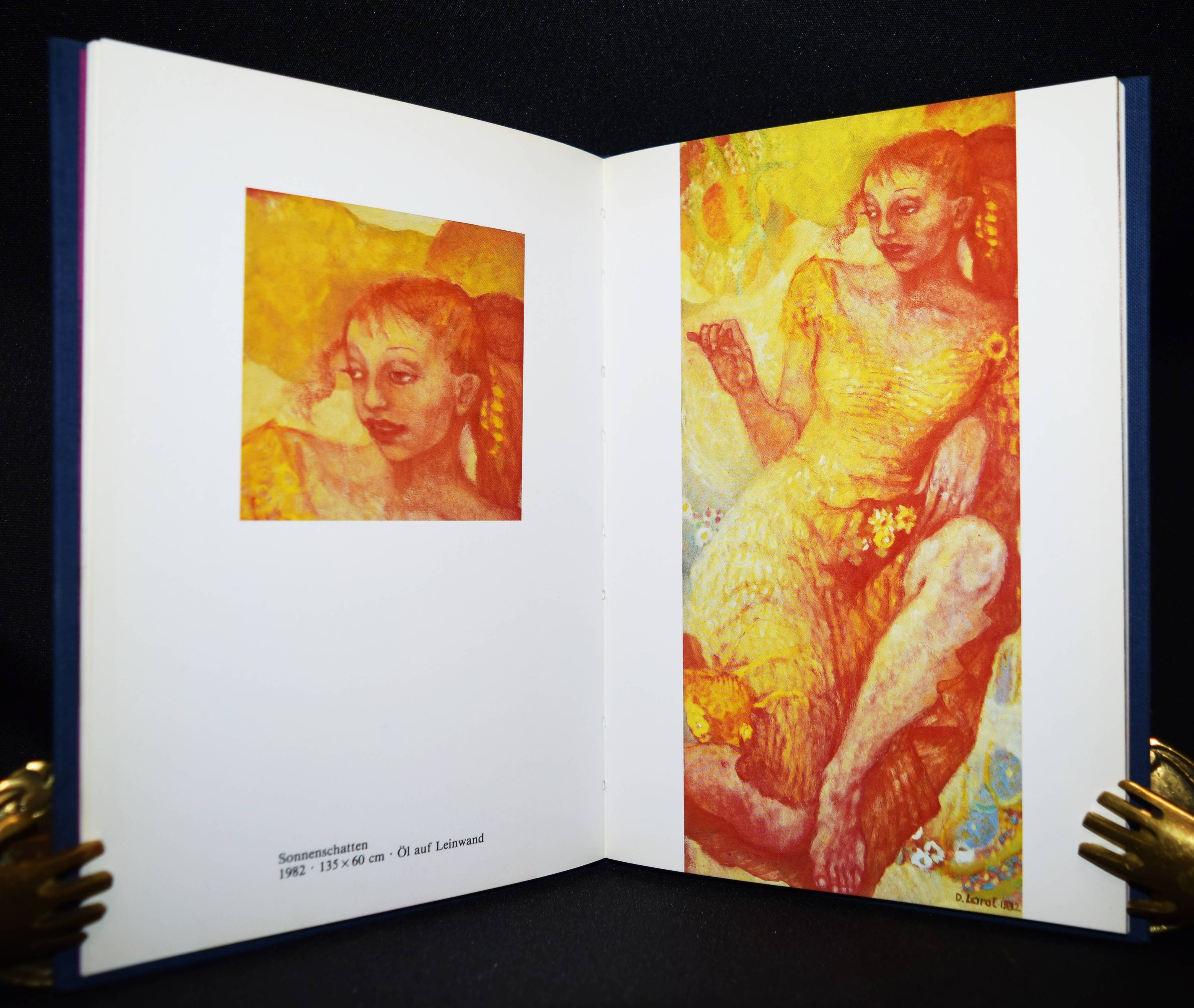 Larot, Dina (d. i. Maria Elisabeth Lebzeltern). Morgenrot. Wien, Selbstverlag 1983. 8°. [64] S. mit 5 Fototafeln und 35 meist ganzs. farb. Abb. OLn. mit farb. Deckelbild. Mit eigenhändiger Widmung von D. Larot für Gerda Auer. – Dina Larot (geb. 1942 in Wien), „studierte bei Rudolf Szyszkowitz an der Kunstgewerbeschule Graz Malerei. Im Jahr 1962 war sie in Salzburg Teilnehmerin der Sommerakademie „Schule des Sehens“ bei Oskar Kokoschka. Im Zuge ihrer künstlerischen Entwicklung nahm sie den Künstlernamen Dina Larot an. … Hauptthemen ihres künstlerischen Schaffens sind weibliche Erotik und weibliche Sexualität. In Medien wird sie auch als Mädchenmalerin oder als Malerin des Weiblichen bezeichnet“ (Wikipedia). – Sehr gutes Exemplar.