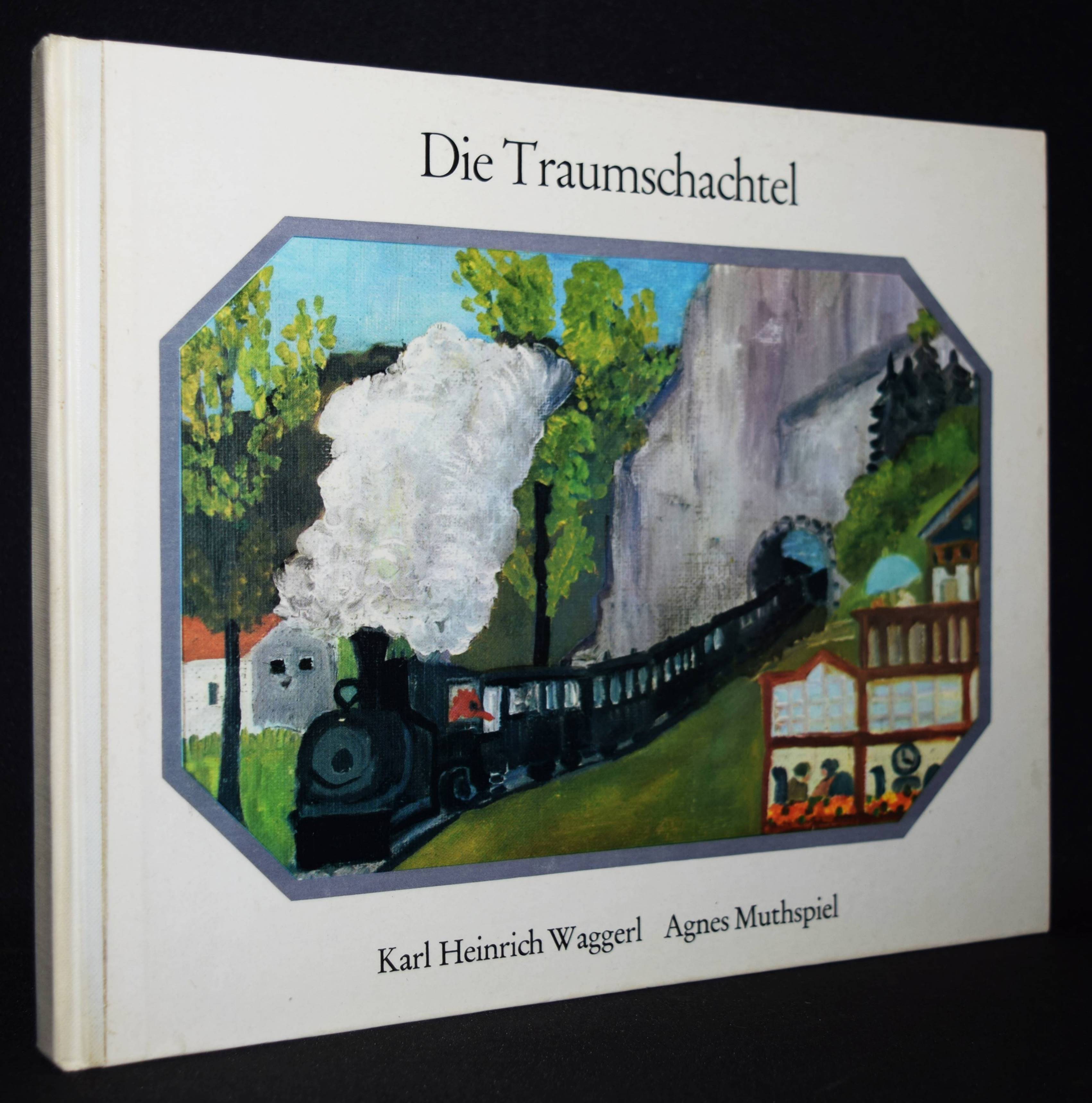 Waggerl, Karl Heinrich. Die Traumschachtel. (Mit Bildern von) Agnes Muthspiel. Salzburg, Residenz Verlag o. J. (1961). Quer-8°. [20] Bl. mit 18 Farbtafeln auf Karton. Farbig illustr. OHln. W.-G.² 48. – Erste Ausgabe. – Mit schönen naiven Illustrationen der Salzburger Malerin A. Muthspiel (1914-1966). – „Naiv bedeutet, auf sie angewandt, die ungebrochene, unabgeleitete, direkte Art, mit der sie ihre Lebenserfahrung ihren alltäglichen Blick auf die Dinge in Malerei umsetzte. Ihr Alltag war intensiv. … Agnes Muthspiel ist die Malerin einer untergehenden Welt, der sie aber nicht wehmütig oder romantisch nachblickte. Sie reichte selbst noch hinab, war dort eingeboren.“ (Gerhard Amanshauser). – Sehr gutes sauberes Exemplar.