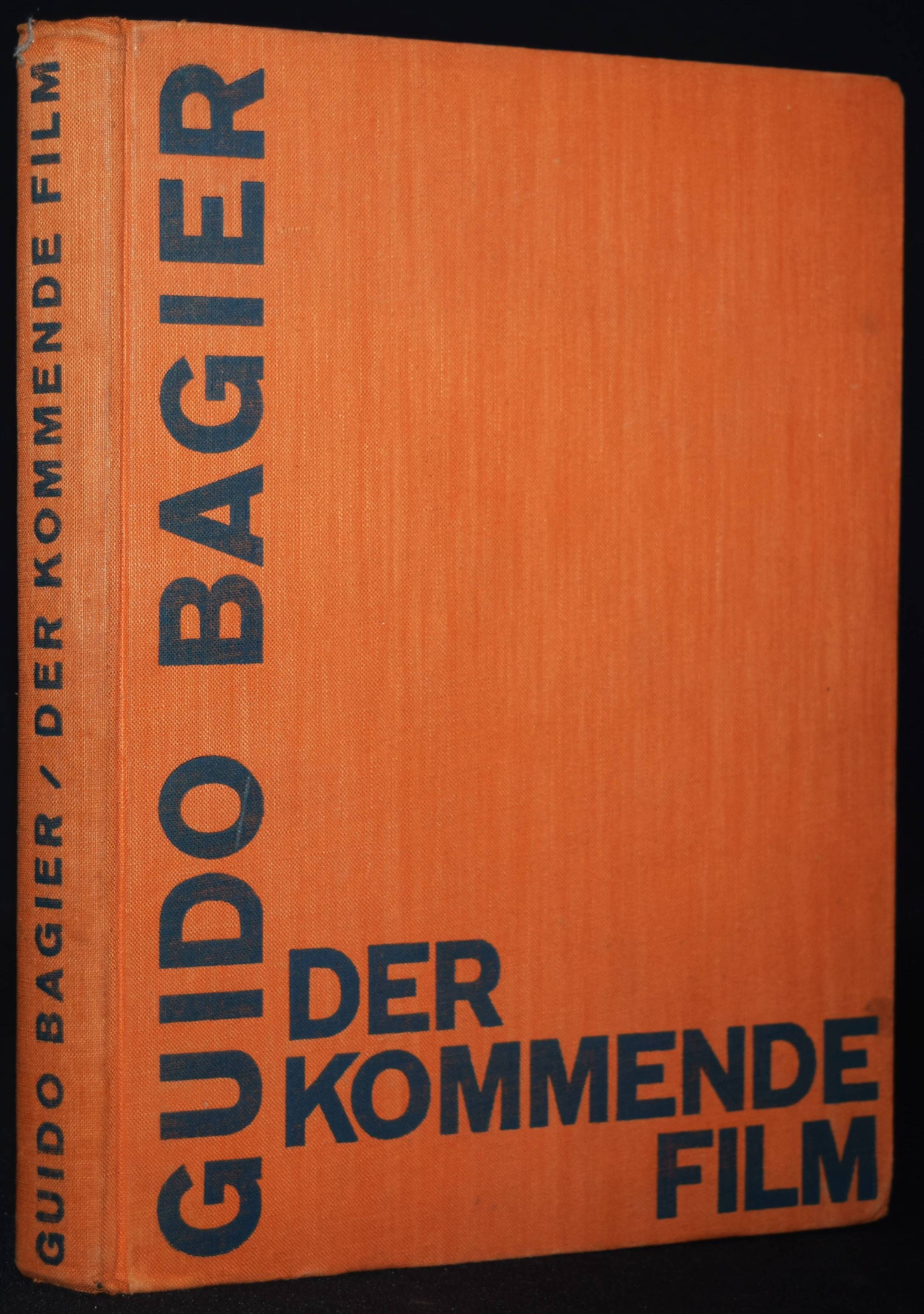 Bagier, Guido. Der kommende Film. Eine Abrechnung und eine Hoffnung. Was war? Was ist? Was wird? Stuttgart, Leipzig, Deutsche Verlags-Anstalt 1928. Gr.-8°. 94 S., [2] Bl. und 203 Abb. auf 115 Tafeln. Orig.-Leineneinband mit graublauem Rücken- und Deckeltitel (Entwurf: Richard Herre). Traub-Lavies 8. – Erste Ausgabe. – Wichtiges Werk über den experimentellen expressionistischen Film. – „Nur der unabhängige Film kann wertvoll sein. Jedes Werk, dass zeitliche Rücksichten nimmt, ist auch zeitlich begrenzt und damit real und ideell minderwertig. Der von der Industrie geforderte rasche Umsatz erdrosselt den Film. Der Film erstickt unter dem Zwang der Mode“ (S. 11). – Einband leicht angestaubt, gutes Exemplar.
