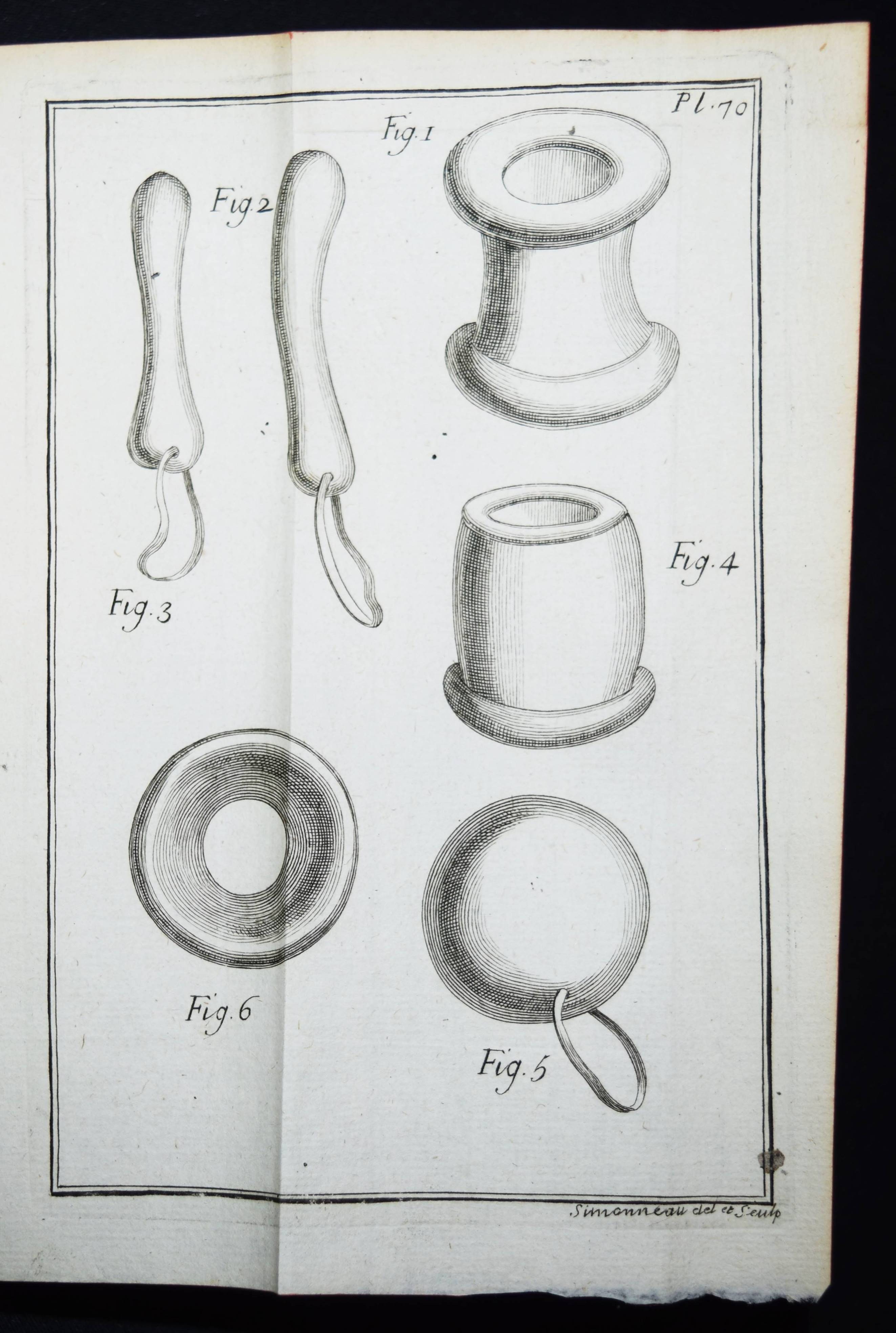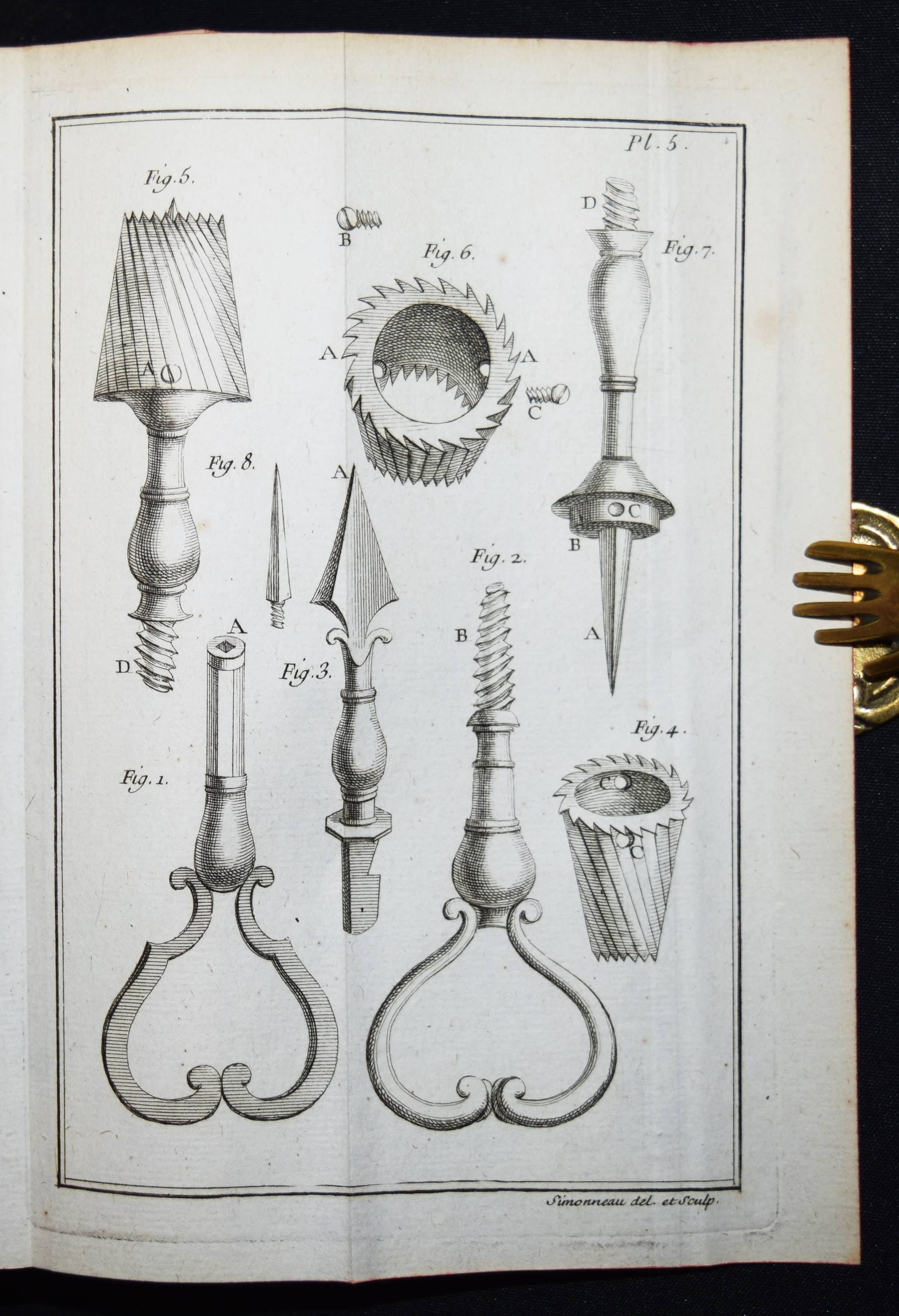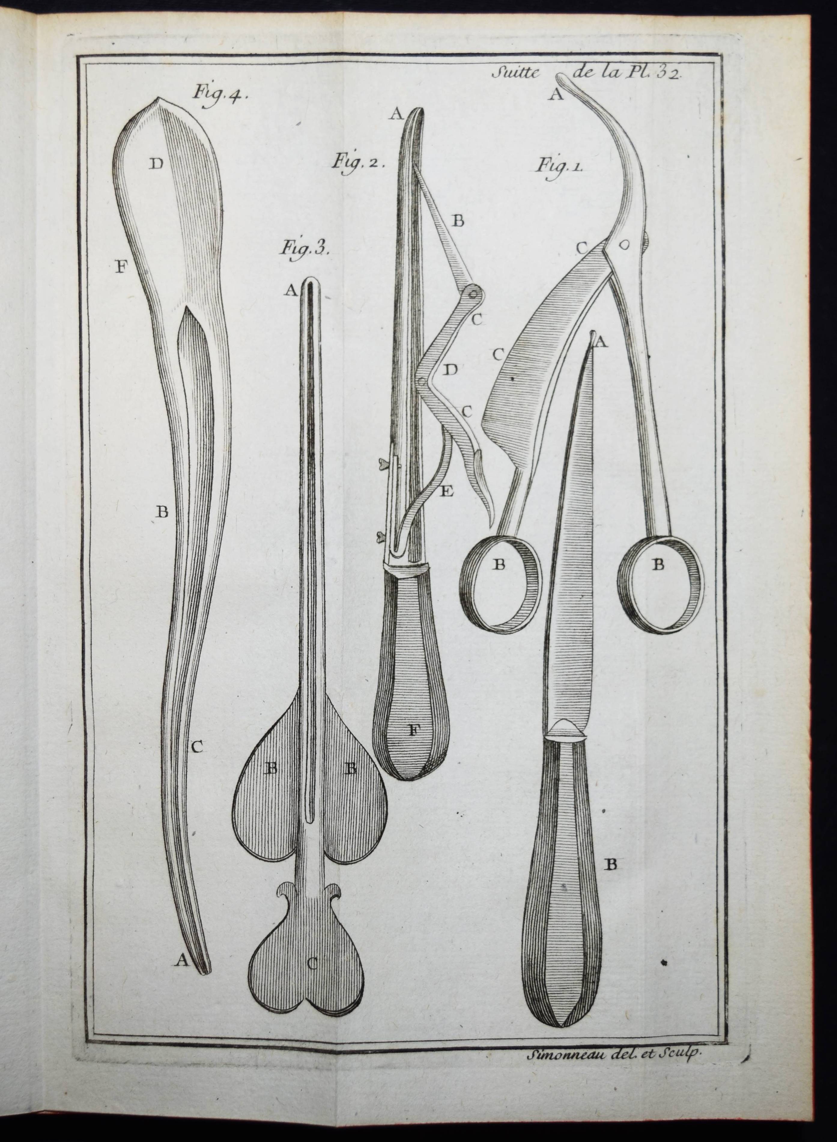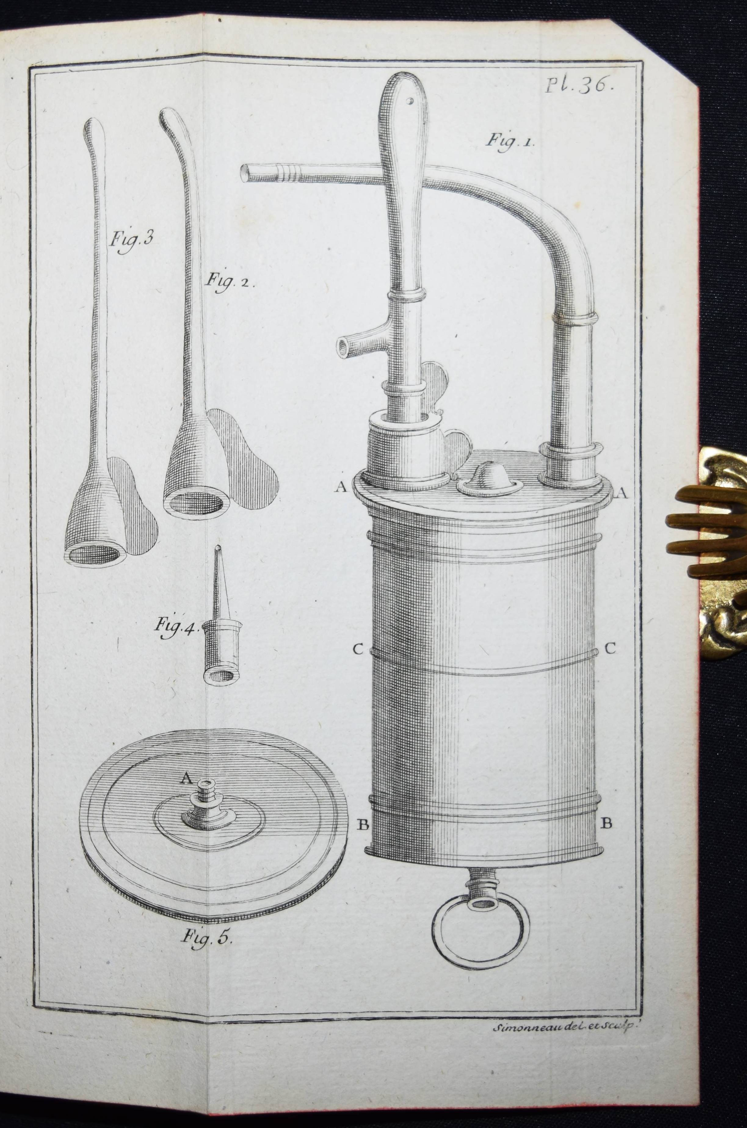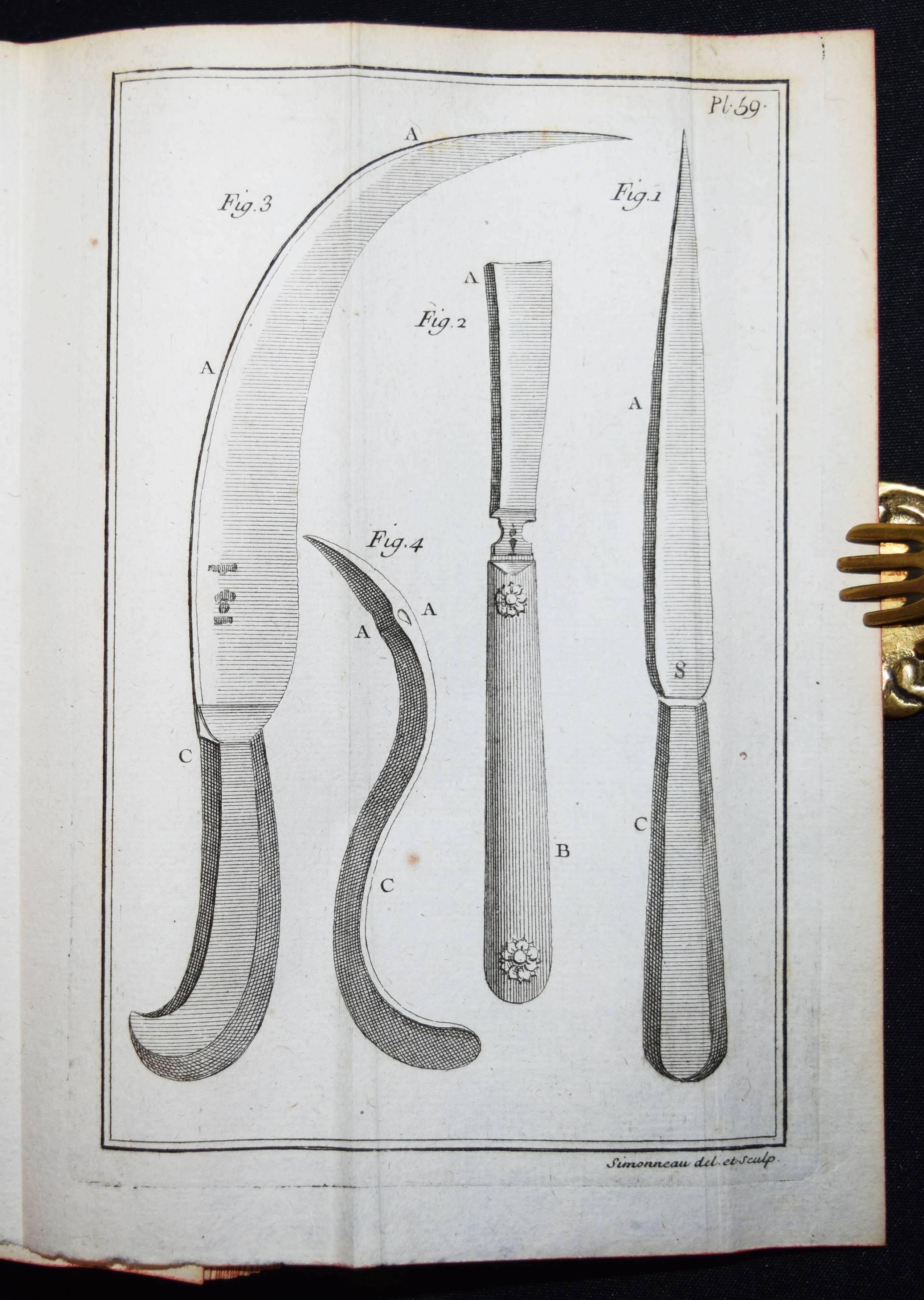 Petit, J(ean)-L(ouis). Traité des maladies chirurgicales et des opérations qui leur conviennent. 3 Bände. Paris, P. Fr. Didot le jeune 1774. 8°. [5] Bl., CIV, 407, (1) S.; [1] Bl., VIII, 560 S.; [1] Bl., VIII, 343 S. mit gestoch. Portrait-Frontispiz und 90 meist gefalt. Kupfertafeln. Kalbslederbände der Zeit mit goldgepr. Rückensch. und floraler Rückenvergoldung. Blake 345. Garrison-Morton 3357 u. 3577. Haeser 660. Hirsch-Hüb. IV, 568. – Erste Ausgabe, eines der wichtigsten medizinischen Handbücher des 18. Jahrhunderts . – „Unter den französ. Wundärzten der ersten Hälfte d. 18. Jhdts. nimmt unbestreitbar J. L. Petit aus Paris (1674-1750) die erste Stelle ein“ (Haeser). – Die Kupfer zeigen größtenteils chirurg. Instrumente. – Gelenke teils etwas spröde und leicht angeplatzt, Band III am Kapital mit geringf. Fehlstelle, vereinzelt leicht braunfleckig, gutes dekorativ gebundenes Exemplar.