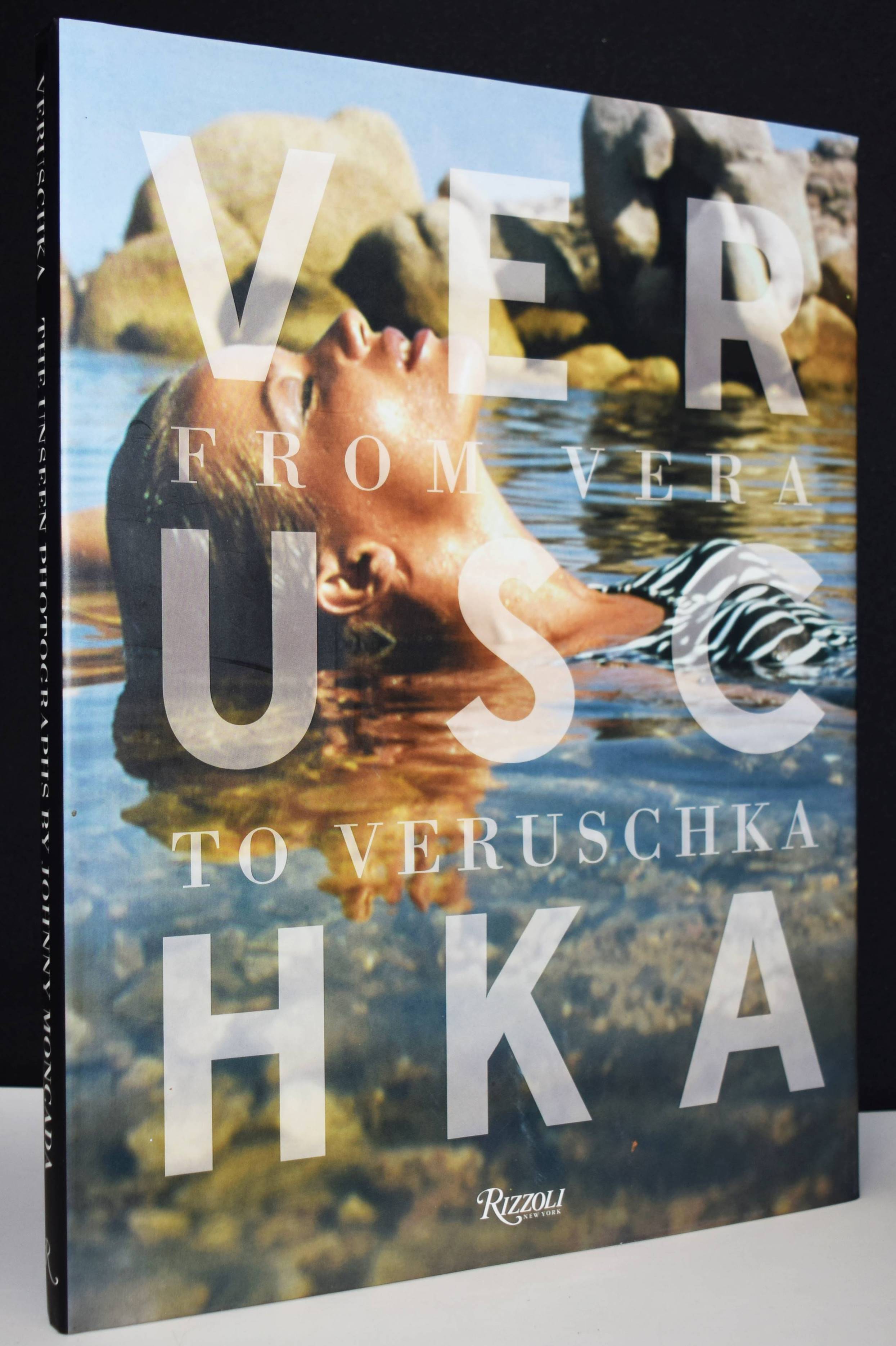 Moncada – Monfreda, Antonio (Hrsg.). Veruschka. From Vera to Veruschka. The unseen photographs by Johnny Moncada. New York, Rizzoli (2014). Folio ( XXI S., [61] Bl. mit teils doppelblattgr. und farb. Tafeln. Orig.-Pappband mit farbig illustr. Orig.-Schutzumschlag. Erste Ausgabe. – „When photographer Johnny Moncada opened a trunk of his archives that had been locked for thirty years, he and his daughter found over ten thousand unseen and unpublished photographs. Of these, three thousand of them were of the gorgeous fashion icon, Veruschka. This lavish volume presents a single series of these images where Moncada photographed Veruschka over the course of a month-long holiday in Capri and Rome, Italy. Using a mixture of quiet moments and posed artistic shots, Moncada was able to capture not only the style, fashion, and energy of the 1960s, but he was also able to witness rare moments and the glamorous intrigue and poise of Veruschka. Moncada’s exquisite fashion photographs embody elegance, and this volume captures the romance, beauty, and grace of Veruschka and timeless glamour and decadence“ (Rizzoli). – Die Schauspielerin, Malerin und Fotografin Vera Anna Gottliebe Gräfin von Lehndorff (auch Veruschka, geb. 1939) „gilt als das „erste deutsche Supermodel“… In den 1960er Jahren wurde die hochgewachsene von Lehndorff (1,90 m) bei einem Aufenthalt in Florenz als Fotomodell entdeckt. Sie legte sich das Pseudonym Veruschka (Koseform von Vera) zu, vermarktete sich so als Kunstfigur und wurde international bekannt“ (Wikipedia). – Sehr gutes Exemplar.