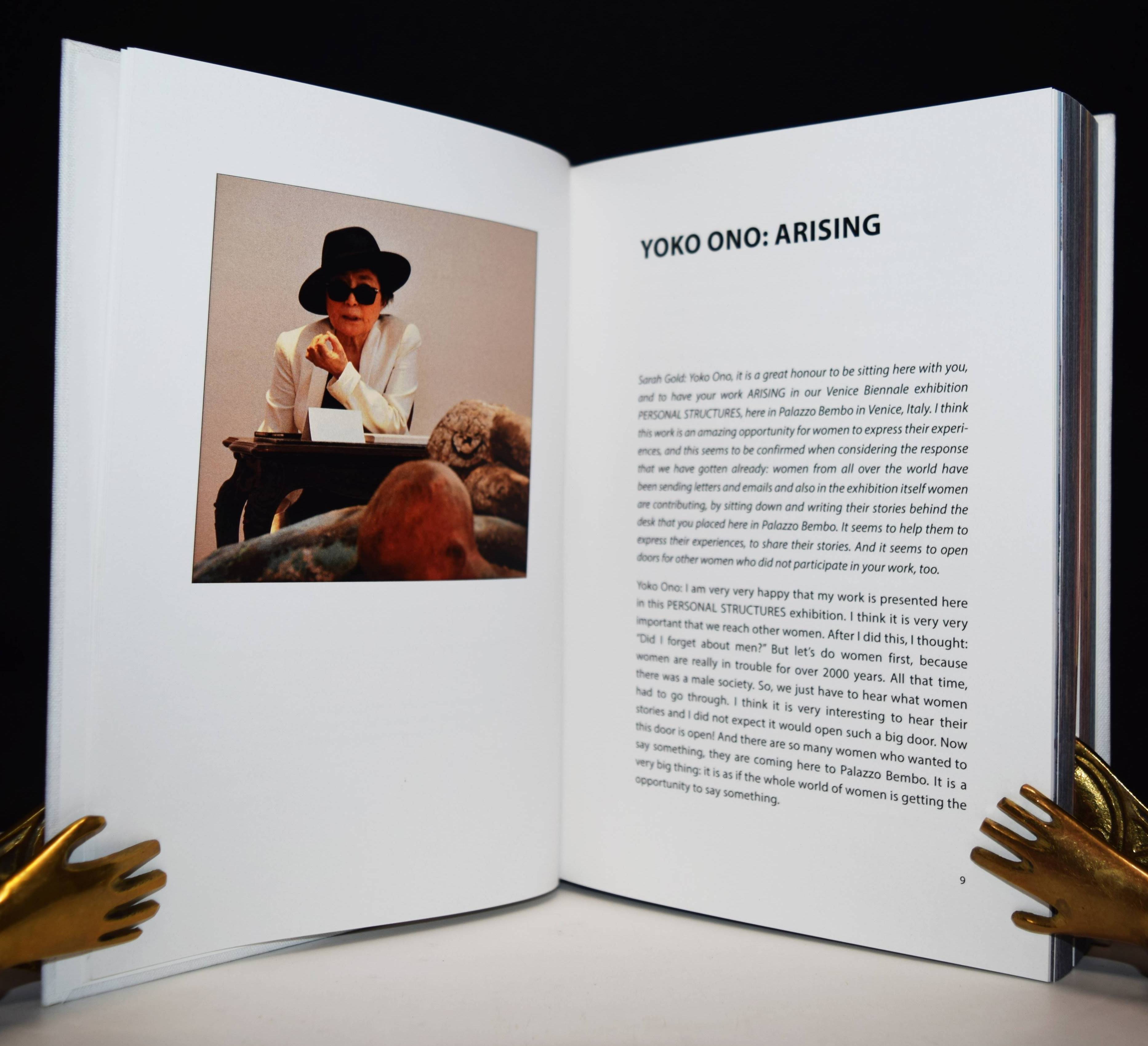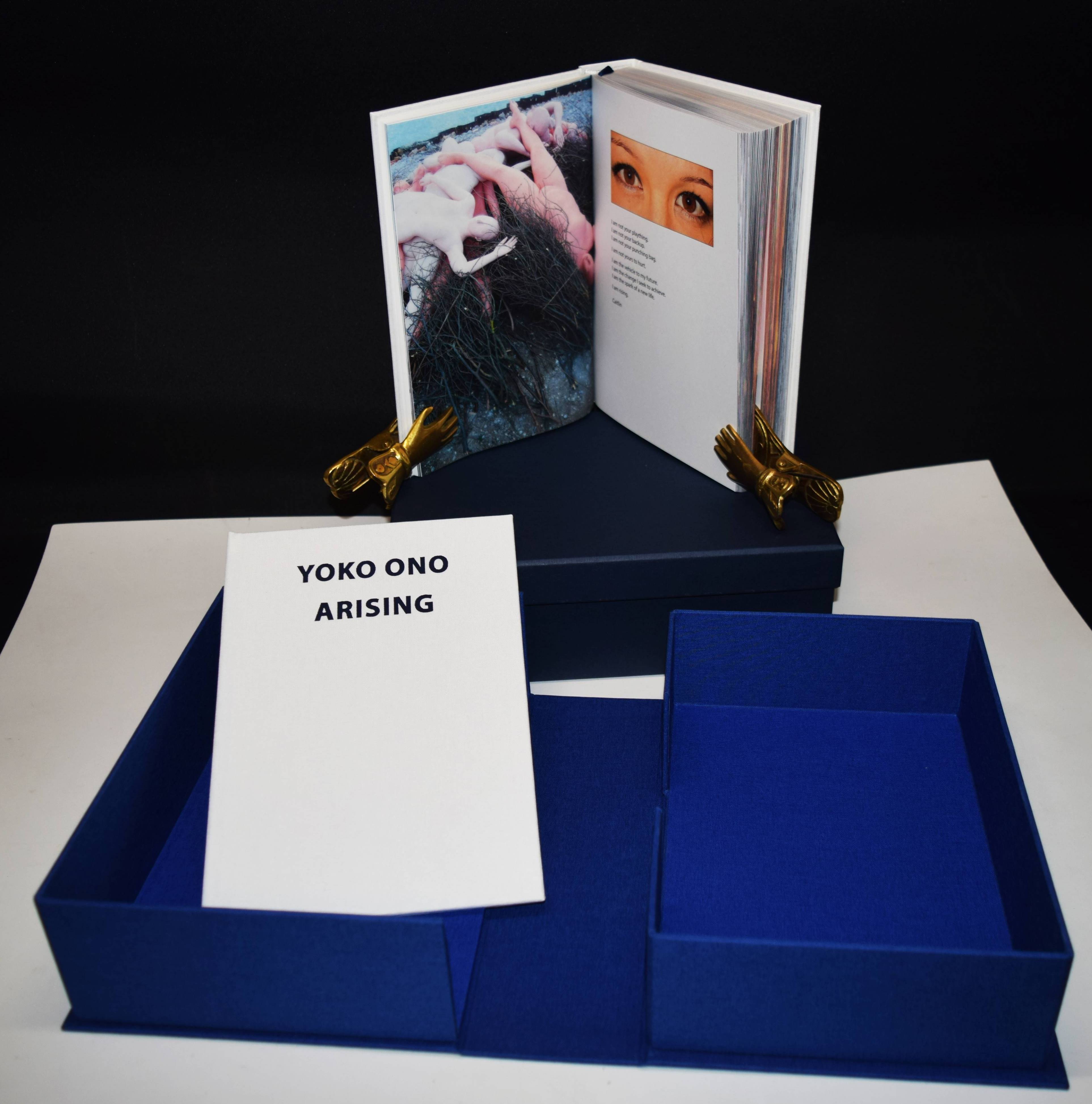 Ono(-Lennon), Yoko. Arising. (Edited by) Karlyn de Jongh, Sarah Gold, Jon Hendricks. Standard edition. Leiden, Global Art Affairs Foundation und Luiscius Books (2014). 8° (21,5 x 15 cm.). 15 S., [208] Bl. mit zahlr. Farbtafeln und farb. Abb. sowie 1 DVD. Orig.-Leinenband und Leinen-DVD-Cover in Orig.-Leinen-Buchkassette und Orig.-Pappkassette. (Personal structures art projects, vol. 9). Eines von 150 num. Exemplaren der Standard-Edition (Gesamtauflage 260 Exemplare). – „Listen to your heart / Respect your intuition / Make your manifestation / There’s no limitation / Have courage / Have rage / We’re all together / Follow your heart / Use your intuition / Make your manifestation / There’s no confusion / Have courage / Have rage / We’re rising“ (Yoko Ono, Rising). – „ARISING / A CALL / WOMEN OF ALL AGES, FROM ALL COUNTRIES OF THE WORLD: YOU ARE INVITED TO SEND A TESTAMENT OF HARM DONE TO YOU FOR BEING A WOMAN. WRITE YOUR TESTAMENT IN YOUR OWN LANGUAGE, IN YOUR OWN WORDS, AND WRITE HOWEVER OPENLY YOU WISH. YOU MAY SIGN YOUR FIRST NAME IF YOU WISH, BUT DO NOT GIVE YOUR FULL NAME. SEND A PHOTOGRAPH ONLY OF YOUR EYES. THE TESTAMENTS OF HARM AND PHOTOGRAPHS OF YOUR EYES WILL BE PRESERVED AND EXHIBITED IN MY INSTALLATION ARISING, 9 SEPTEMBER – 4 DECEMBER 2022, AS PART OF MY EXHIBITION YOKO ONO: THE LEARNING GARDEN OF FREEDOM AT KAUNAS PICTURE GALLERY, KAUNAS, LITHUANIA. THE INSTALLATION ARISING WILL CONTINUE TO GROW AND WILL BE EXHIBITED IN MANY COUNTRIES. I VERY MUCH HOPE FOR YOUR PARTICIPATION“ (Yoko Ono). – Tadellos.