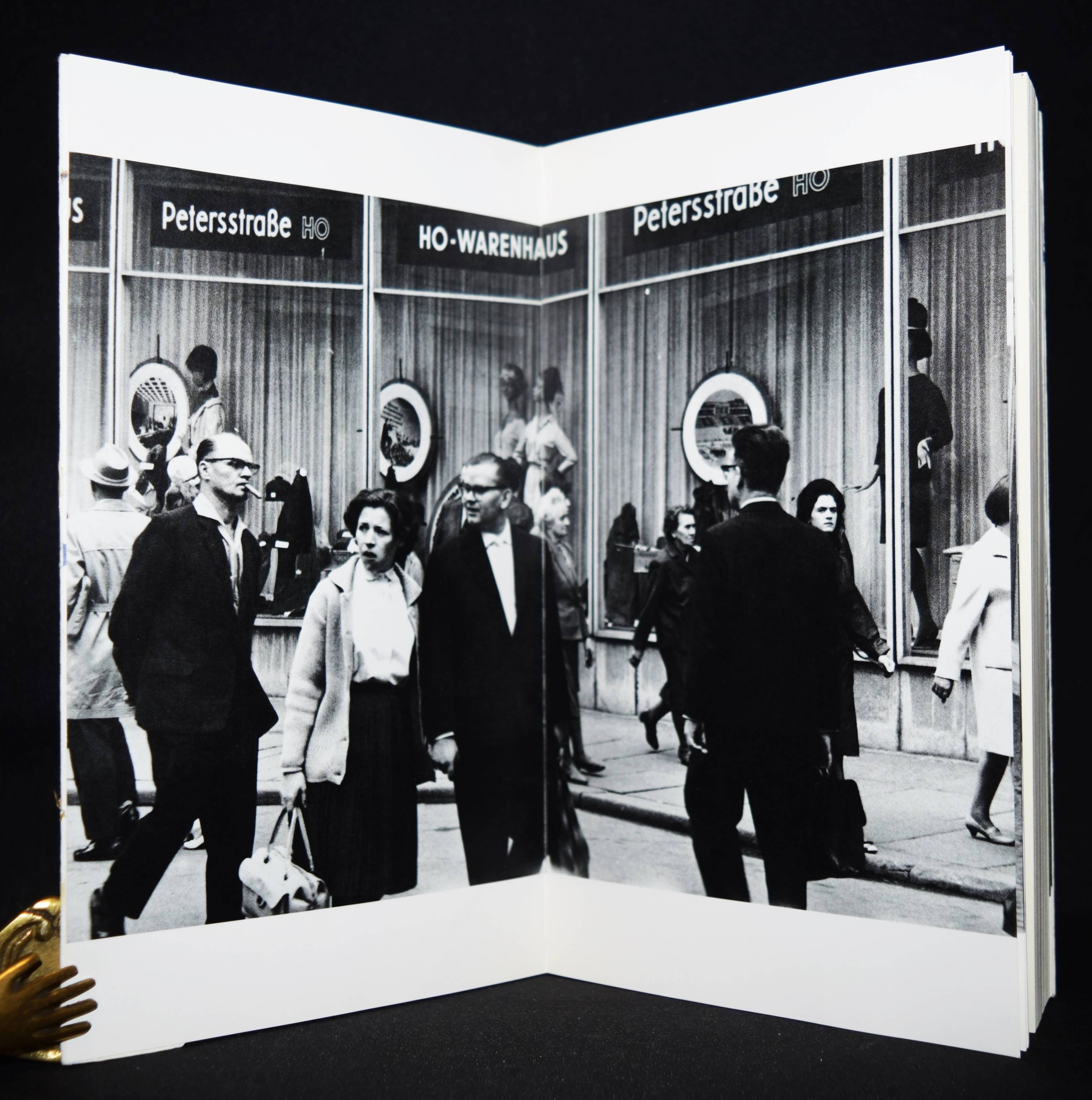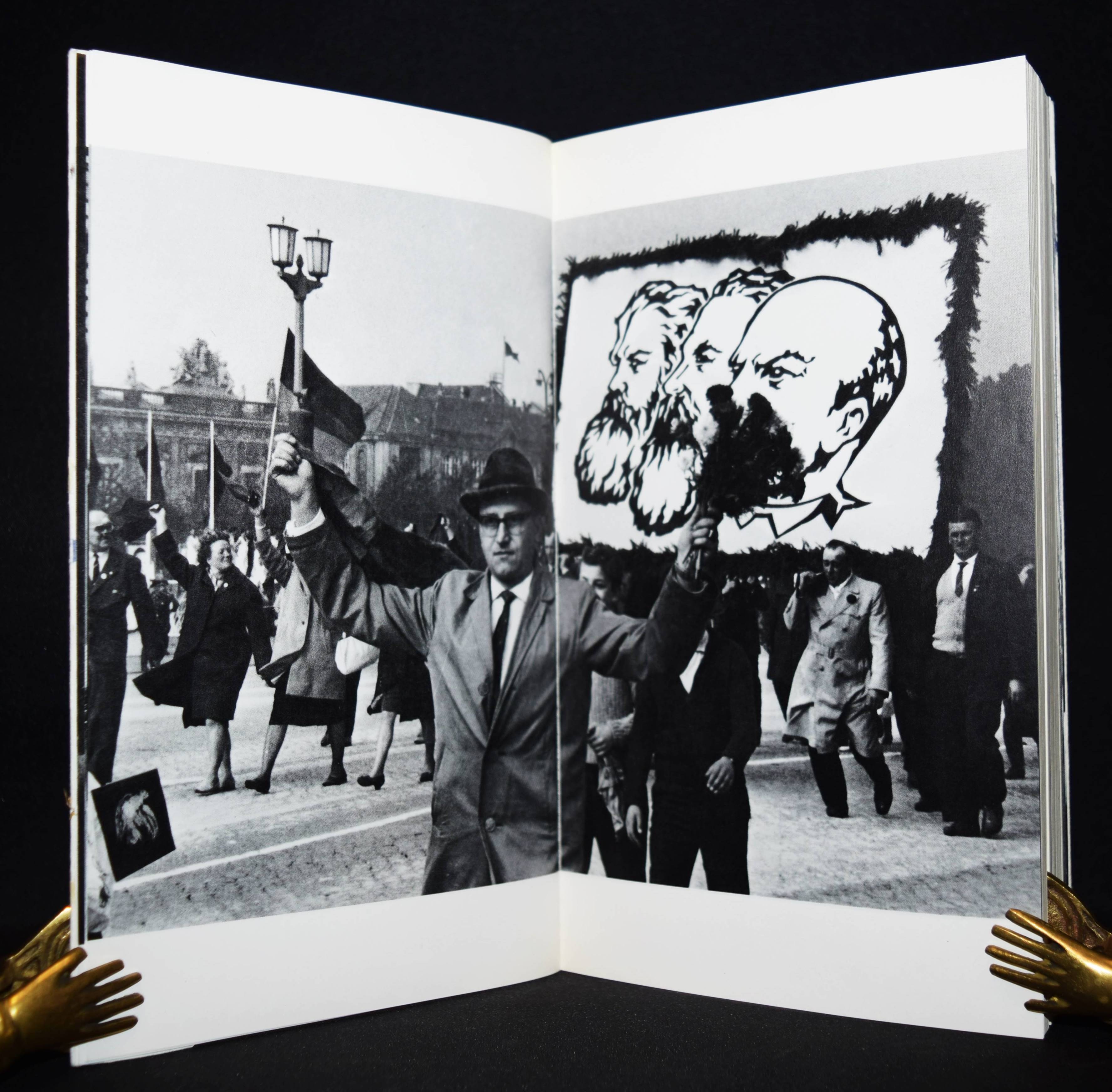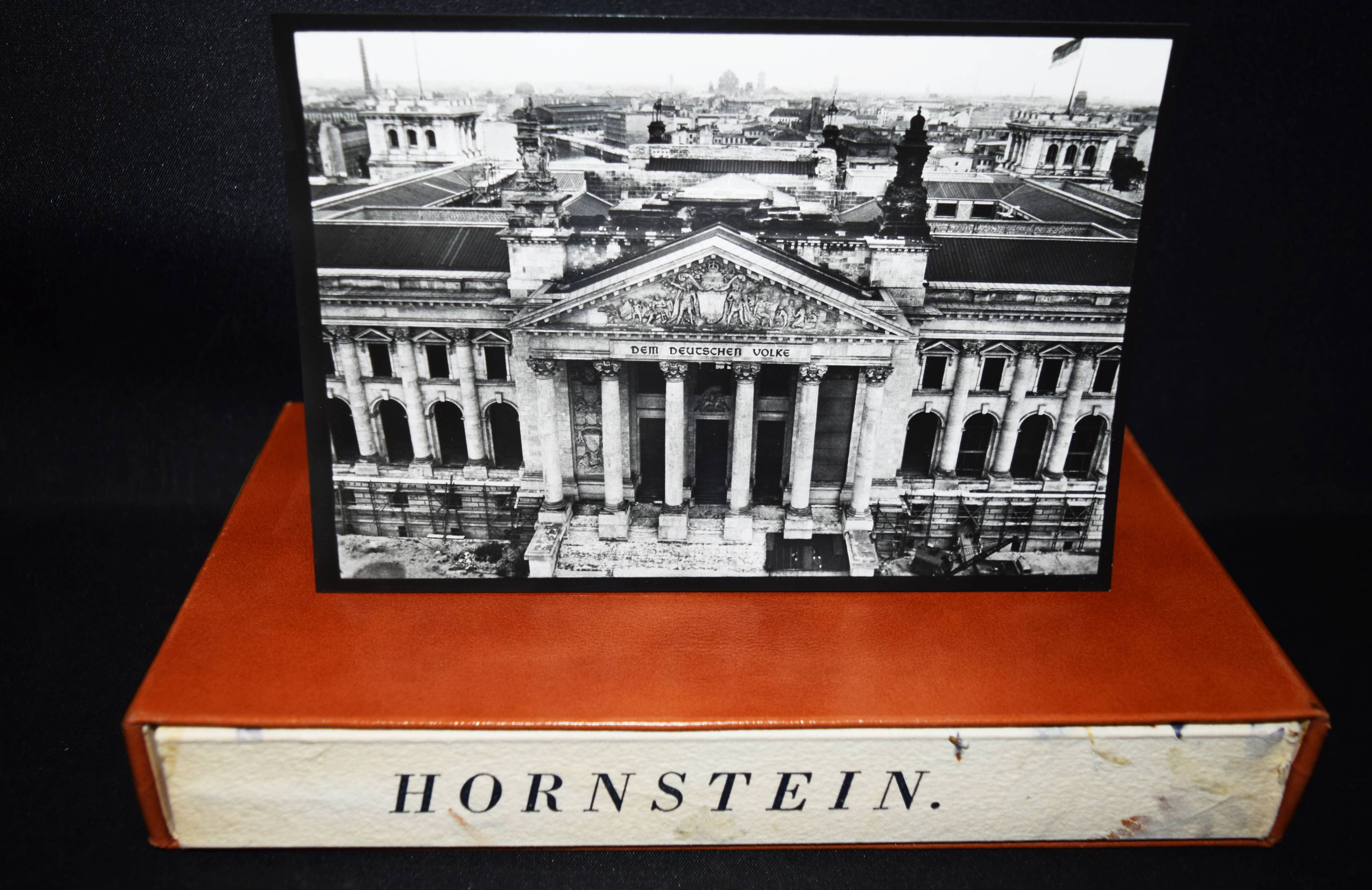 Burri – Hornstein, Erika v. Flüchtlingsgeschichten. 43 Berichte aus den frühen Jahren der DDR. Mit Photographien von René Burri. 1.-10. Tsd. Nördlingen, Greno (1985). 8°. 451, (3) S. mit 28 teils doppelblattgr. Duotone-Tafeln und 1 Orig.-Photographie (Brandenburger Tor, 1961). Orig.-Pappband mit Umschlag (Handbütten à Fleur), Pergamin-Schutzumschlag und Orig.-Lederschuber. (Die andere Bibliothek, Band 8). Eines von 999 num. Exemplaren mit der beiligenden Orig.-Photographie. – „Die Photographien von René Burri sind in den Jahren 1957 bis 1961 entstanden.“ – Sehr gutes Exemplar.