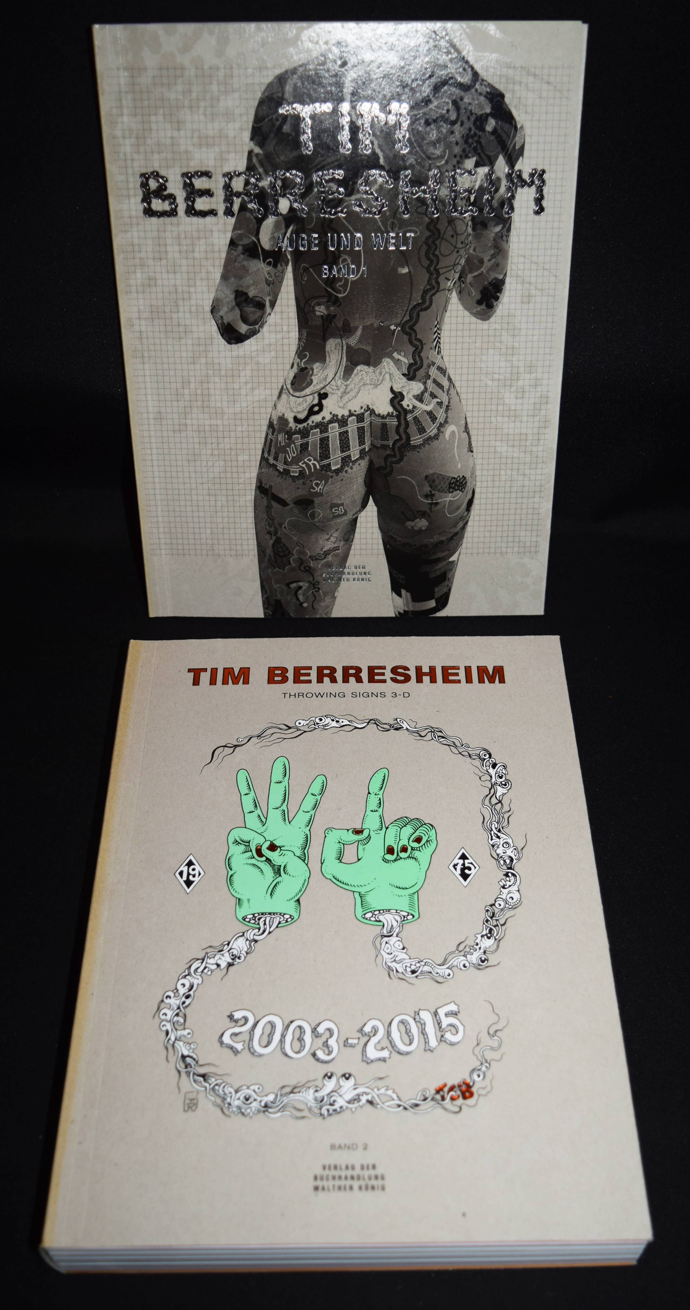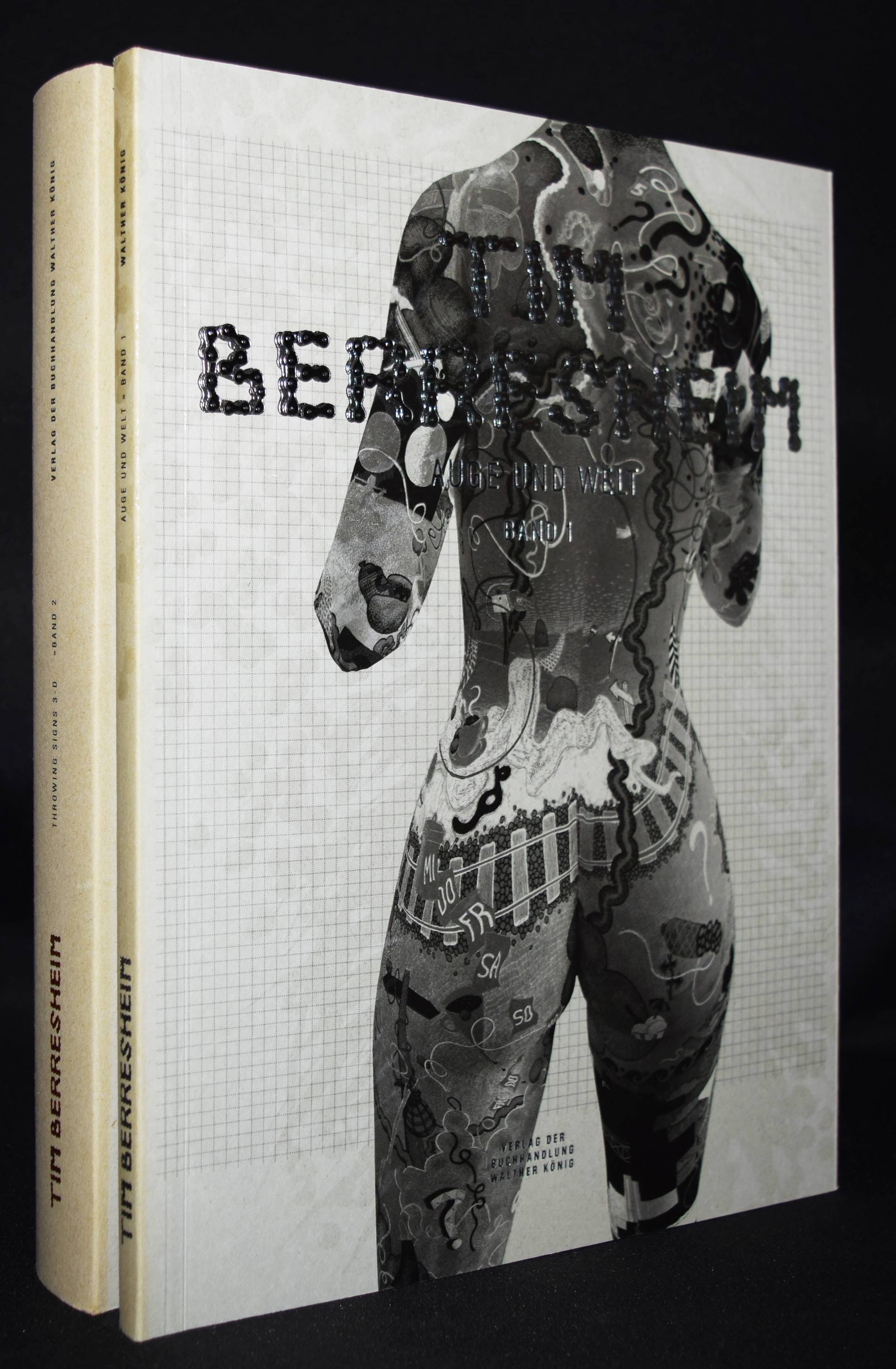Berresheim – Hafner, Hans-Jürgen (Hrsg.). Tim Berresheim. Auge und Welt. – Throwing signs 3-D. 2003-2015. 2 Bände. Köln, Verlag der Buchhandlung Walter König (2014). 4°. 92 S.; 396 S. mit zahlr. Abb. und Farbtafeln. Illustr. Orig.-Kartonumschläge in illustr. Pappschuber. (Studio New America). Erschien als Katalog zur Ausstellung im Kunstverein für die Rheinlande und Westfalen, Düsseldorf. – „In Tim Berresheims künstlerischer Arbeit nimmt der Computer weniger die Rolle eines künstlerischen Werkzeugs ein. Vielmehr sind Digitalität, Computing und Netzkultur gleichermaßen das Untersuchungs- und Operationsfeld, in dem Berresheim sein künstlerisches Projekt angesiedelt hat. Neben den exklusiv am Computer entstehenden, im durchaus traditionellen Sinne bildkünstlerischen, Arbeiten umfasst dieses außerdem eine umfangreich musikalische Produktion sowie Label- und Verlagsarbeit. Wichtig ist dabei der Aspekt der Selbstorganisation sowie die Einbeziehung gruppendynamisch-kollaborativer Prozesse, was sich nicht zuletzt im langjährigen (Mit-)Betreiben verschiedener Projekträume und den kürzlichen Gründungen von „Studios New Amerika“ und des „Institut für Betrachtung“ in Aachen und Köln widerspiegelt“ (H.-J. Hafner). – T. Berresheim (geb 1975 in Heinsberg) befasst sich in seinen Werken mit der bildenden, computerunterstützten Kunst befasst, zu deren Pionieren er seit 2002 gehört. – Sehr gutes Exemplar.