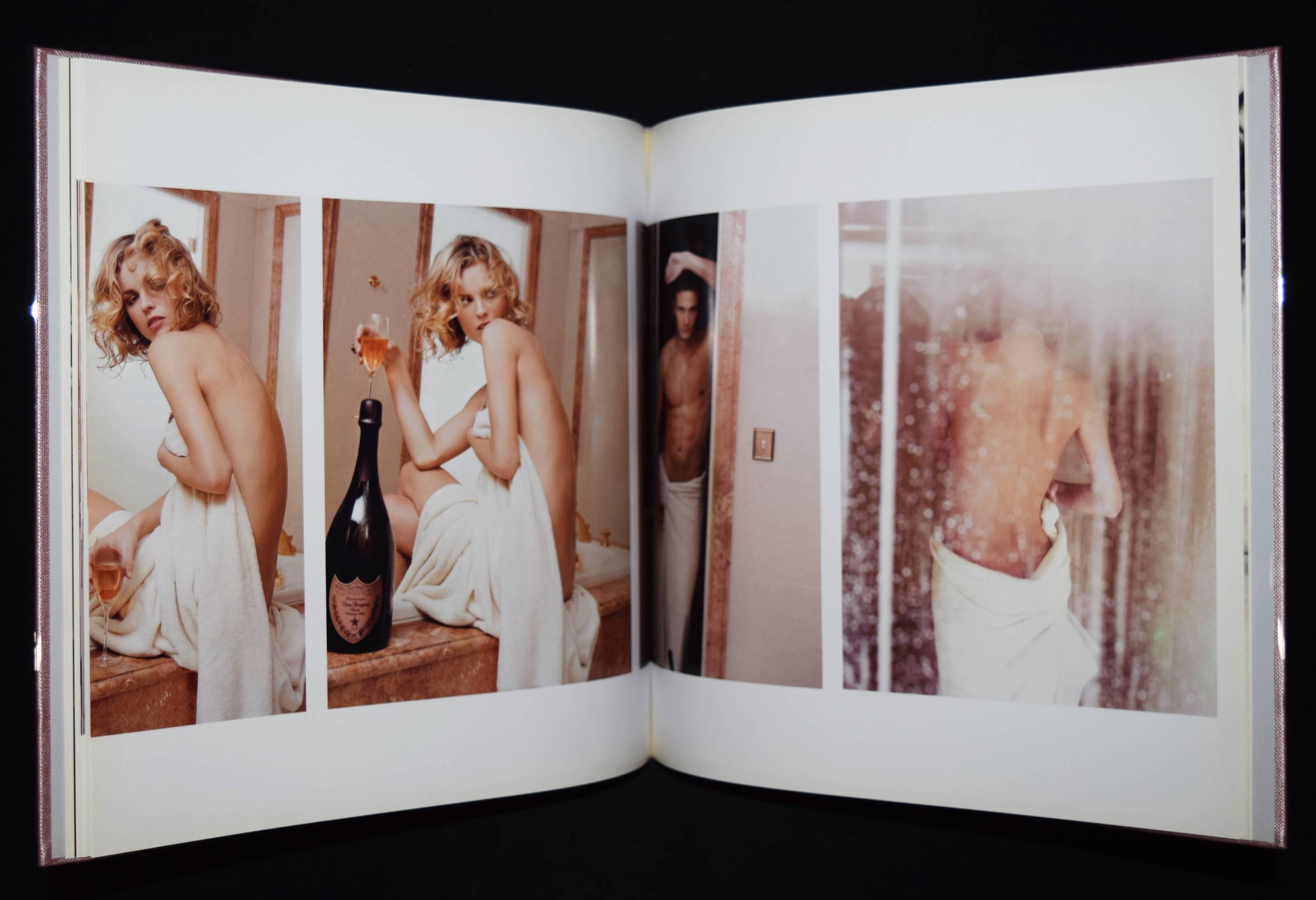 Lagerfeld, Karl. Room service. Record: Devendra Bandhart. DVD: Johan Renk. Göttingen, Steidl (2006). 4°. [29] Bl. mit teils farb. Tafeln und 1 Schallplatte sowie 1 DVD. Orig.-Leinenband. „Right from the beginning, Karl Lagerfeld conceived Room Service as a multi-track matrix: a series of photos, a short film and an unusual version of the song „Diamonds Are a Girl’s Best Friend,“ all collected in one deluxe volume. The project began when Lagerfeld was commissioned to create a campaign for Dom Perignon. The storyline he created was an ultra-contemporary fairy tale that recounted an irresistible attraction between two solitary and seductive hedonists whose paths cross at one of Paris’s finest hotels—the woman played by Eva Herzigova, and the man by Brad Kroenig. Lagerfeld shot photographs of the stranger-couple’s erotic encounter, and Johan Renck shot the film, all in the luxurious George V hotel. Says Lagerfeld, „Johan Renck is a music video genius. He liked the story and put it into action. He followed the script even more carefully than I could have done with still photos.“ For the song, Lagerfeld chose neo-folk singer/songwriter Devendra Banhart. „After Marilyn, who could have sung this song? A woman? I find Devendra’s low-high, ambiguous voice amazing and absolutely perfect. His version of ’Diamonds Are a Girl’s Best Friend’ is magnificent, unique and daring.“ This deluxe volume features tritone printing, an exclusive vinyl single of Banhart’s performance and a DVD of Renck’s film“ (Steidl). – Tadellos.