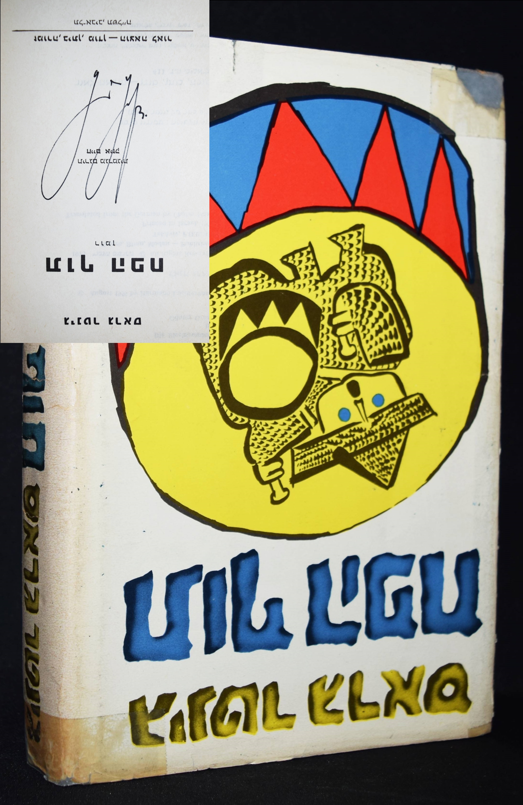 Grass, Günter. Tuf hafch (Hebräisch: Die Blechtrommel). (Translated from the German by Chaim Isaak). Tel-Aviv, Zmora, Bitan, Modan – Publishers (1975). 8°. 527 S. Orig.-Pappband mit goldgepr. Rückentitel und farbig illustr. Schutzumschlag. KLL I, 1685. – Erste hebräische Ausgabe. – Von G. Grass auf dem Titelblatt signiert. – Grass erhält den seit 1955 nicht mehr vergebenen Preis der „Gruppe 47“ als siebenter Preisträger und 1999 den Nobelpreis für Literatur, weil er – so die Begründung der Jury – „in munterschwarzen Fabeln das vergessene Gesicht der Geschichte gezeichnet hat“. – Die „Blechtrommel“ wird zum größten literarischen Erfolg der deutschen Nachkriegsliteratur. – „Günter Grass brachte das hervor, was kein Deutscher seit Thomas Mann hervorgebracht hatte: Aufregung in der internationalen literarischen Welt. Grass erbeitet mit einem Ausmaß an theatralischer Erfindungsgabe, das von Goethe … bis zu Ionesco reicht. Die Blechtrommel ist ein überwältigend ungleichmäßiges Prachtexemplar von einem Roman…“ (New York Times Book Review). – Schutzumschlag mit geklebten Randläsuren und kleinen Fehlstellen, sonst gut erhalten. – First hebrew edition, signed by G. Grass.