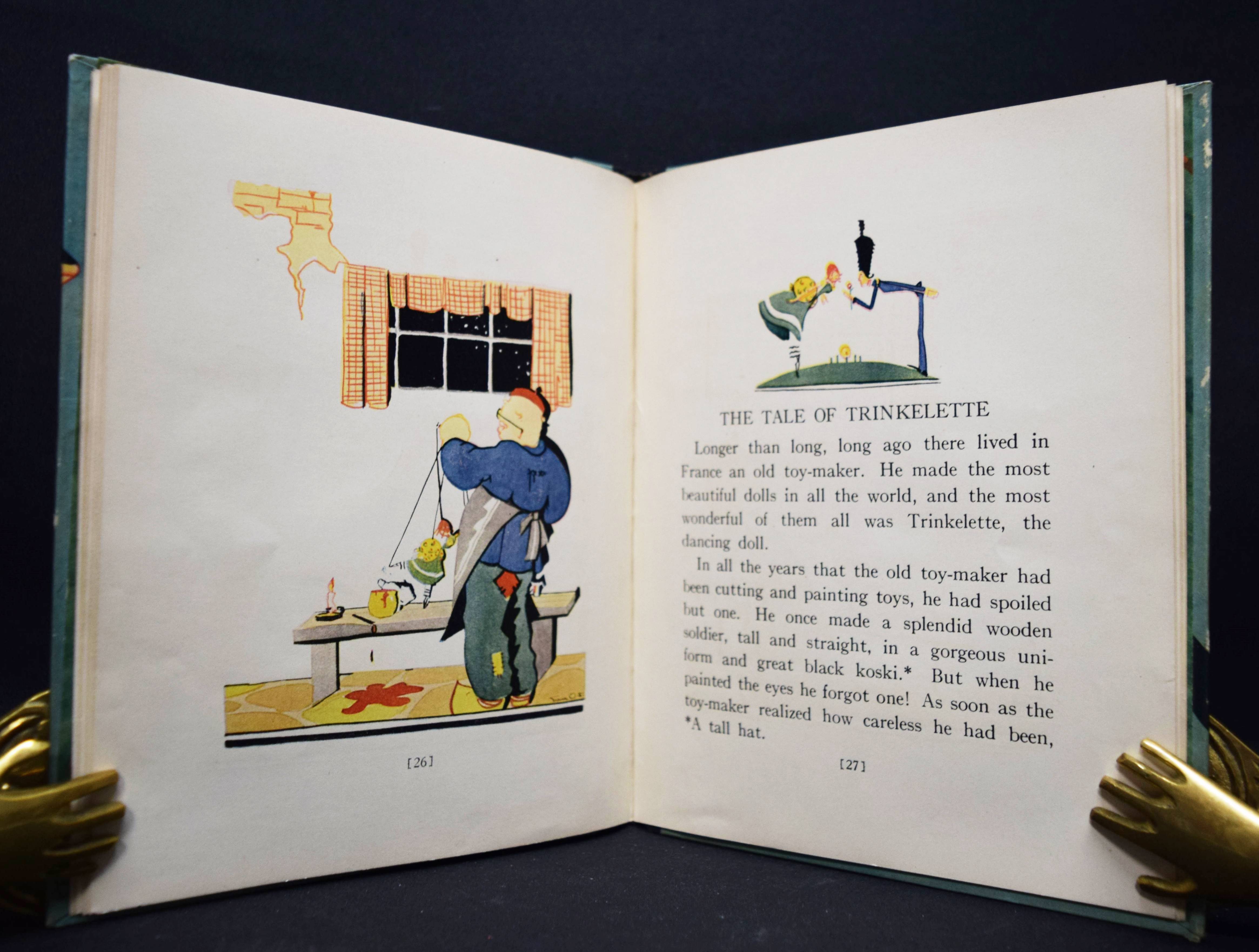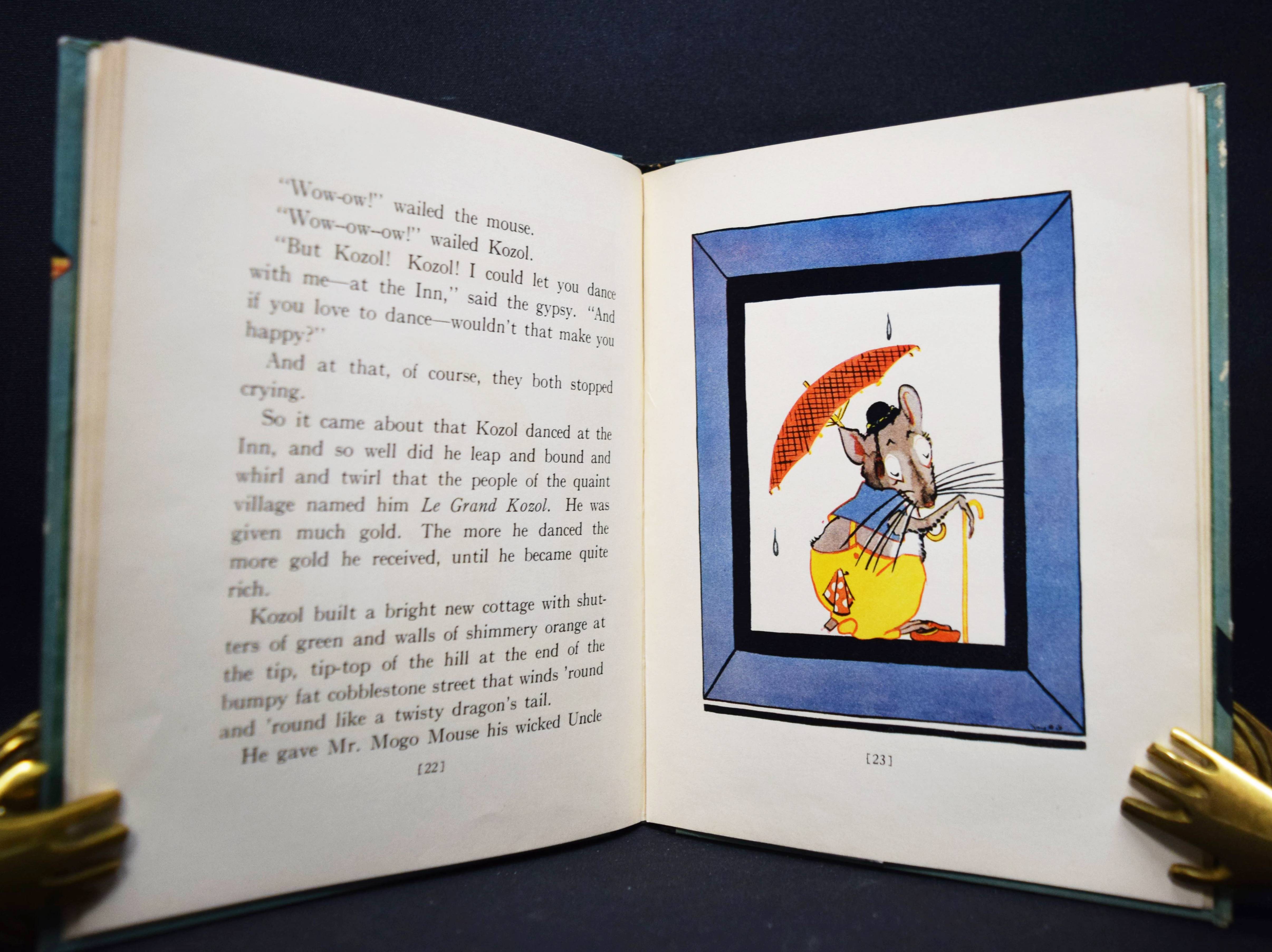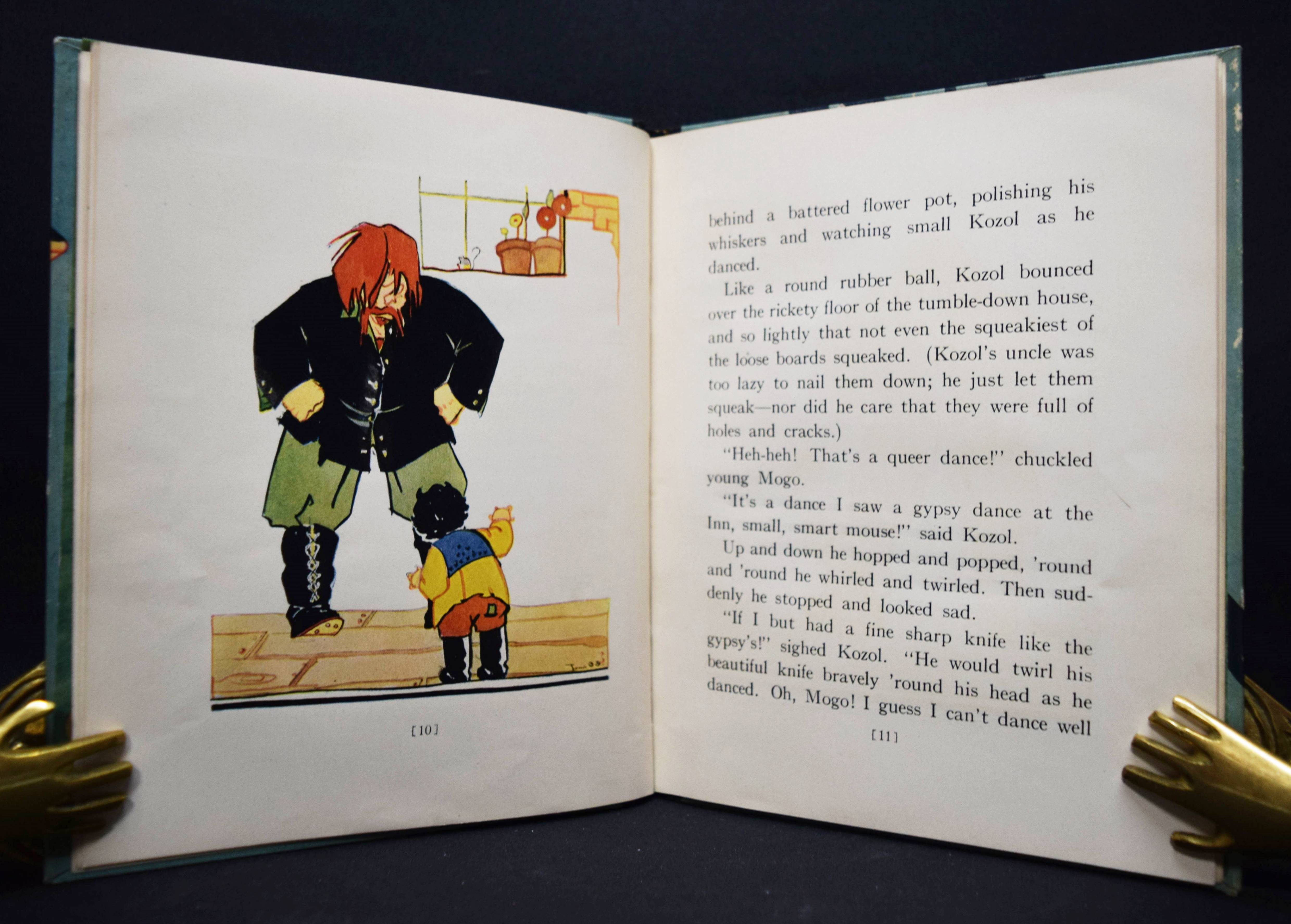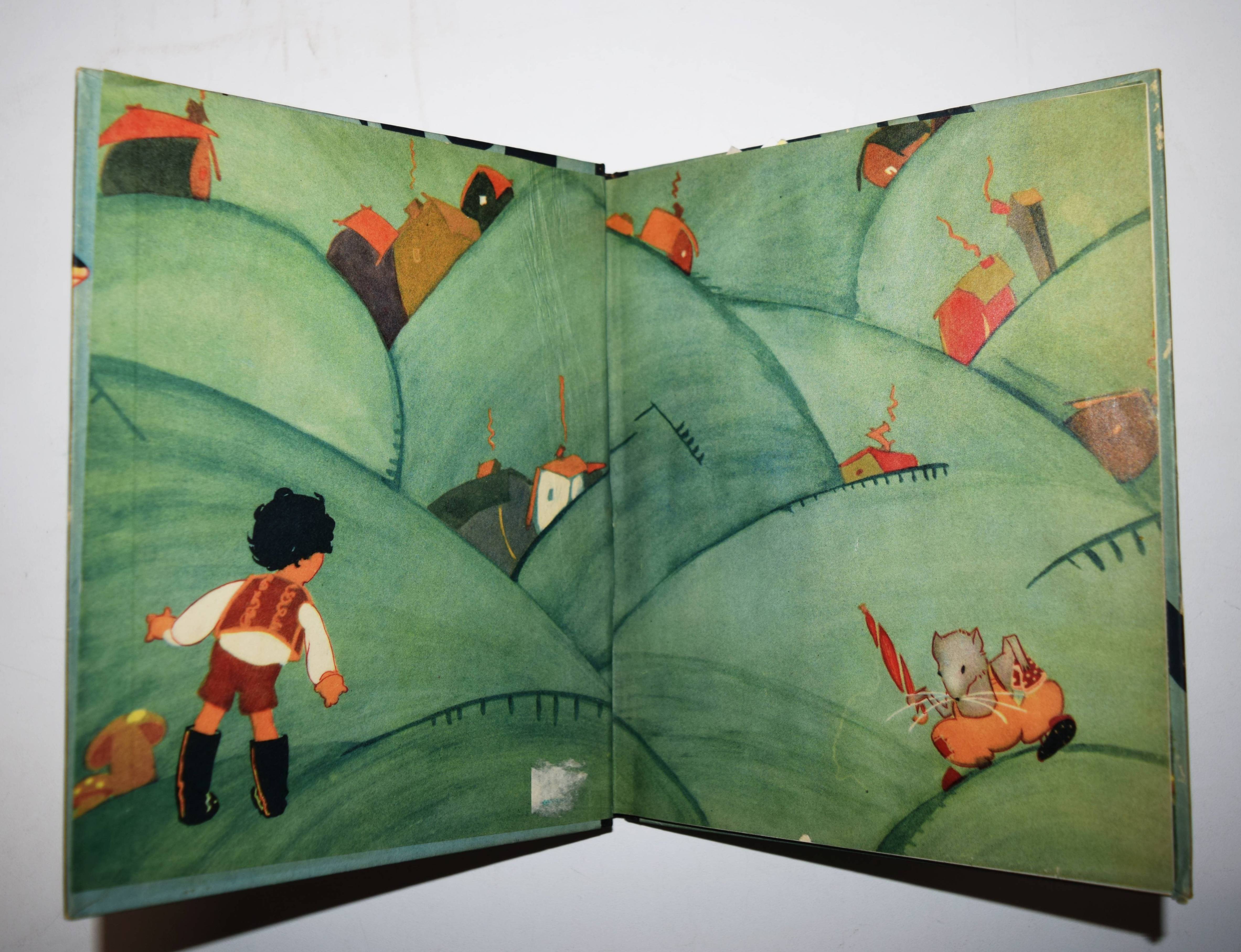 Ort, Jane Mr. Mogo Mouse (and The Tale of Trinkelette). New York, Chicago, Boston, The Volland Company, Joliet (1930). 8° (19 x 15 cm.). 39, (1) S. mit farbigen Illustrationen von Johnny (Barton) Gruelle. Farbig illustr. Orig.-Halbleinenband in farbig illustr. Pappkassette. (Volland Sunny Book Series). Erste Ausgabe. – Seltenes amerikanisches Kinderbuch. Mit hervorragenden Art Déco Illustrationen von John Barton Gruelle (1880-1938). Gruelle wurde durch seine 1915 kreierte Bilderbuch-Serie „Raggedy Ann“ bekannt, der erste Band der Raggedy Ann Stories erschien 1918 bei The Volland Company. – Der Kinderbuch-Verlag „The Volland Company“ wurde 1908 von Paul Volland, Sohn deutscher Einwanderer, gegründet. Seit 1912 veröffentlichte Volland schön ausgestattete Kinderbücher in dekorativen Kassetten und publizierte seit 1928 auch Grußkarten. Der Verlag existierte bis 1958. – Vorderdeckel mit kl. Abriebstelle, sehr gutes Exemplar mit der oft fehlenden Schmuck-Kassette.