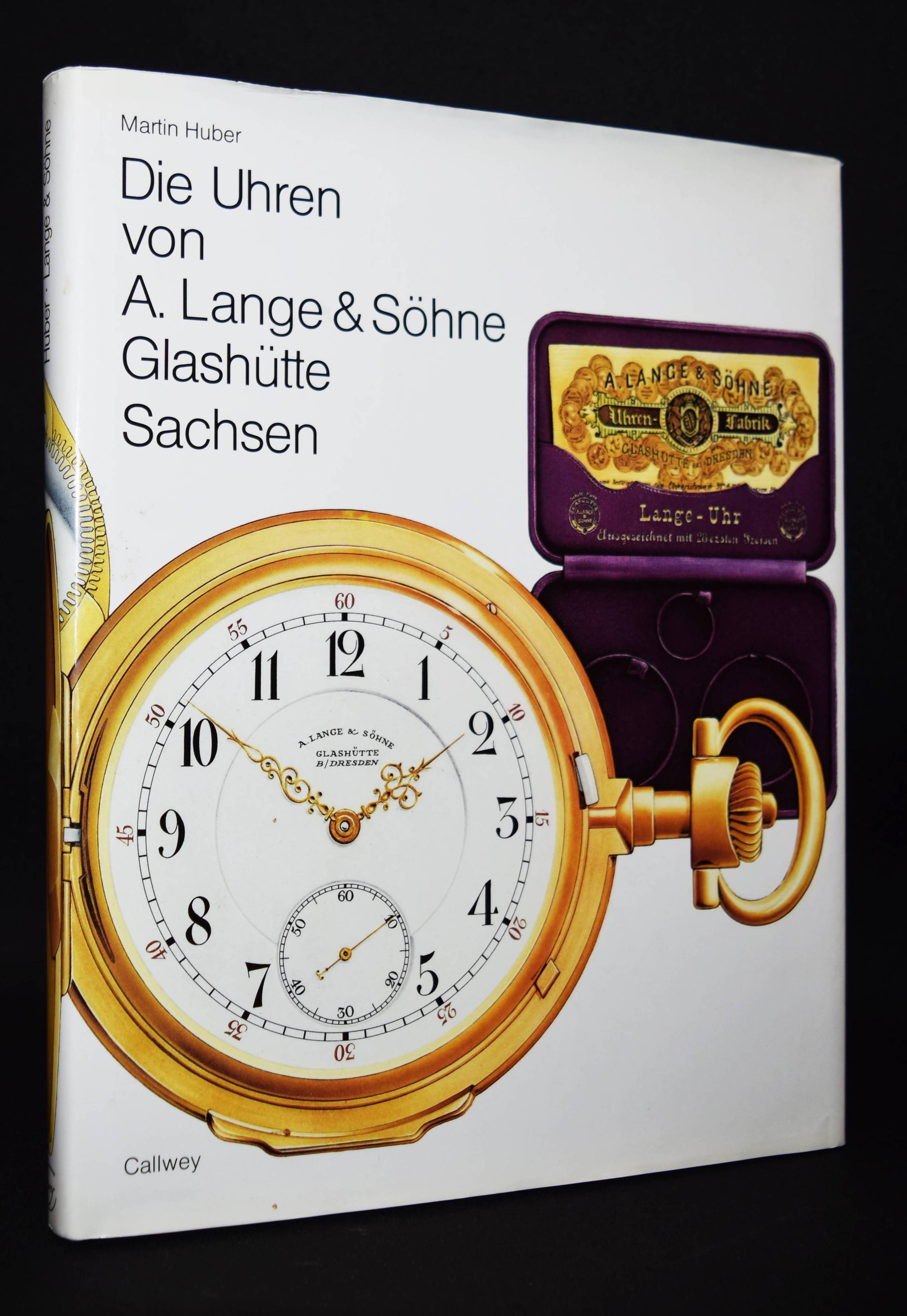 Huber, Martin. Die Uhren von A. Lange & Söhne, Glashütte, Sachsen. [Jubiläumsbuch anläßlich der Gedenkausstellung im Oktober 1976 zu Ehren des Gründers Ferdinand Adolf Lange, dessen Todestag sich am 3.12.1975 zum 100. Male jährte]. 5., komplett überarb. u. erw. Aufl. München, Callwey 1988. 4°. 183, 14, [6] S. mit zahlr. teils farb. Abb. Orig.-Pappband mit farbig illustr. Schutzumschlag. Sehr gutes Exemplar.