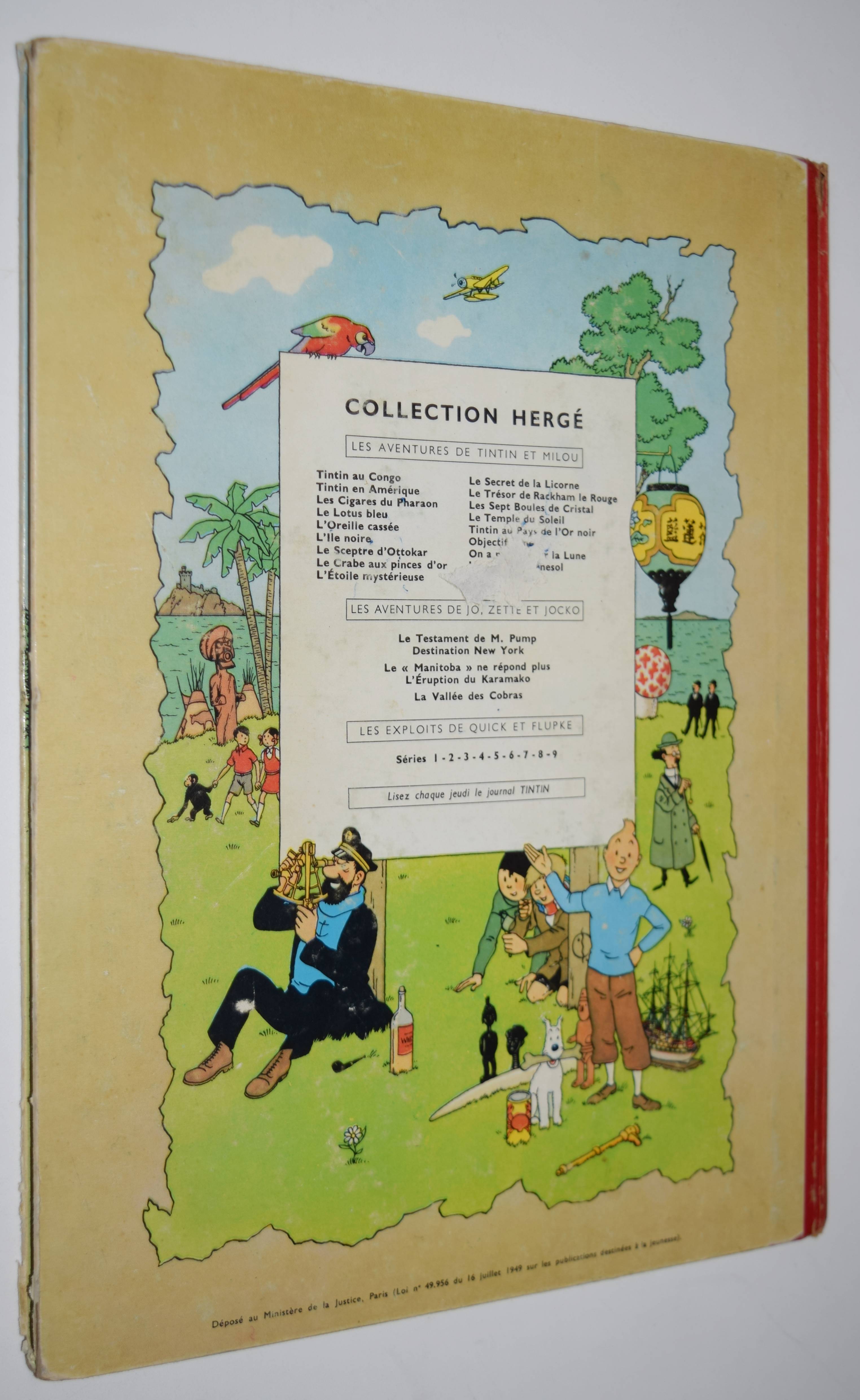 Hergé (d.i. Remi, Georges). Tintin en Amérique. Paris, Casterman (1949). 4°. Titel, 62 S. mit farb. Illustrationen. Farbig illustr. Orig.-Pappband. (Les aventures de Tintin, volume 2). Erschien zuerst im Juli 1946. – Einband etwas berieben, gutes Exemplar.