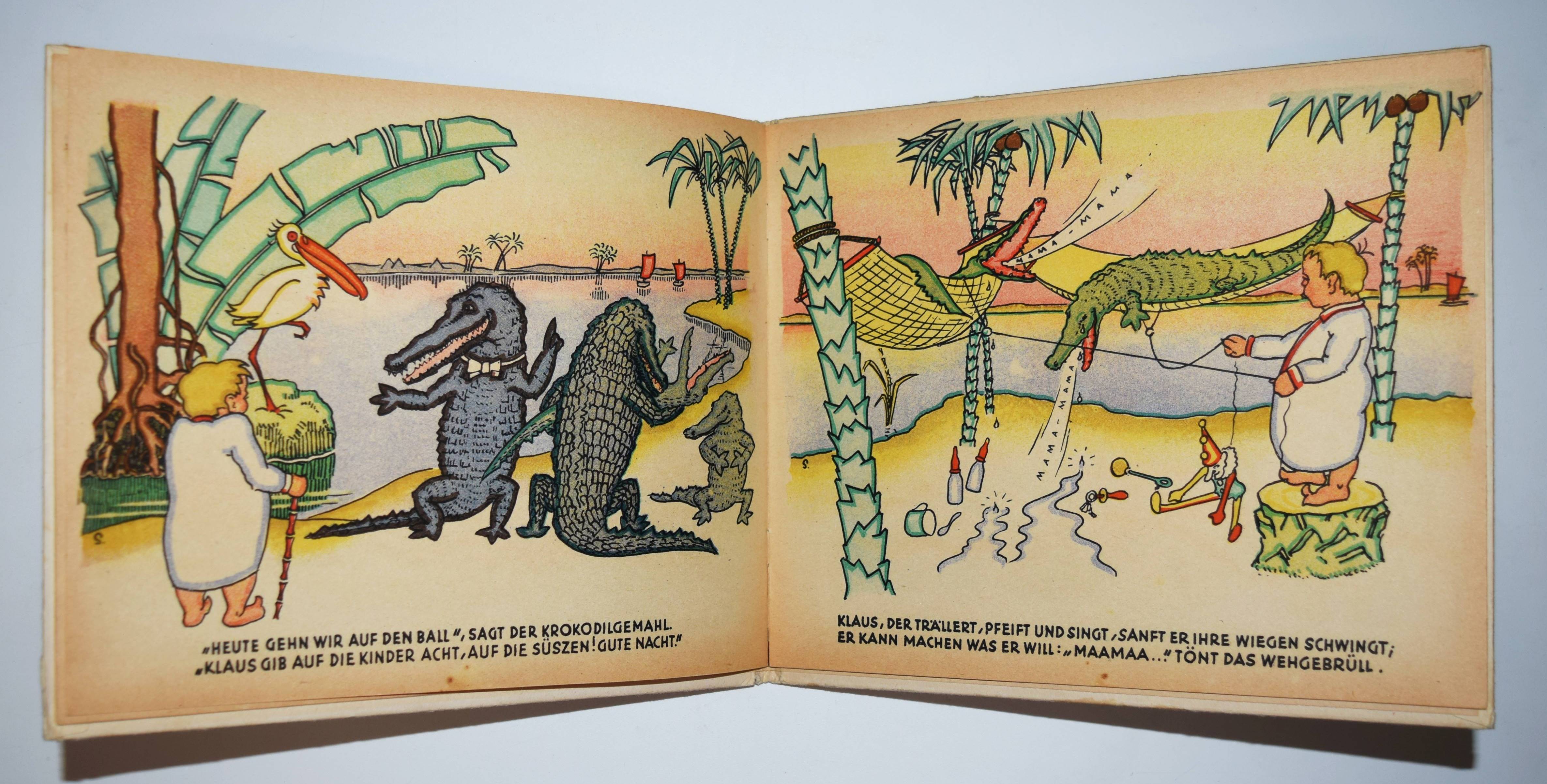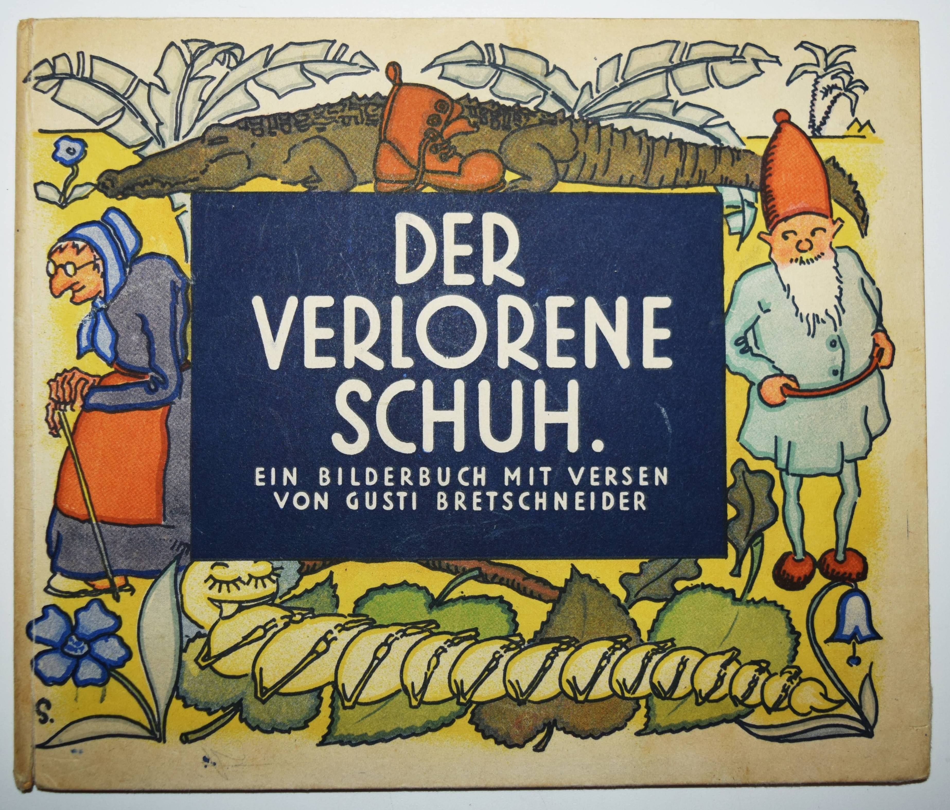Bretschneider, Gusti (Auguste Juliane). Der verlorene Schuh. Ein Bilderbuch mit Versen. Wien, Gerlach & Wiedling o. J. (1946). Quer-Gr.-8°. [16] Bl. mit farblithogr. Illustrationen. Farbig illustr. Orig.-Pappband. Korotin, biografiA. Lexikon österreichischer Frauen I, 420. – Erste Ausgabe des ersten Bilderbuchs der Wiener Kinderbuch-Autorin und -Künstlerin A. J. Bretschneider (1908-2001). – Bretschneider arbeitete bei einigen Kinderbüchern mit der Illustratorin Margit Doppler (1909-2001) zusammen. – Rückendeckel etwas fleckig, die ersten vier Bilder auf dem vorderen Innendeckel von Kinderhand ankoloriert, sehr gutes Exemplar.