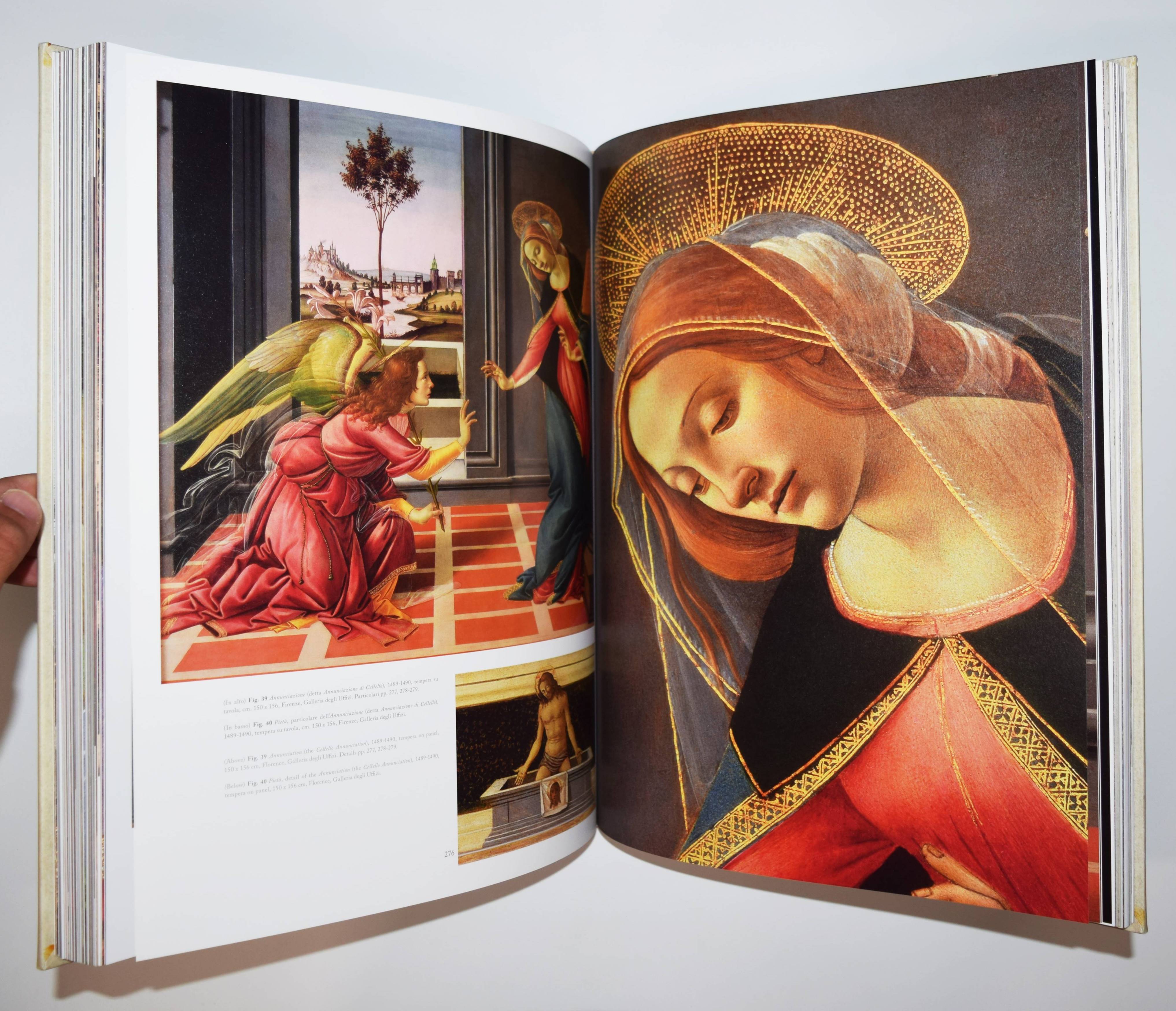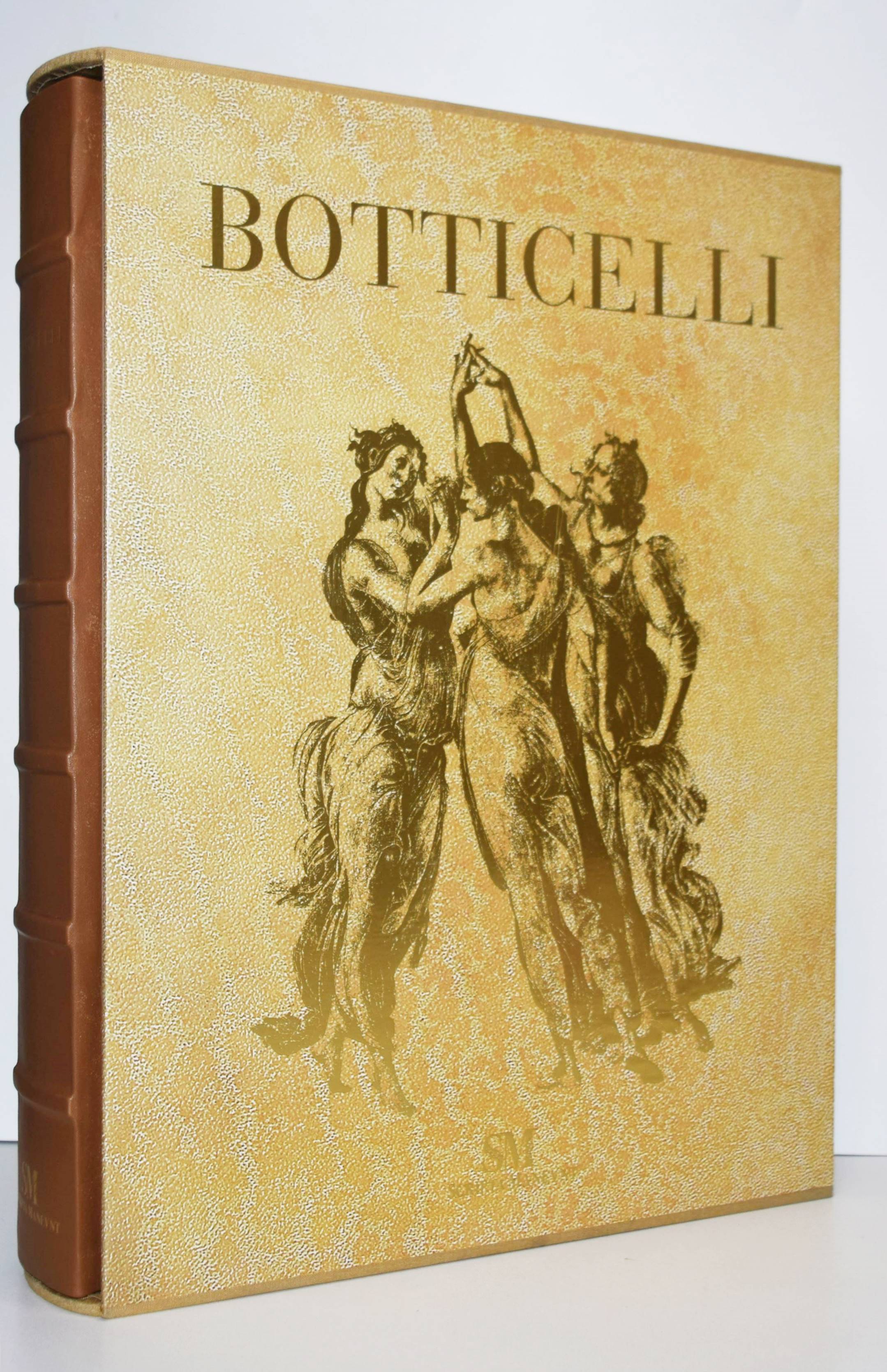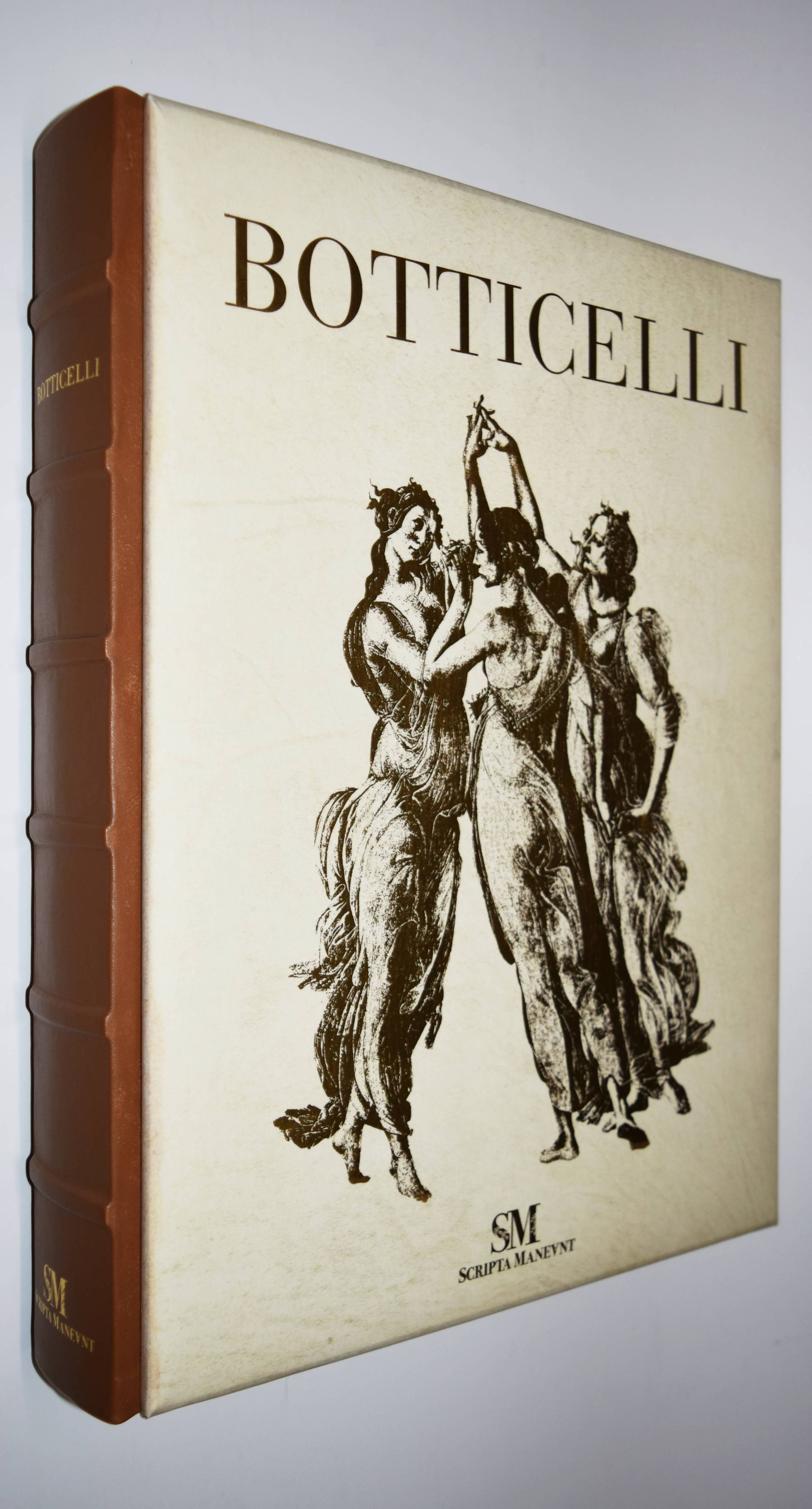 Botticelli – Benevolo, Giancarlo. Botticelli Magnifico. (Traduzione in lingua inglese / English translation by Sarah Elizabeth Cree). Bologna, SM Scripta Maneant (2020). Folio (41,5 x 31,5 cm.). 403, (2) S. mit 260 teils doppelblattgr. farb. Abbildungen. Orig.-Halblederband mit Pergamentdeckeln, goldgepr. Rücken- und Deckeltitel und Deckelillustration in illustr. Halbleinenschuber. Eines von 1999 num. Exemplaren. – Text in Italienisch und Englisch. – Opulent ausgestattete Monographie über den bedeutendsten italienischen Maler und Zeichner der frühen Renaissance Sandro Botticelli (1445-1510). – Den engen Zusammenhang mit dem humanistischen Gedankengut der Zeit und die schöpferische Phantasie des Künstlers zeigen seine reiferen Meisterwerke nach 1475, insbesondere seine allegorischen Darstellungen Der Frühling, auf dem das Erwachen der Natur durch blumenbekränzte Mädchen in einer paradiesischen Landschaft verkörpert wird, und Die Geburt der Venus, auf dem die aus dem Meeresschaum geborene Liebesgöttin in einer Muschel zur Küste treibt. Letztere stellte den ersten fast lebensgroß gemalten Frauenakt seit der Antike dar. Nur im privaten Rahmen, so Elke Linda Buchholz, sei solch ein erotisch unverblümtes, mythologisch aufgeladenes Bildprogramm möglich und mit seinem literarisch inspirierten Antikebezug auch nur einem elitären Kreis von Kennern vermittelbar gewesen. … Zwischen 1481 und 1482 wurde Botticelli von Papst Sixtus IV. nach Rom berufen. In einem Team u. a. mit Perugino, Ghirlandaio und Signorelli stattete er die neu errichtete Sixtinische Kapelle mit großen Wandgemälden, welche Ereignisse aus dem Leben Jesu und des Moses darstellen, und mit Porträts früherer Päpste aus“ (Wikipedia). – Neuwertiges Exemplar.