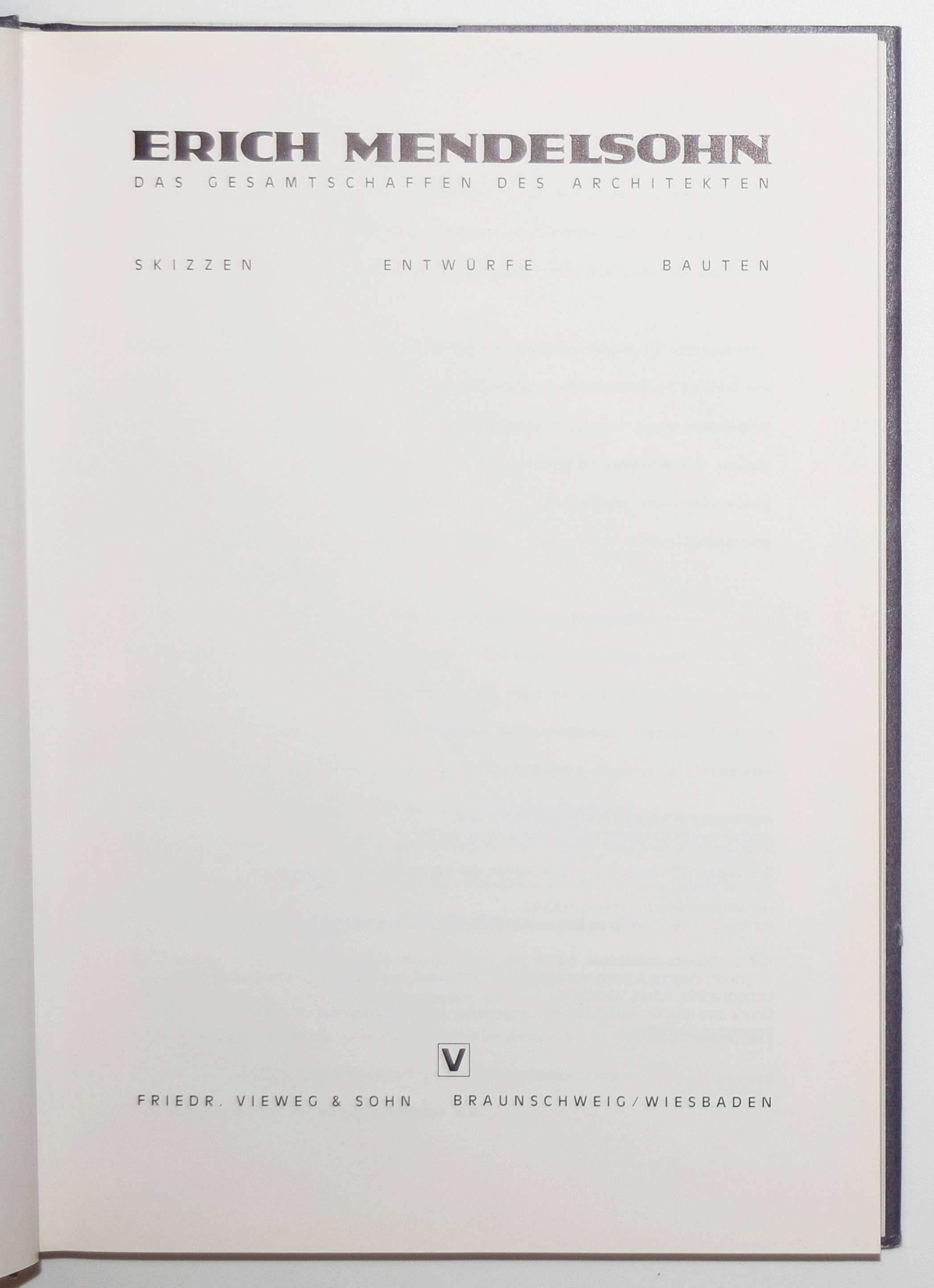 Mendelsohn, Erich. Erich Mendelsohn. Das Gesamtschaffen des Architekten, Skizzen, Entwürfe, Bauten. (Reprint der Erstausgabe aus dem Jahre 1930, erschienen beim Rudolf Mosse Buchverlag, Berlin). Braunschweig, Wiesbaden, Friedr. Vieweg & Sohn (1988). Gr.-8°. 251, (1) S., [2] Bl. mit zahlr. Abbildungen und Grundrissen. Orig.-Pappband mit Schutzumschlag. (Schriften des Deutschen Architekturmuseums zur Architekturgeschichte und Architekturtheorie). Sehr gutes Exemplar.