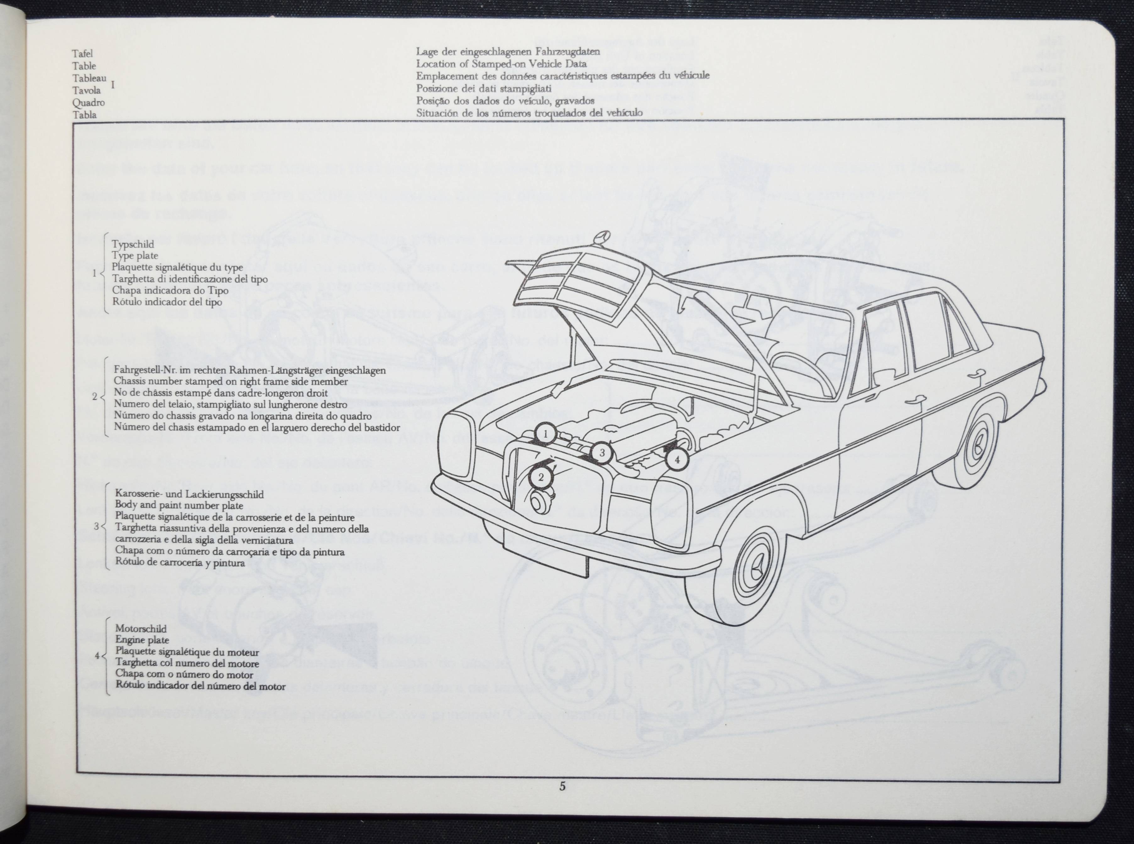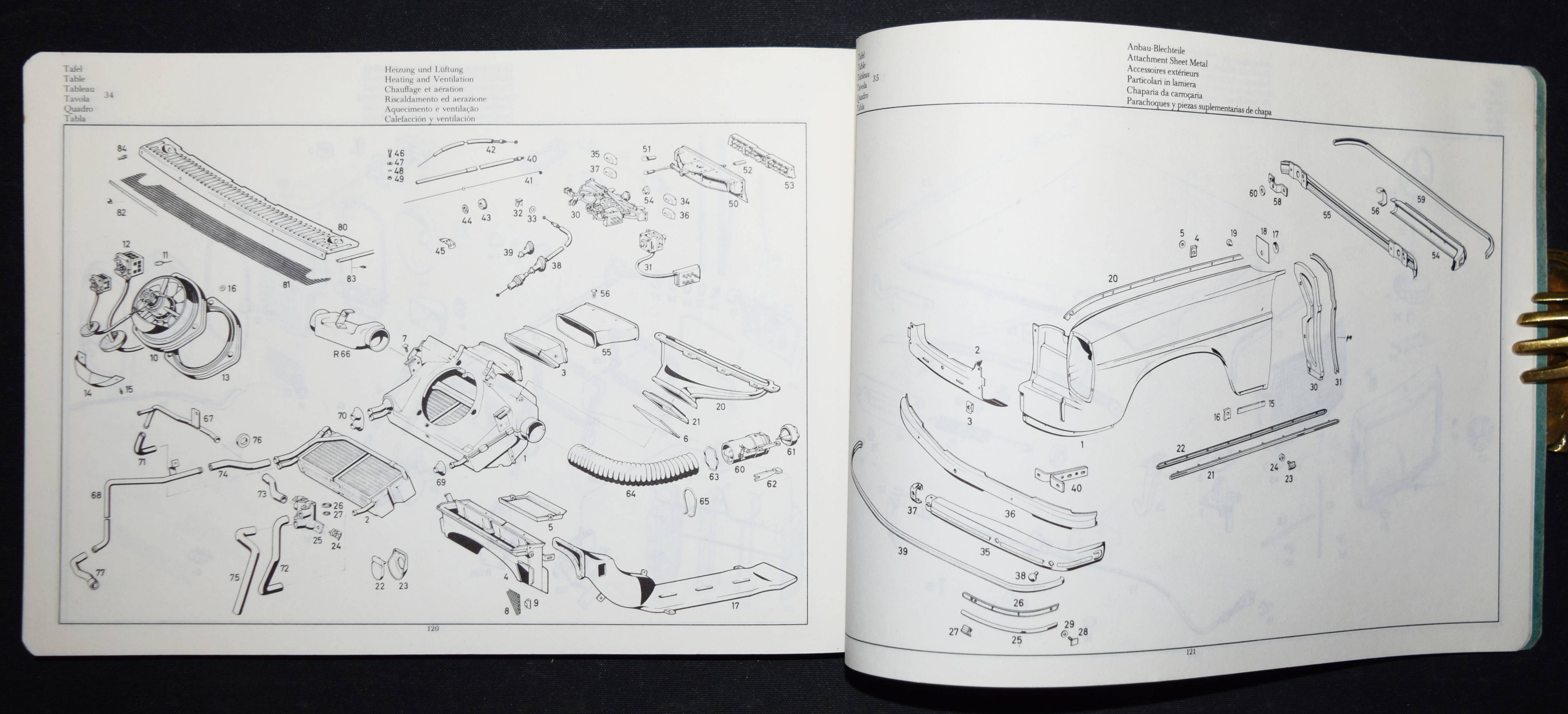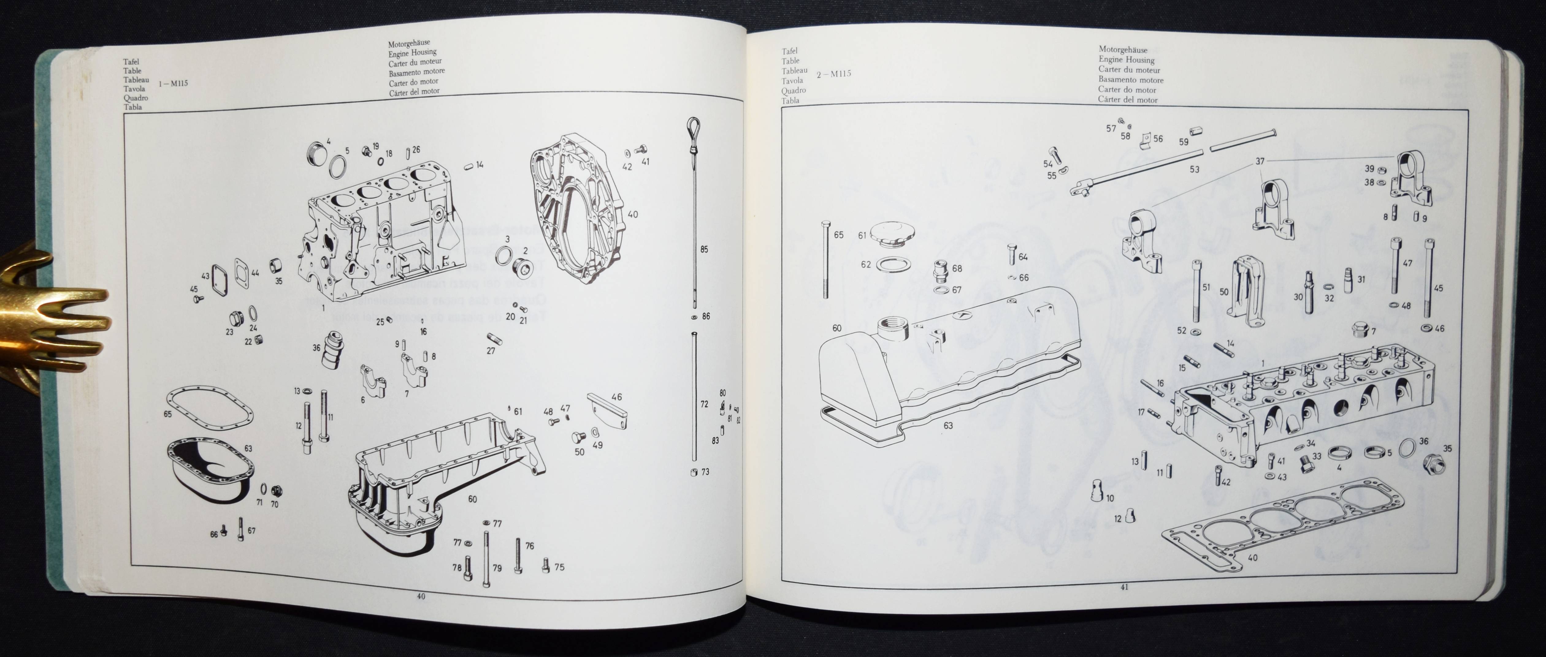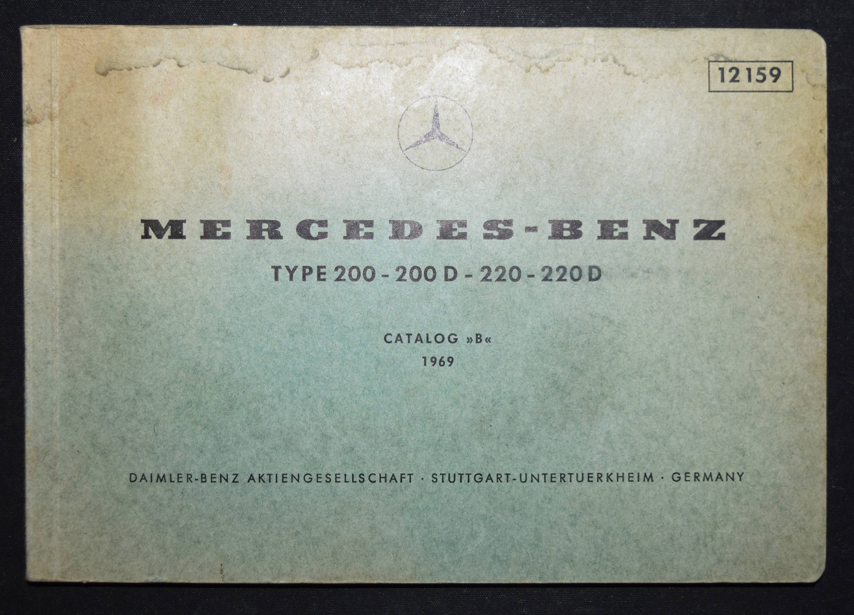 Mercedes-Benz Type 200 – 200 D – 220 – 220 D. Catalog „B“ 1969. (Werkstatt-Handbuch). Stuttgart-Untertürkheim, Daimler-Benz AG 1969. Quer-8° (14,5 x 21 cm.). 125 S. mit zahlr. Abbildungen. Orig.-Kartonumschlag. (Verlags-Nr. 12159). Orig.-Werkstatt-Handbuch mit Illustrationen aller Ersatzteile für den Mercedes-Benz W 114/115. – Die PKW-Baureihe Mercedes-Benz /8 wurde von 1968 bis 1976 gebaut. – Texte in Deutsch, Englisch, Französisch, Italienisch, Spanisch und Portugiesisch. – Umschlag im oberen Rand etwas wasserfleckig und stellenweise aufgehellt, sonst gut erhalten.