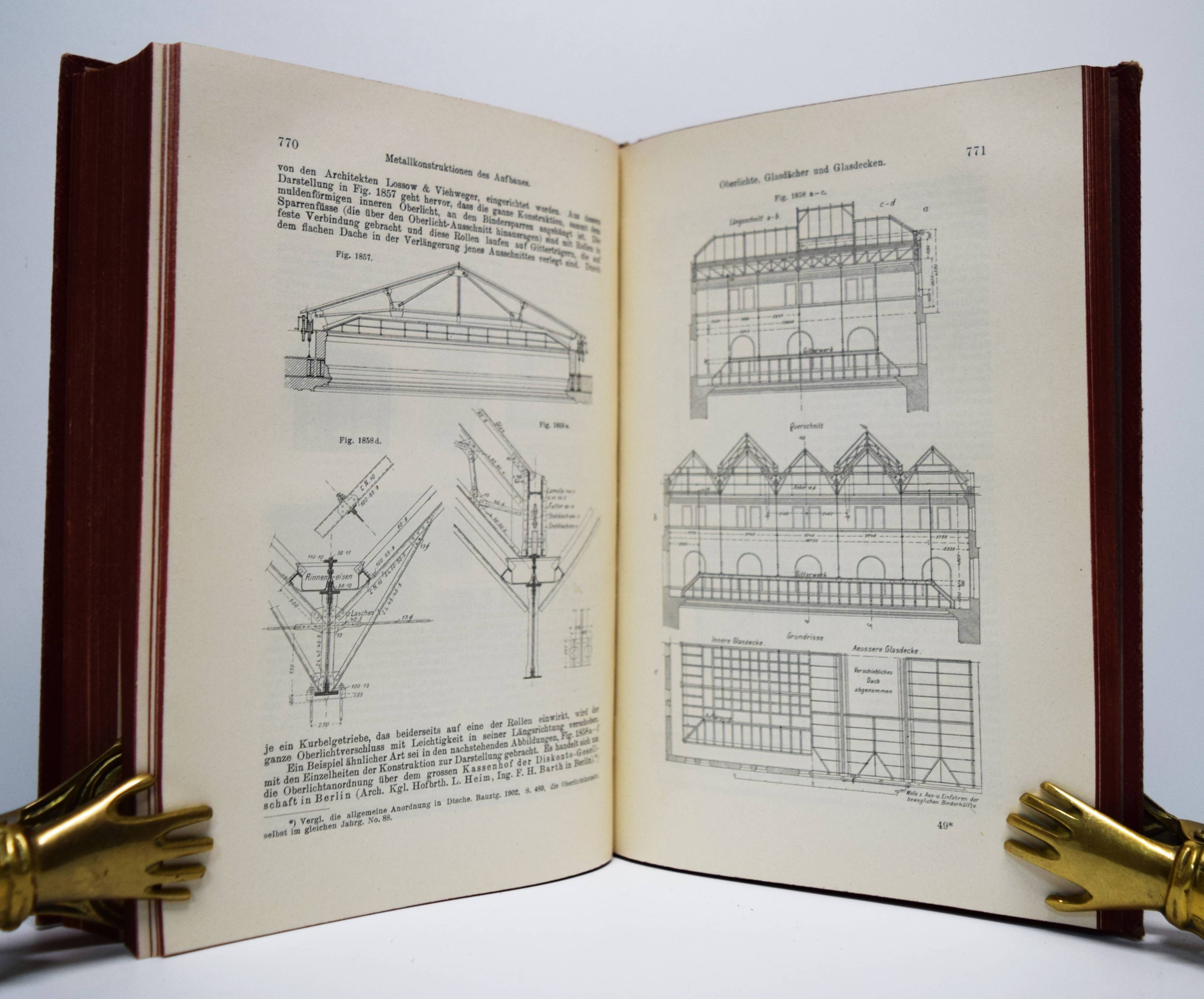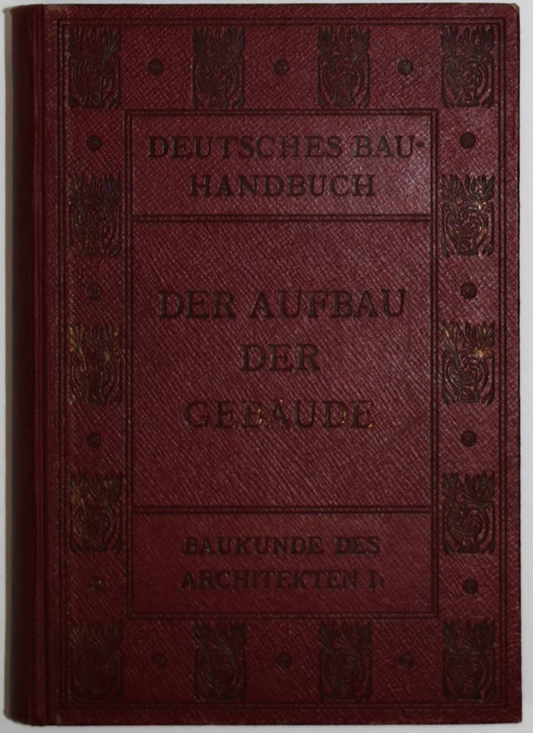 (Wagner, Friedrich). Baukunde des Architekten. Erster Band, erster Theil. Der Aufbau der Gebäude. 5., wesentlich umgearb. u. verm. Aufl. Berlin, Verlag Deutsche Bauzeitung 1903. Gr.-8°. XVI, 884 S. mit 1900 Abbildungen im Text. Orig.-Leinenband mit goldgepr. Rücken- und Deckeltitel. (Deutsches Bauhandbuch). Einband etwas berieben, Rücken aufgehellt, gutes Exemplar.