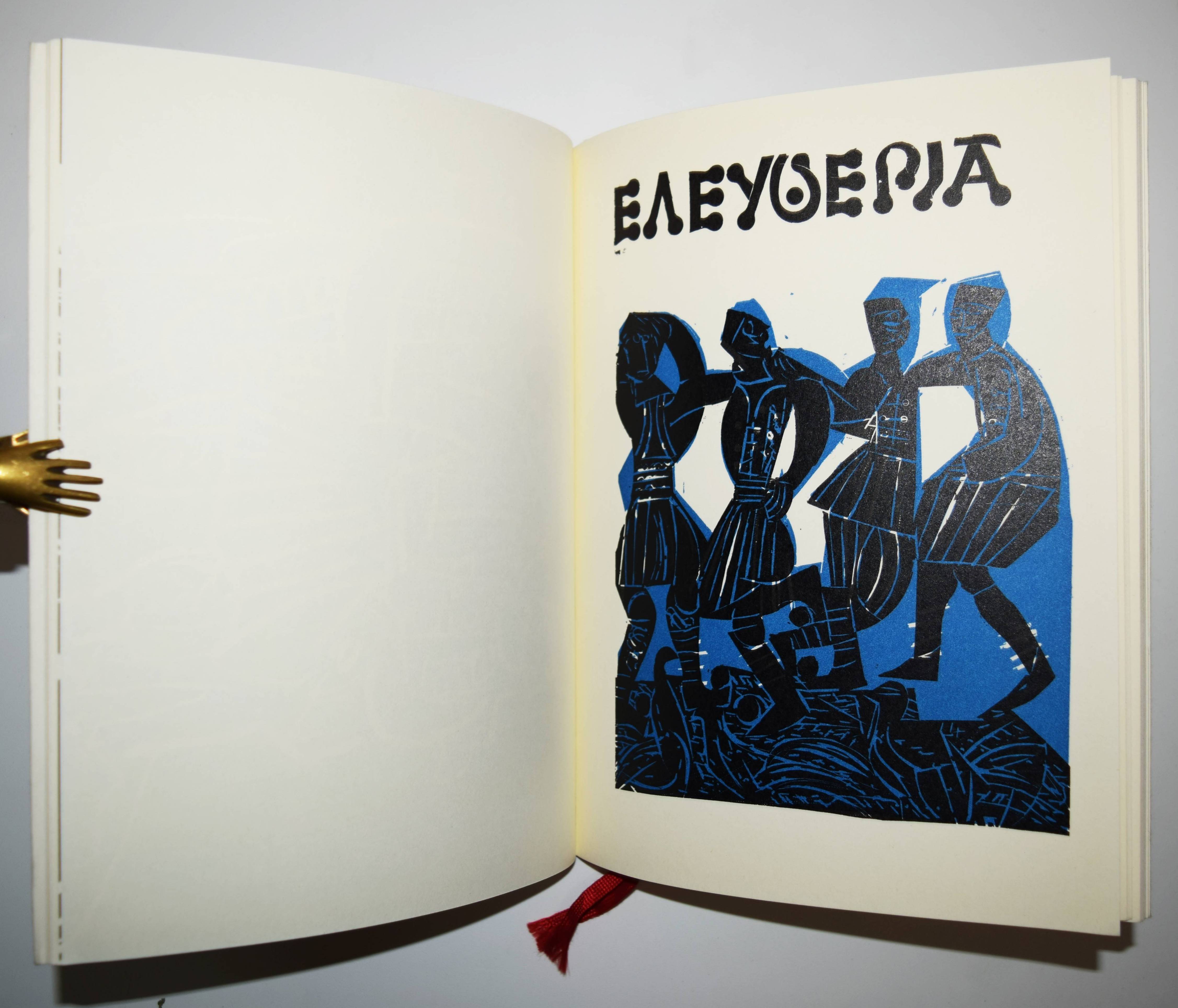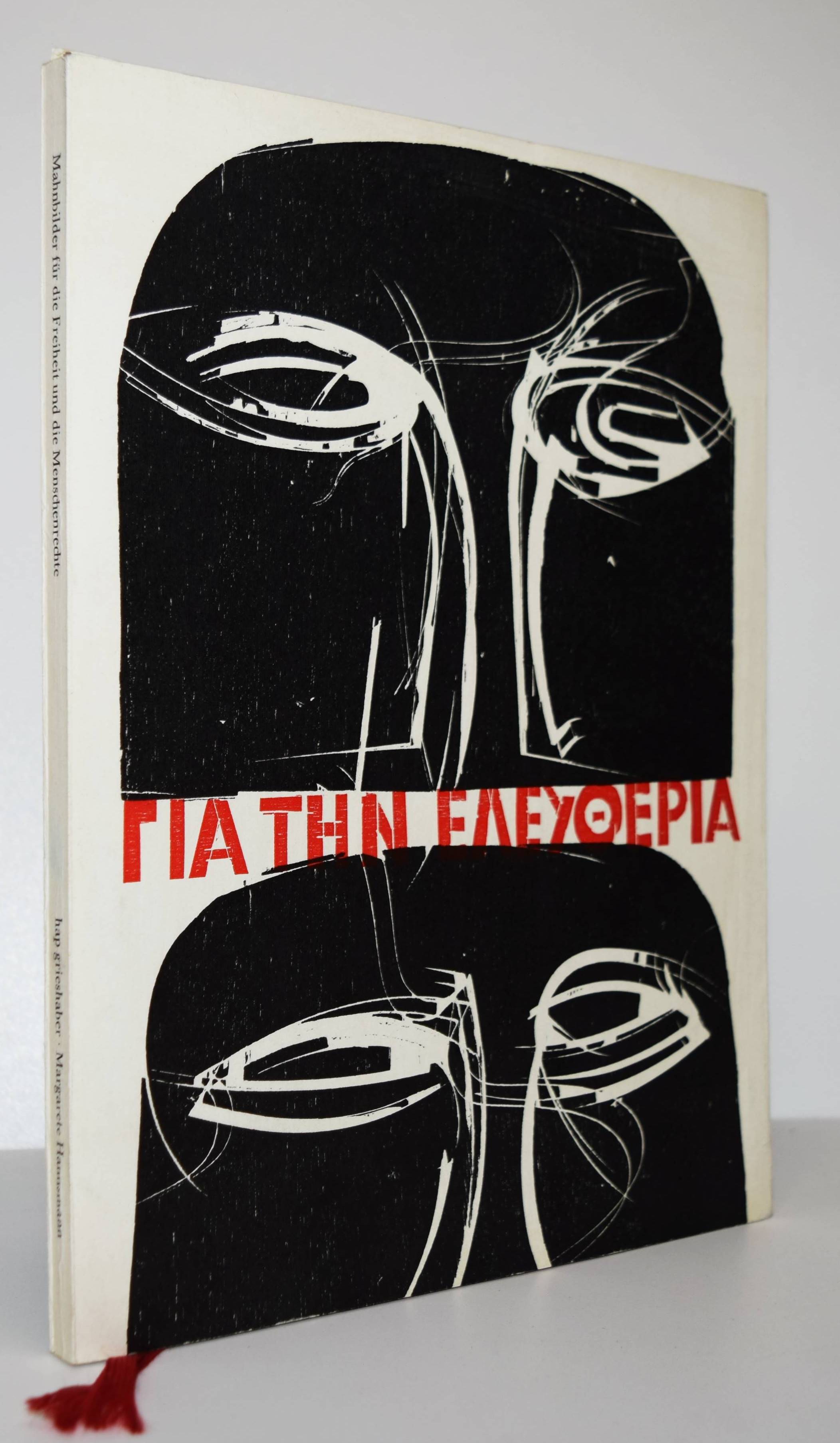 Grieshaber, H(ans) A(dreas) P(aul) und Margarete Hannsmann. Ka to i dikttoria (griechisch). Mahnbilder für die Freiheit und die Menschenrechte. Stuttgart, Galerie Valentien (1977). 4°. 86 S. mit 27 einfarbigen und 14 zweifarbigen Holzschnitten, davon wurden zwei und der Umschlag vom Stock gedruckt. Illustr. Orig.-Kartonumschlag. Eines von 2500 Exemplaren. – Sehr gutes Exemplar.