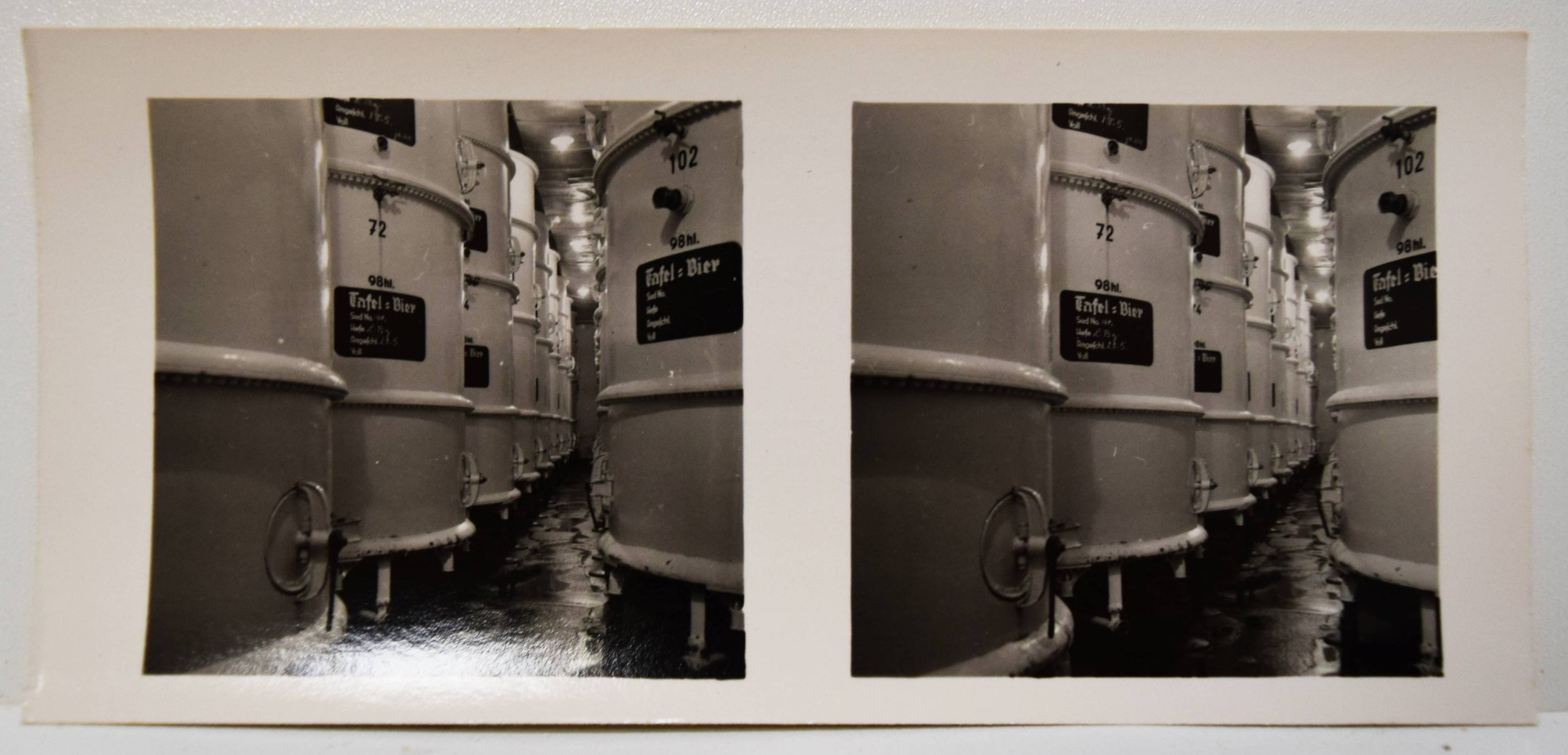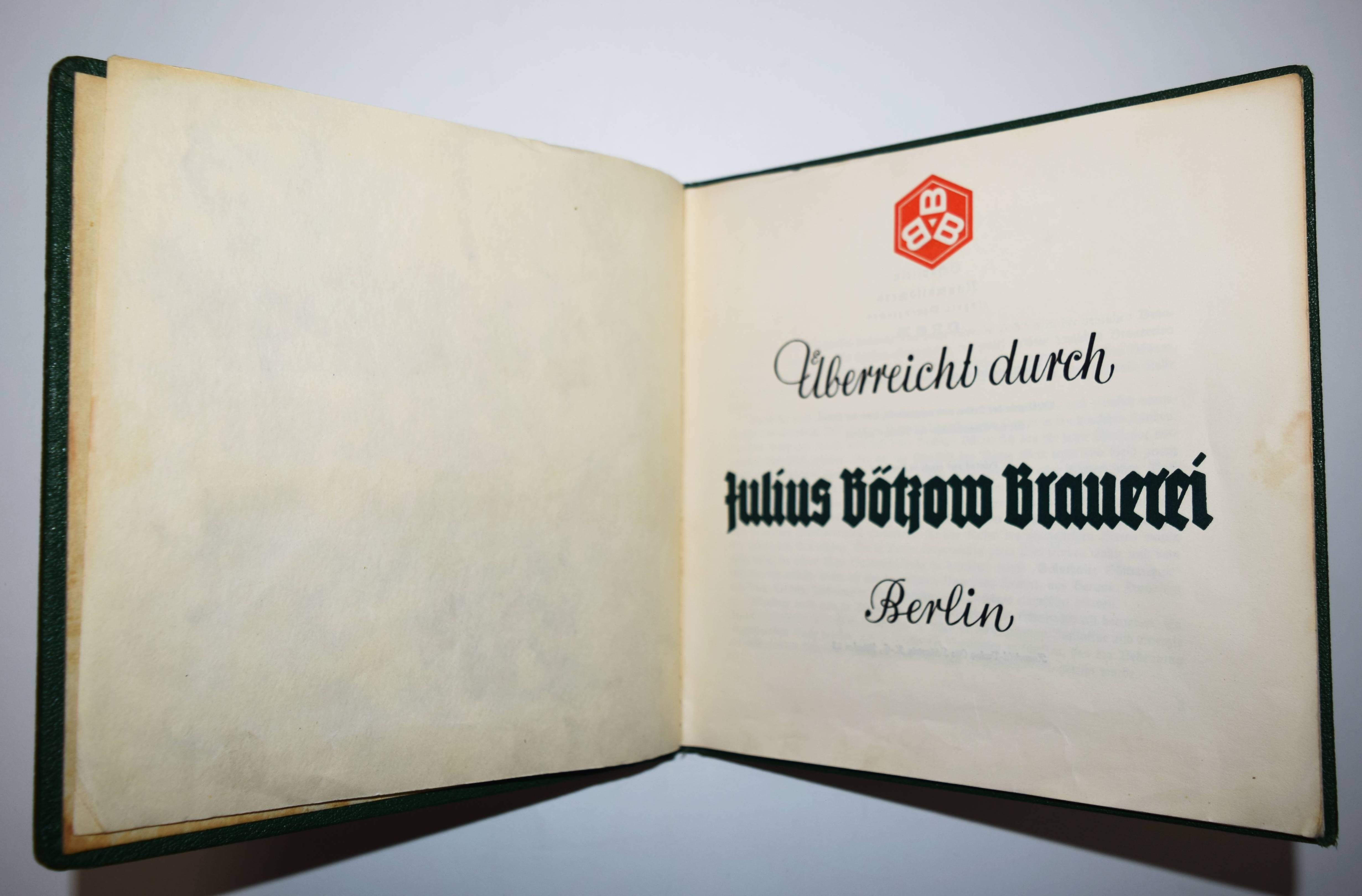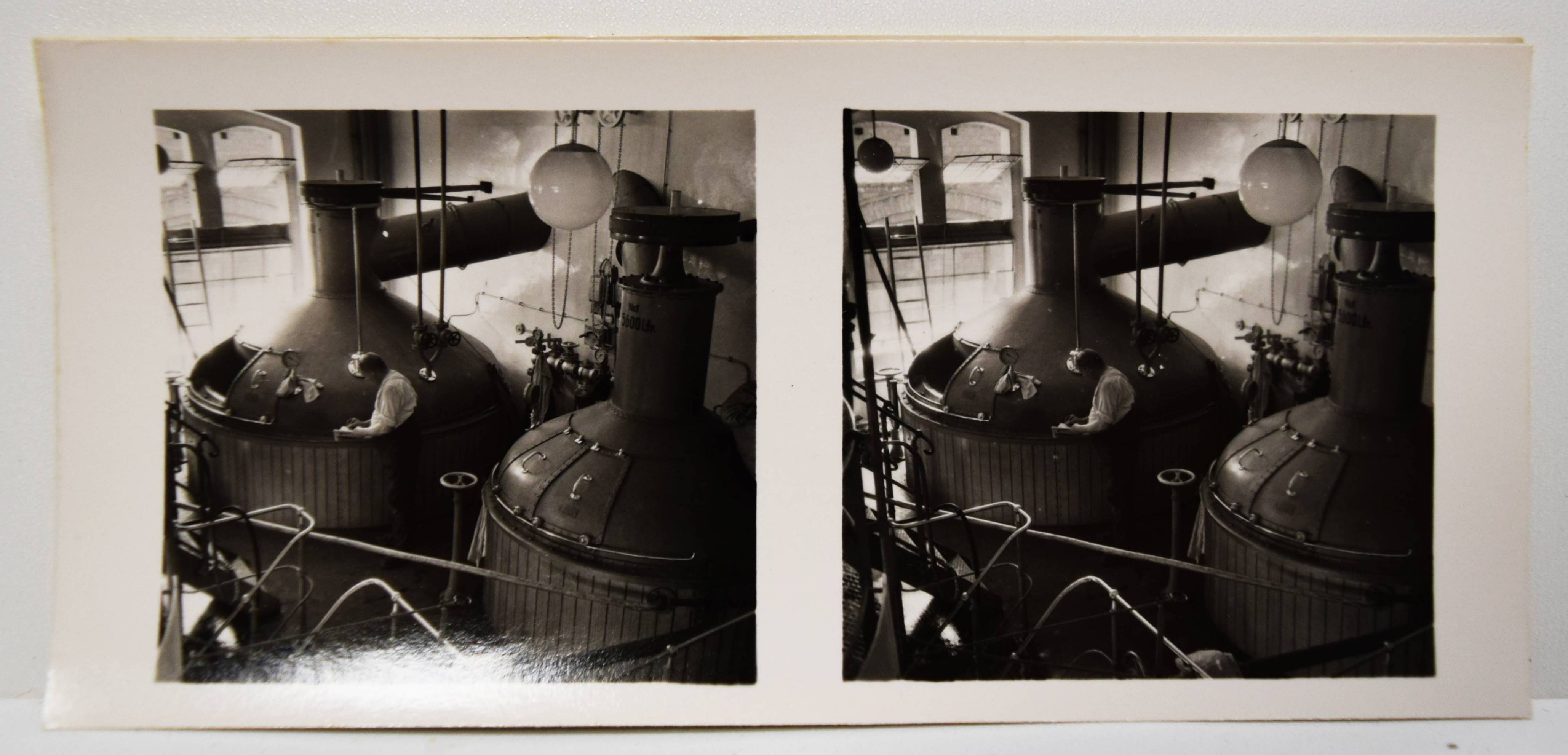 Stereo-Photographie – Bötzow 1864-1939. 75 Jahre. Größte Privat-Brauerei Berlins (Deckeltitel). München, Raumbild-Verlag Otto Schönstein (1939). Quer-8° (19,5 x 20 cm.). 19, (1) S. mit 25 Stereo-Photographien und Stereo-Betrachter aus Metall. Orig.-Leinenband mit Deckeltitel in Rot und Weiß. Vorsteher, Der Raumbildverlag Otto Schönstein. Magazin. Deutsches Historisches Museum. Heft 27, 2001, S. 53, 3.8. – Der achte Band der Sonderausgaben der Raumbild-Verlags Otto Schönstein. Vermutlich nur in sehr kleiner Auflage erschienene Firmenfestschrift für Mitarbeiter. – Die Brauerei Julius Bötzow im Berliner Ortsteil Prenzlauer Berg war die größte Berliner Privatbrauerei. Sie bestand von 1864 bis 1945. – Rücken geringfügig berieben, sehr gutes Exemplar.