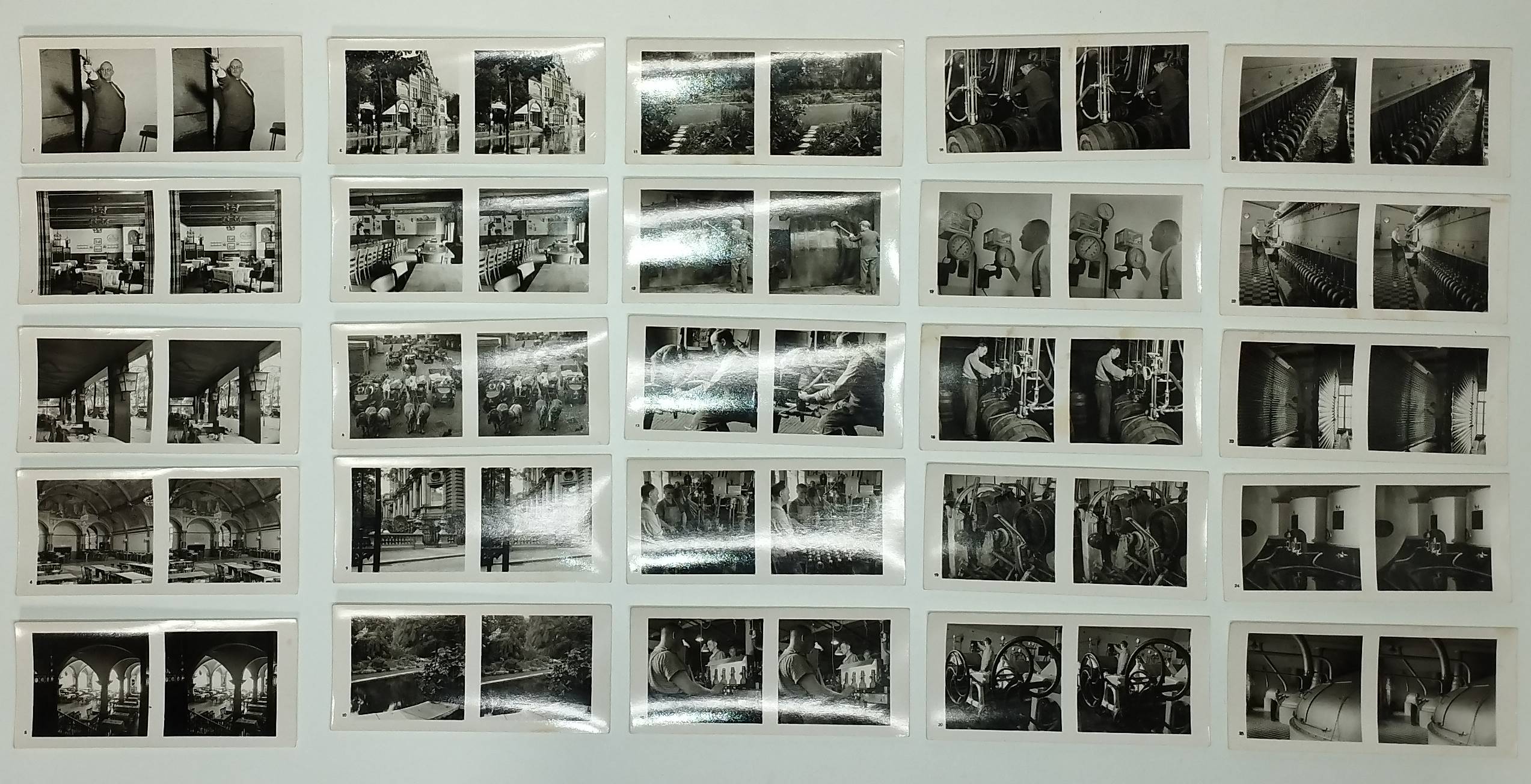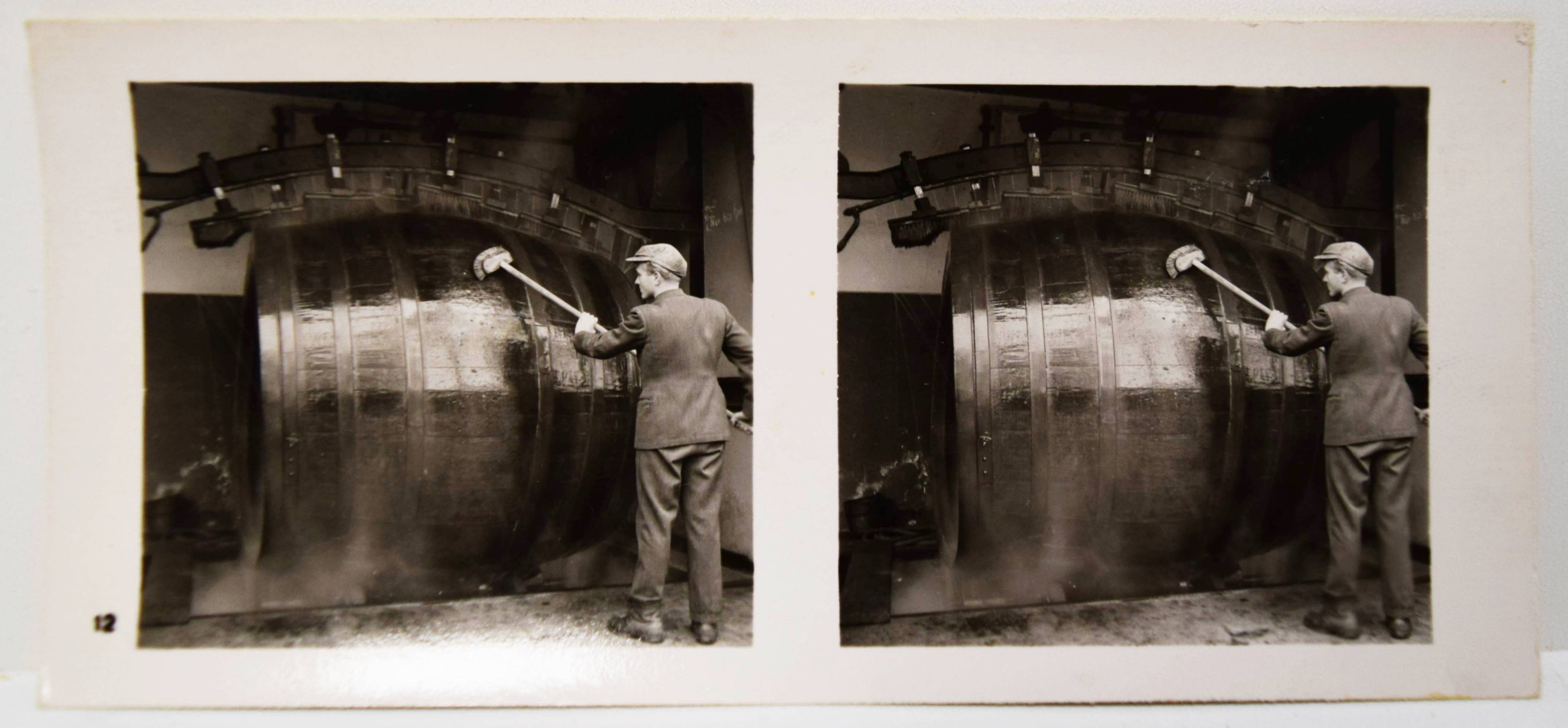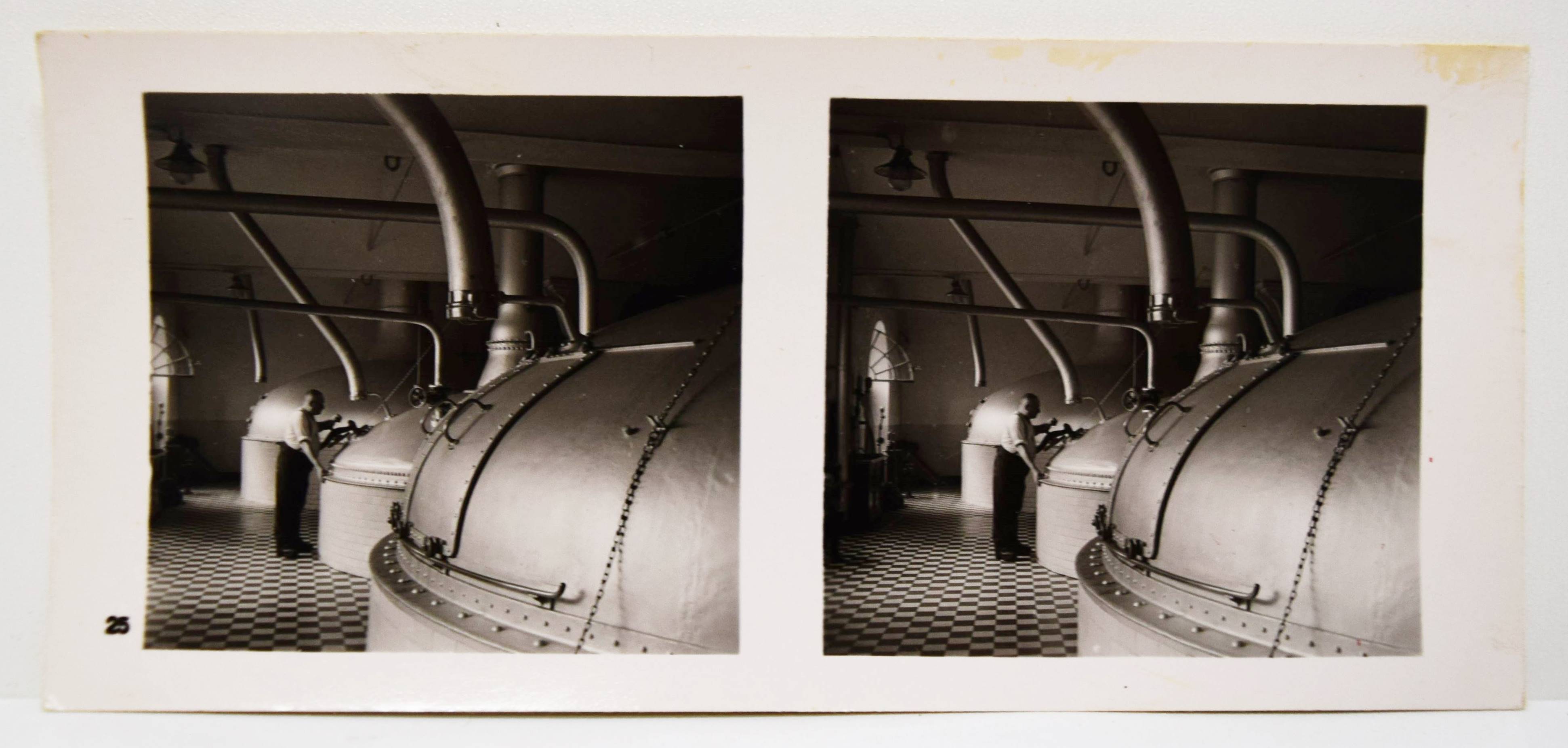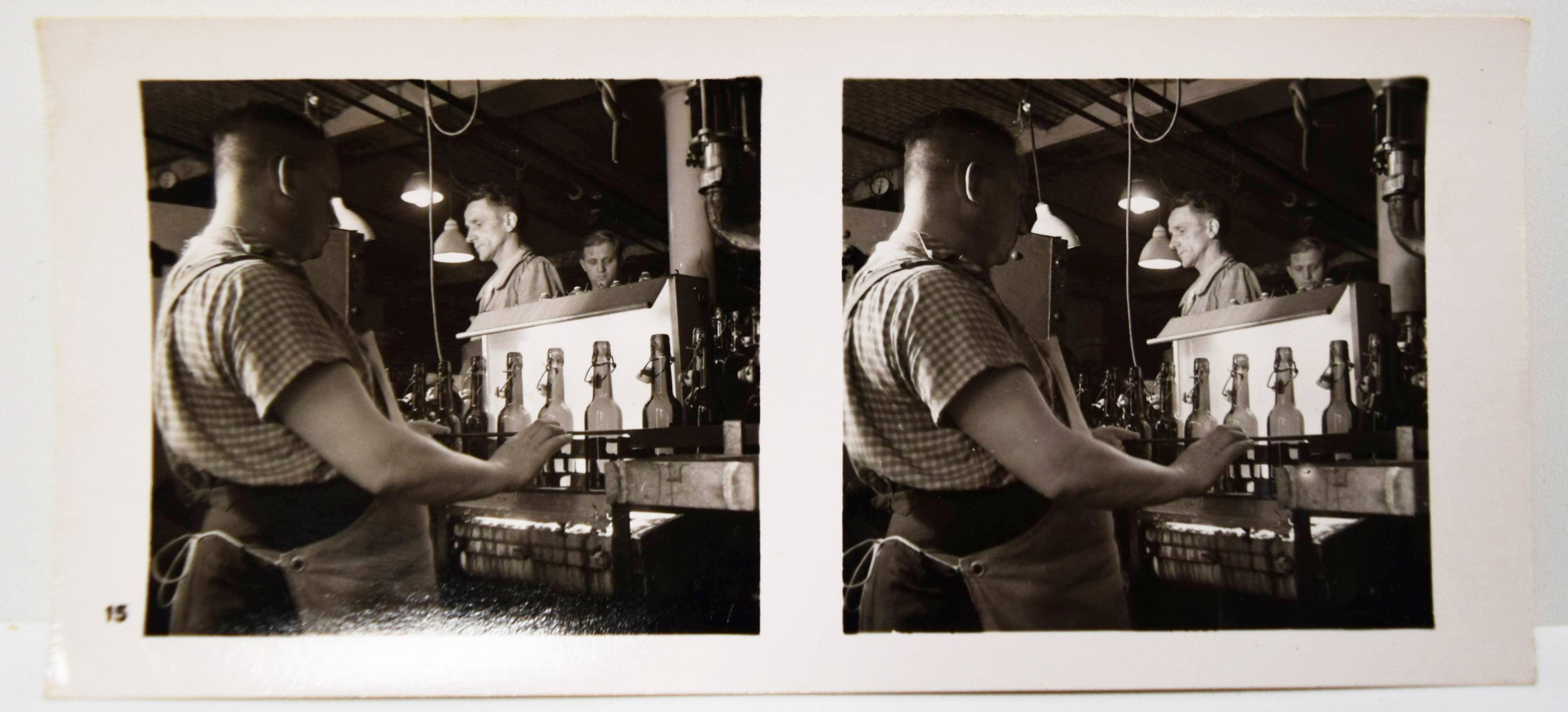 Stereo-Photographie – Bötzow 1864-1939. 75 Jahre. Größte Privat-Brauerei Berlins (Deckeltitel). München, Raumbild-Verlag Otto Schönstein (1939). Quer-8° (19,5 x 20 cm.). 19, (1) S. mit 25 Stereo-Photographien und Stereo-Betrachter aus Metall. Orig.-Leinenband mit Deckeltitel in Rot und Weiß. Vorsteher, Der Raumbildverlag Otto Schönstein. Magazin. Deutsches Historisches Museum. Heft 27, 2001, S. 53, 3.8. – Der achte Band der Sonderausgaben der Raumbild-Verlags Otto Schönstein. Vermutlich nur in sehr kleiner Auflage erschienene Firmenfestschrift für Mitarbeiter. – Die Brauerei Julius Bötzow im Berliner Ortsteil Prenzlauer Berg war die größte Berliner Privatbrauerei. Sie bestand von 1864 bis 1945. – Rücken geringfügig berieben, sehr gutes Exemplar.