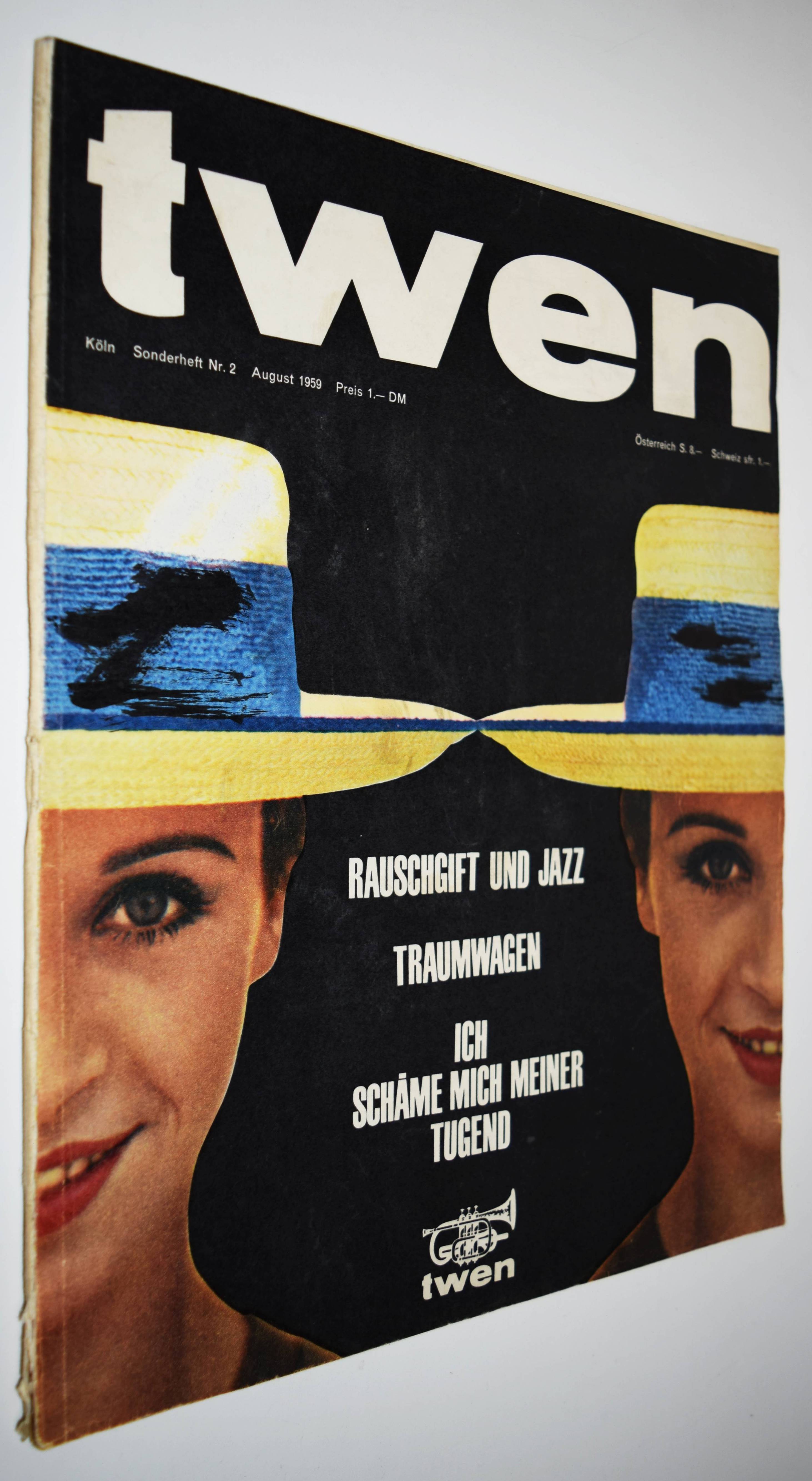 Theobald, Adolf und Willy Fleckhaus (Redaktion). Twen. Revue der Zwanzigjährigen. Sonderheft Nr. 2. Köln, Journal Verlag (DuMont Schauberg) August 1959. Folio (34 x 26,5 cm.). 98 S. mit zahlr. teils farbigen Abbildungen. Farbig illustr. Orig.-Broschur (Fotografie: Christa Peters). Koetzle, Twen. Revision einer Legende, München 1997. – Das sehr seltene zweite Heft der wichtigsten deutschen Jugend-Zeitschrift der 60er Jahre. Mit Fotos von Horst H. Baumann, Burt Glinn, Thomas Höpker, Herbert List, Inge Morath, Roger Fritz und H. P. Roth. Beiträge von Joachim Ernst Berendt, Klaus Bresser, Gottfried Bomans, Hans Dieter Hüsch, K. Kulies, Hans Kramer, Limmroth, Christa Rotzoll, Ulrich Sempert, Sigi Sommer, Kyra Stromberg und Dieter Thoma. „Rauschgift und Jazz – Traumwagen – Ich schäme mich meiner Tugend“. – Rücken etwas berieben, sehr gut erhalten.