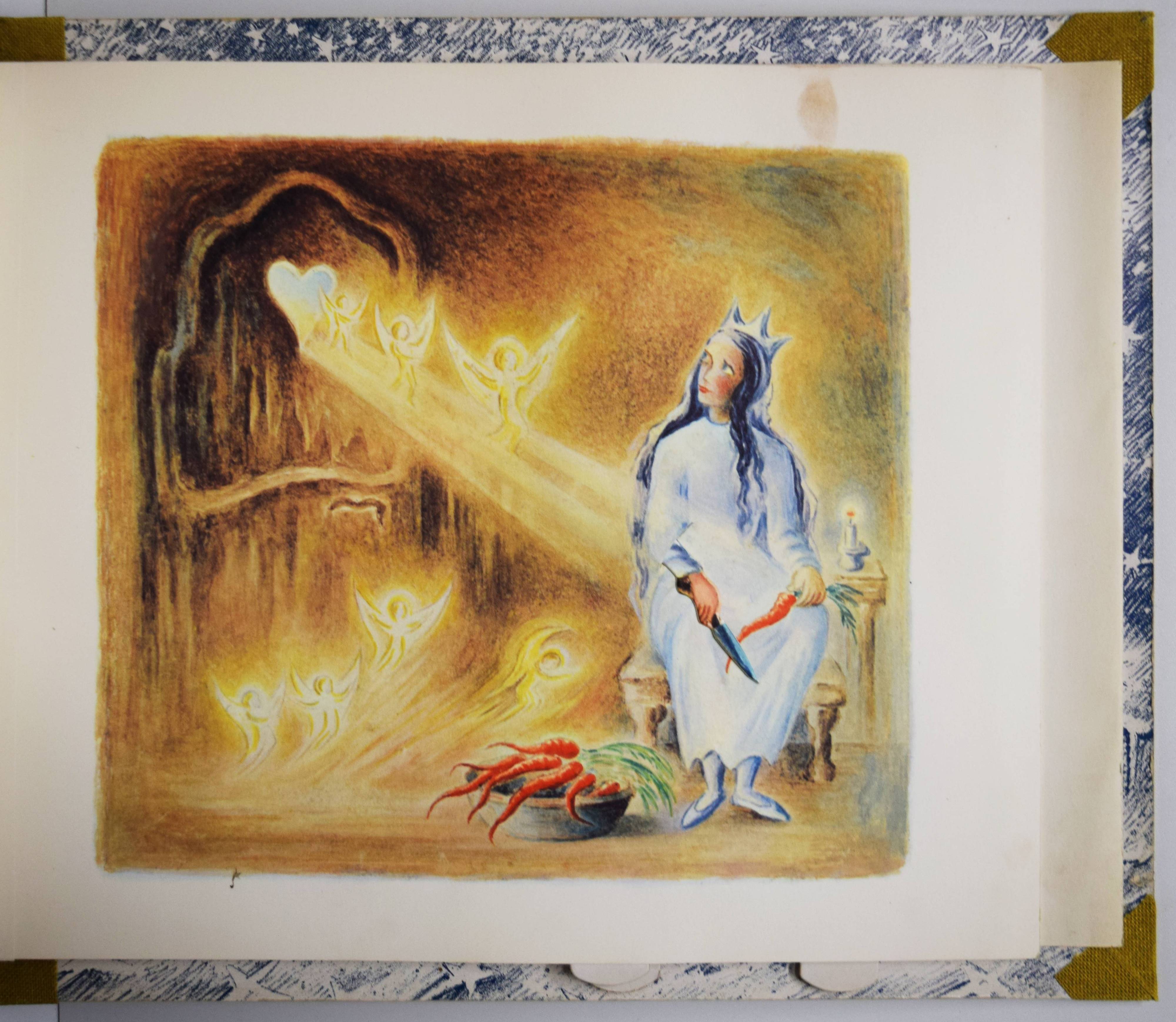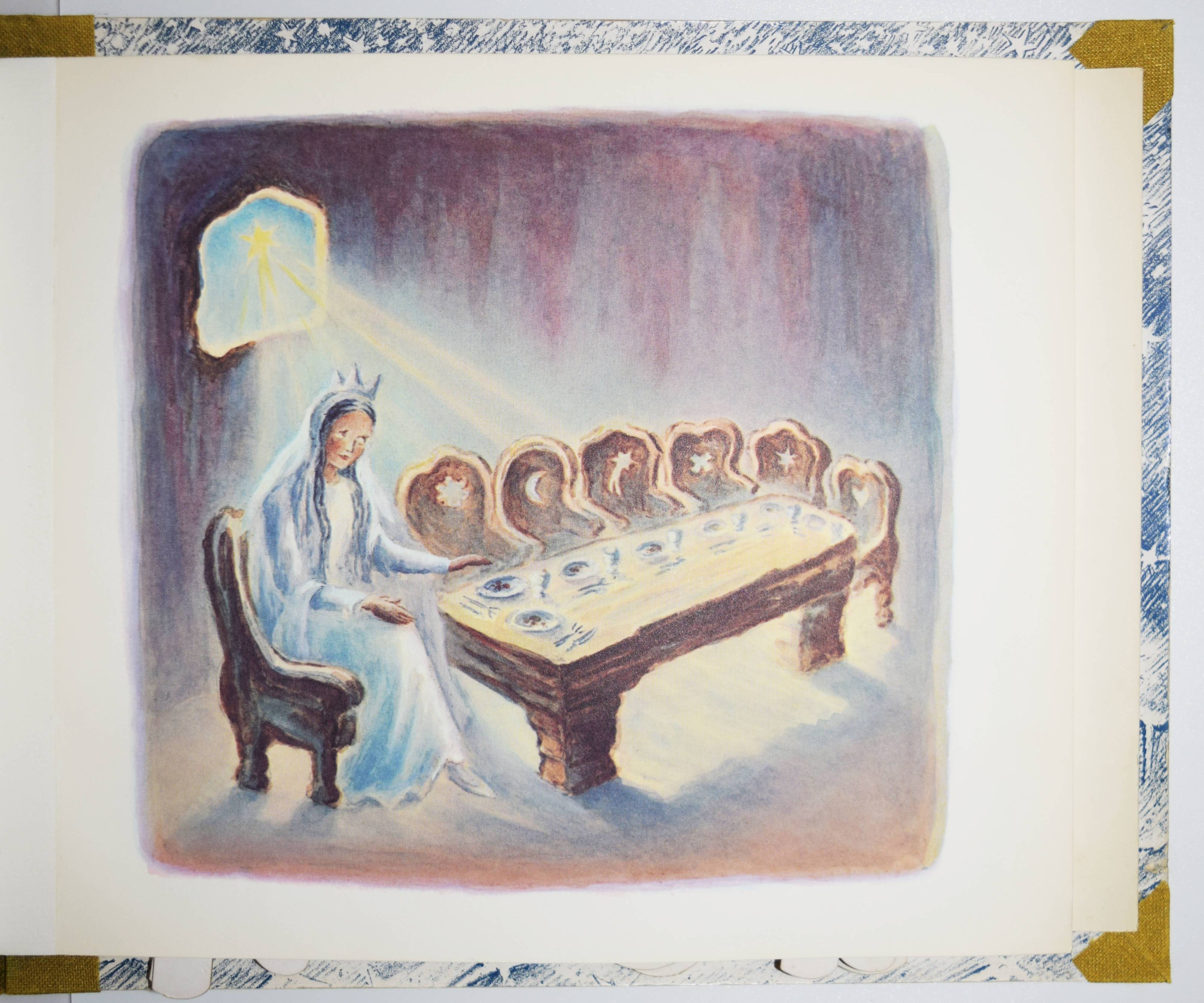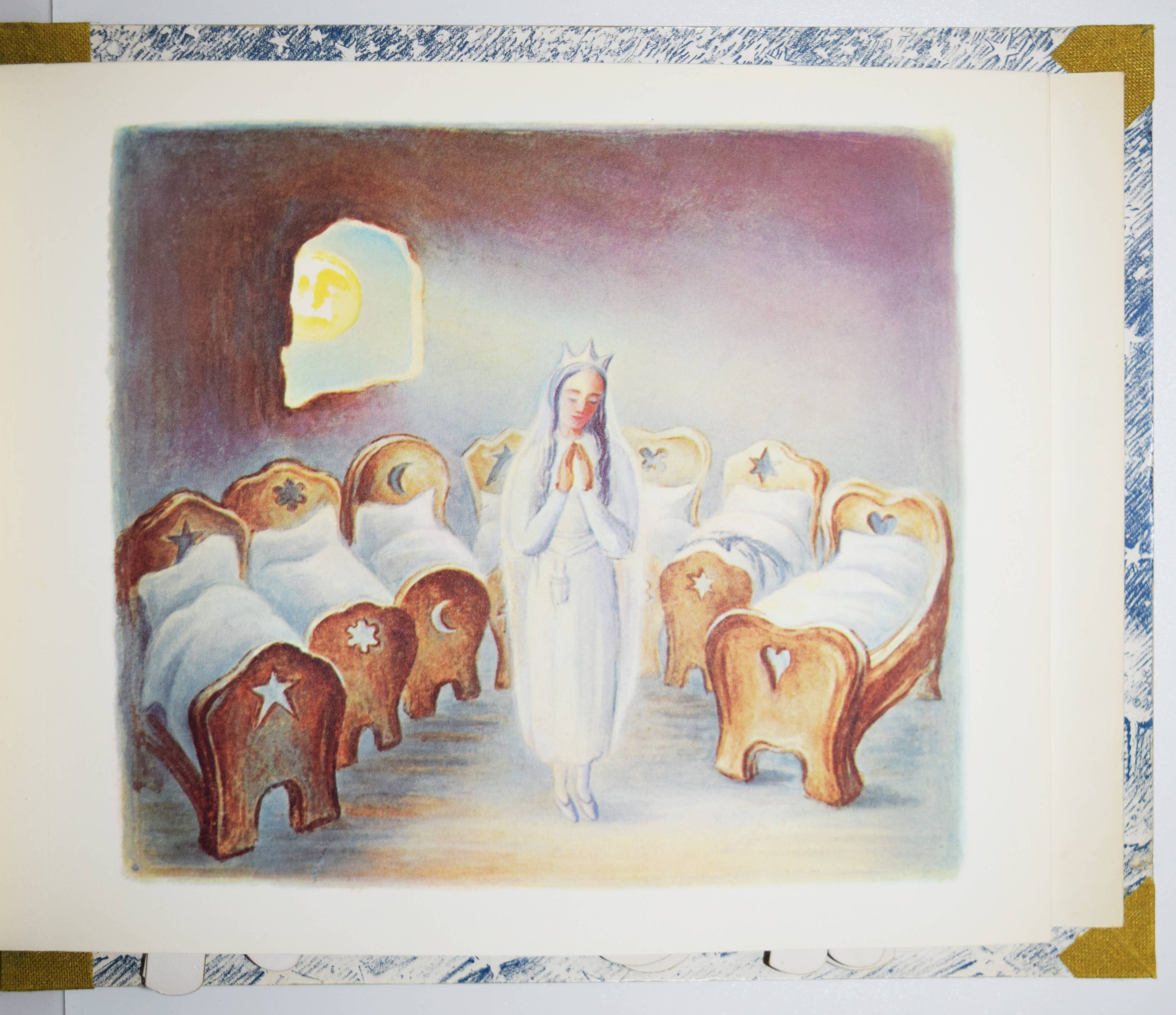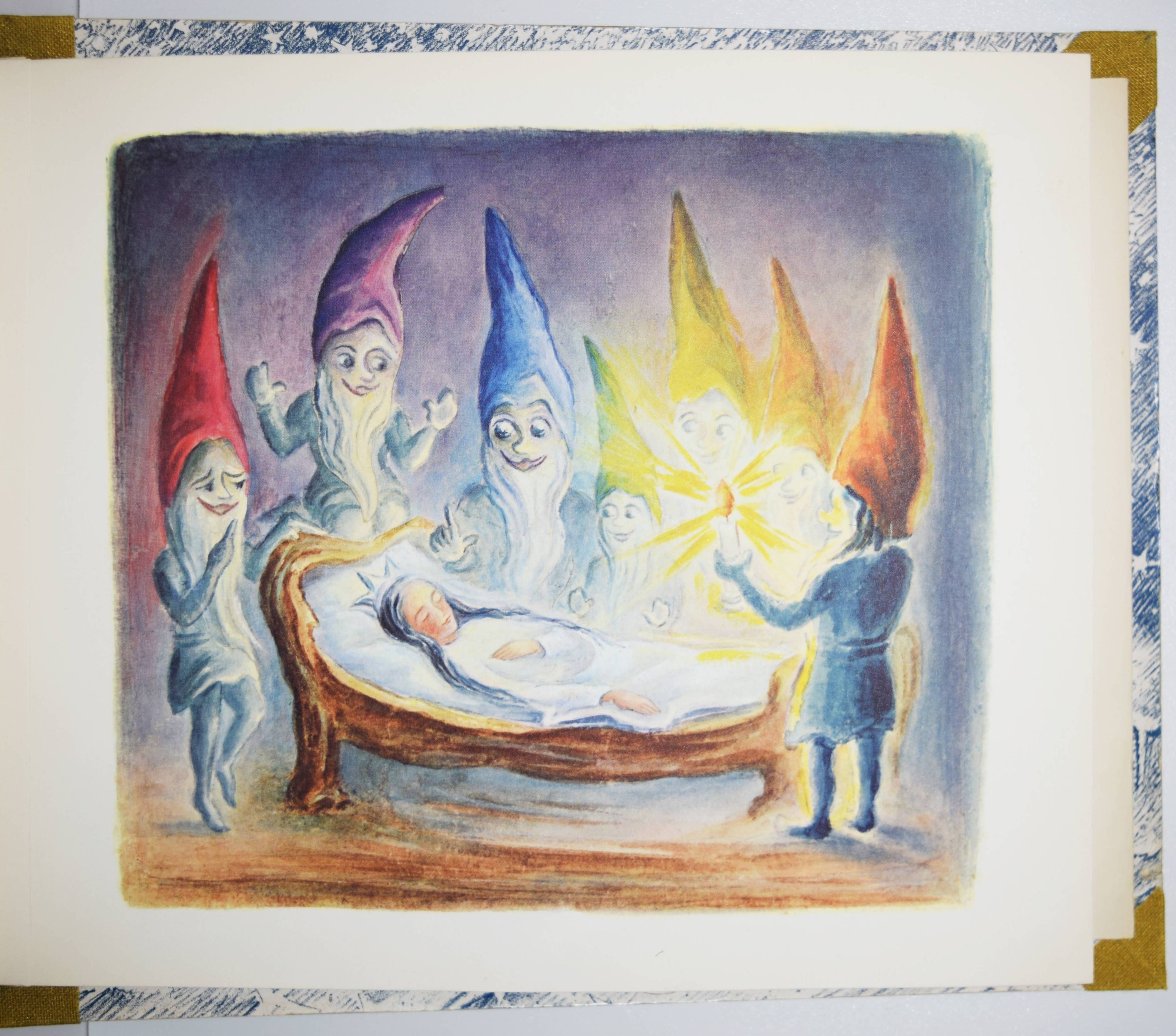 Strachwitz, Marta. Schneewittchen. Ziehbilderbuch von Hilde Langen. Dornach, Verlag der Werkstatt „Zu den sieben Zwergen“ 1967. Quer-4°. [15] Bl. mit illustr. Titel, 12 (1 doppelblattgr.) farblithogr. Tafeln, davon 6 mit beweglichen Teilen und Ziehmechanismus und Illustrationen im Text. Illustr. Orig.-Halbleinenband. Vgl. Muck II, 5498 (erste Ausgabe von 1947). Nicht bei im Lexikon Schweizer Bilderbuch-Illustratoren (SBI). – Seltenes anthroposophisches Spiel-Bilderbuch. Bei den Tafeln können meist mehrere Teile durch einen Ziehmechanismus bewegt werden. – Sehr gutes Exemplar.