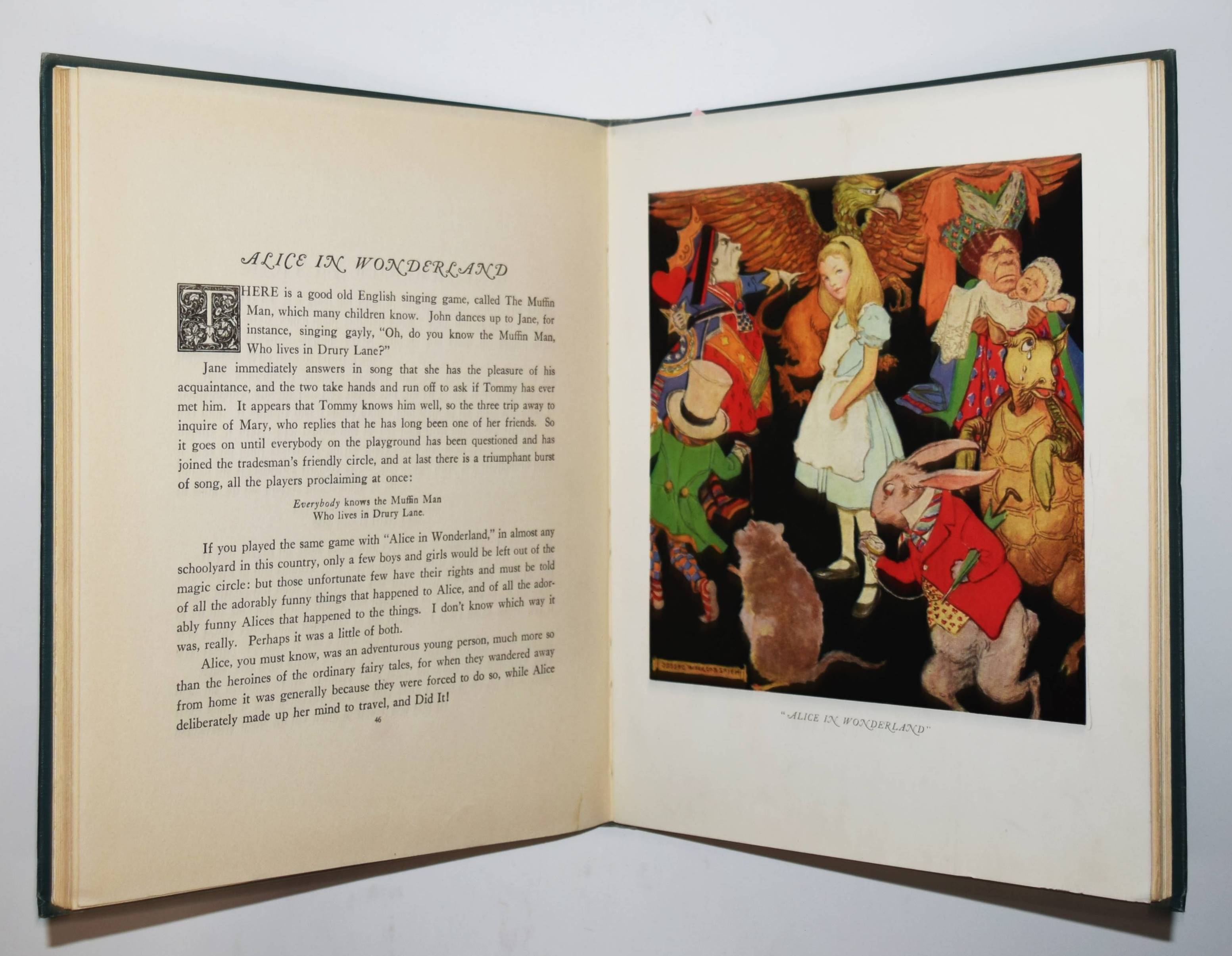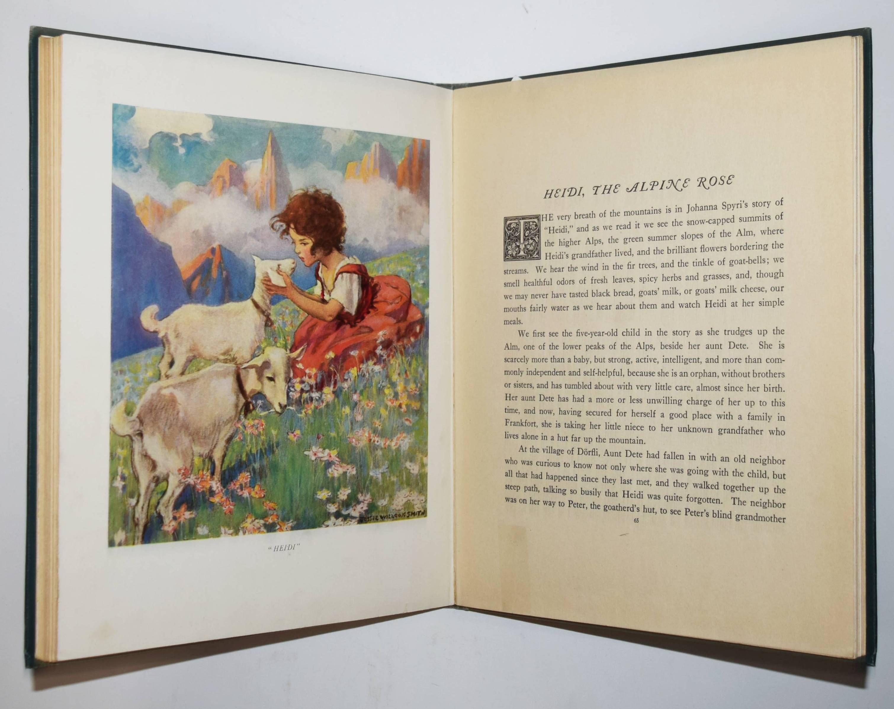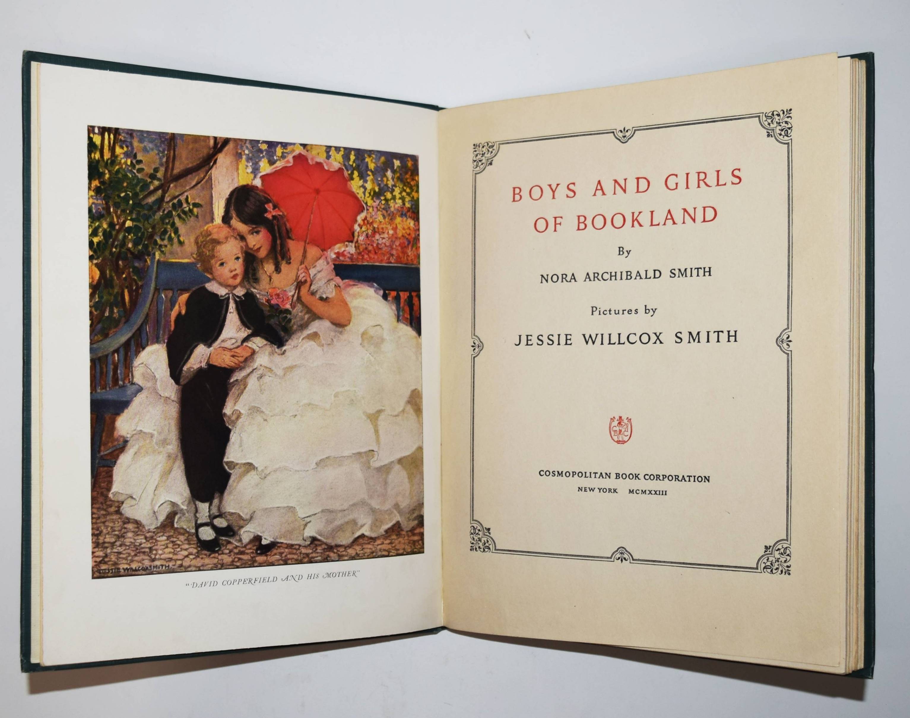 Smith, Nora Archibald. Boys and Girls of Bookland. Pictures by Jessie Willcox Smith. New York, Cosmopolitan Book Corporation 1923. Gr.-4° (31 x 26 cm.). [5] Bl., 100 S. mit 11 Farbtafeln. Dunkelblauer Orig.-Leinenband mit goldgepr. Rücken- und Deckeltitel und farbigem Deckelbild. Erste Ausgabe. – Das erfolgreichste Kinderbuch der amerikanischen Kinderbuch-Autorin N. A. Smith (1859-1934). Mit elf Kindermärchen in denen berühmte Kinderbuch-Figuren vorkommen, unter anderen David Copperfield, Alice in Wonderland, Heidi und Mowgli aus dem Dschungel-Buch und schönen Farbtafeln von J. W. Smith (1863-1935). – Sehr gutes sauberes Exemplar.