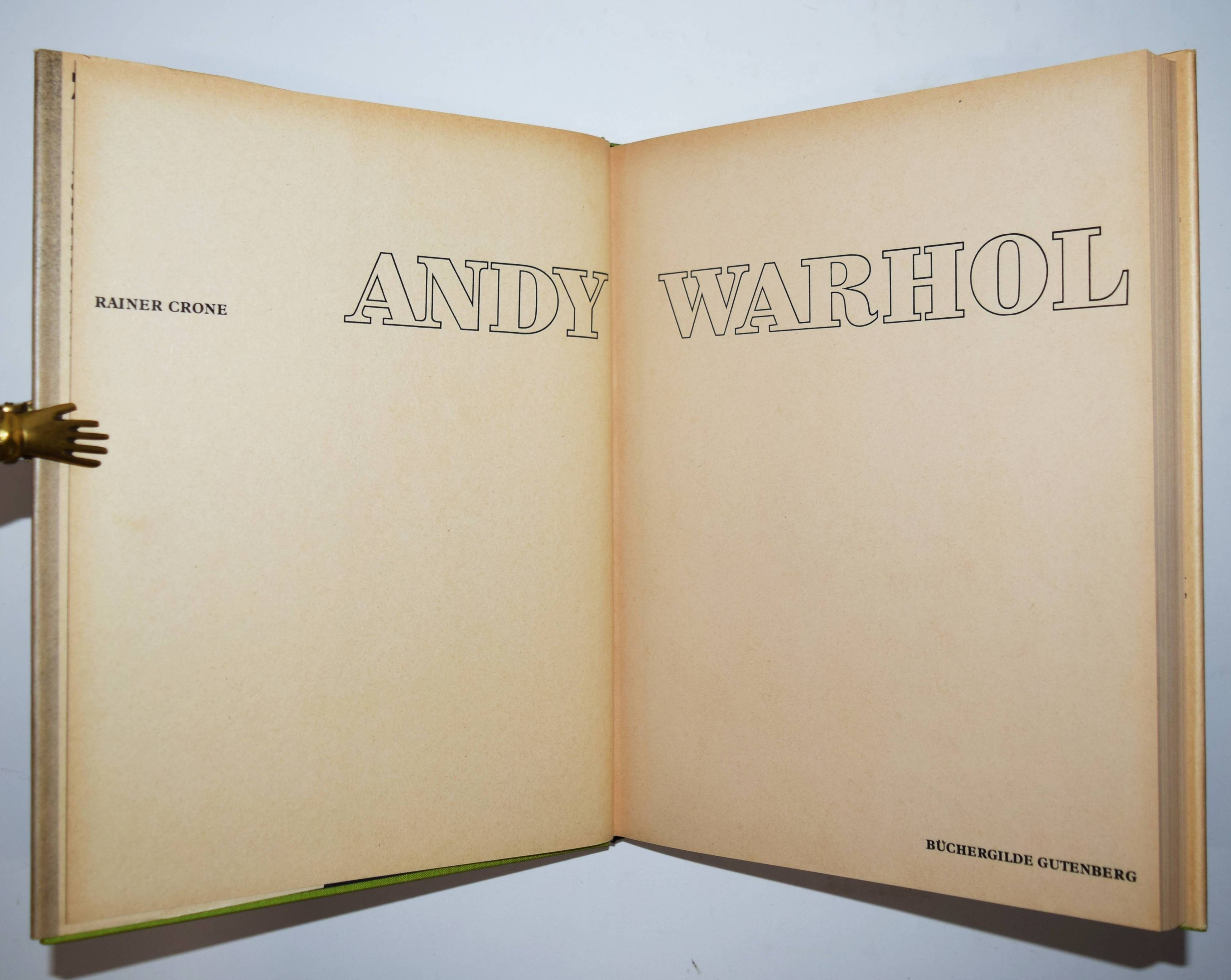 Warhol – Crone, Rainer Andy Warhol. München, Büchergilde Gutenberg (1971). 4°. 331, (1) S. mit zahlr. (16 farb.) Abb. Orig.-Leinenband mit farbig illustr. Schutzumschlag. Frühe Monographie, mit einem Oeuvrekatalog, einer ausführlichen Würdigung des „Filmers Warhol“ und einer Bibliographie. – Die erste Ausgabe erschien 1970 in der Schweiz. – Sehr gutes Exemplar der Büchergilde-Ausgabe mit neuem Schutzumschlag (″The Twenty-five Marilyns, 1962“).