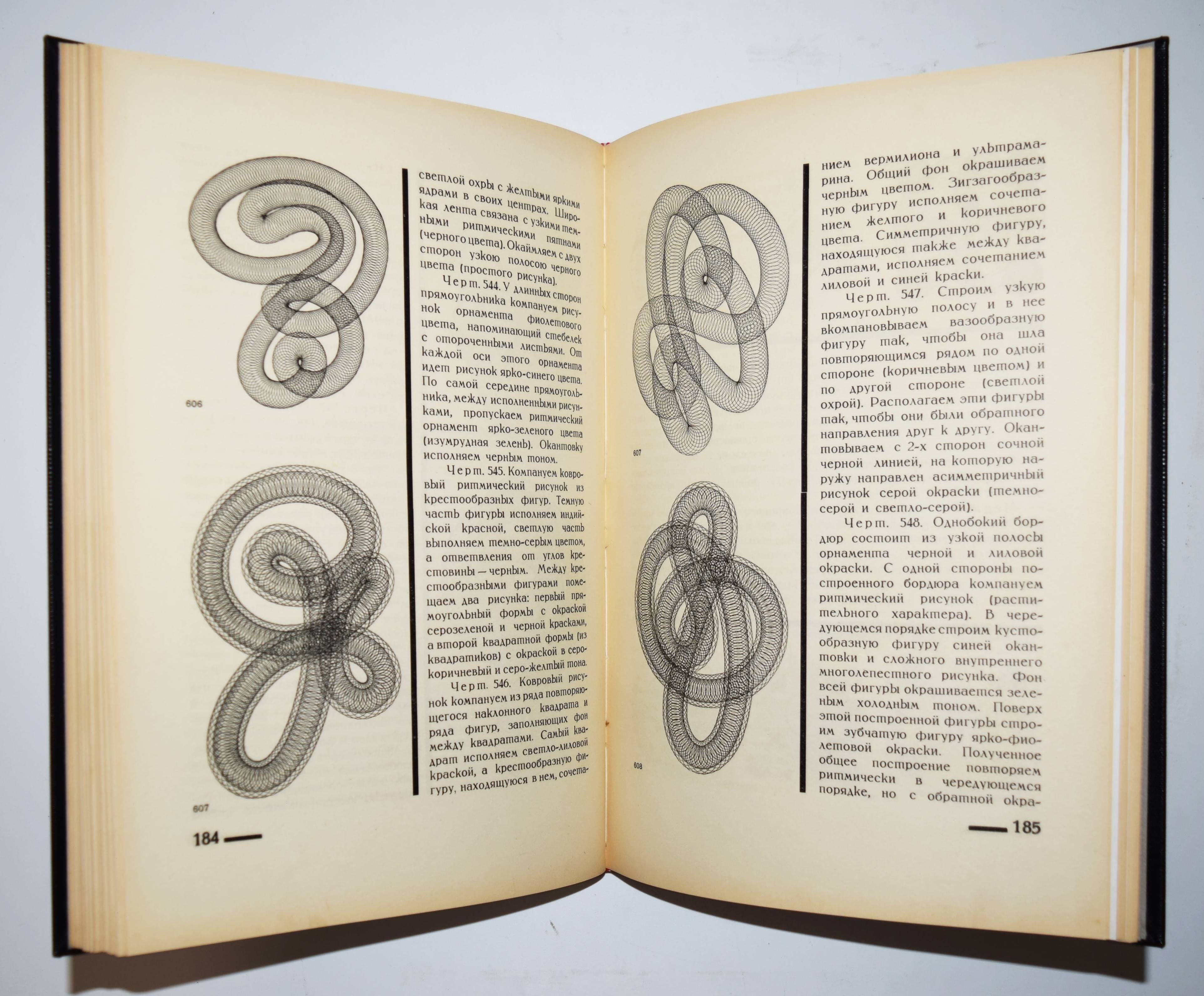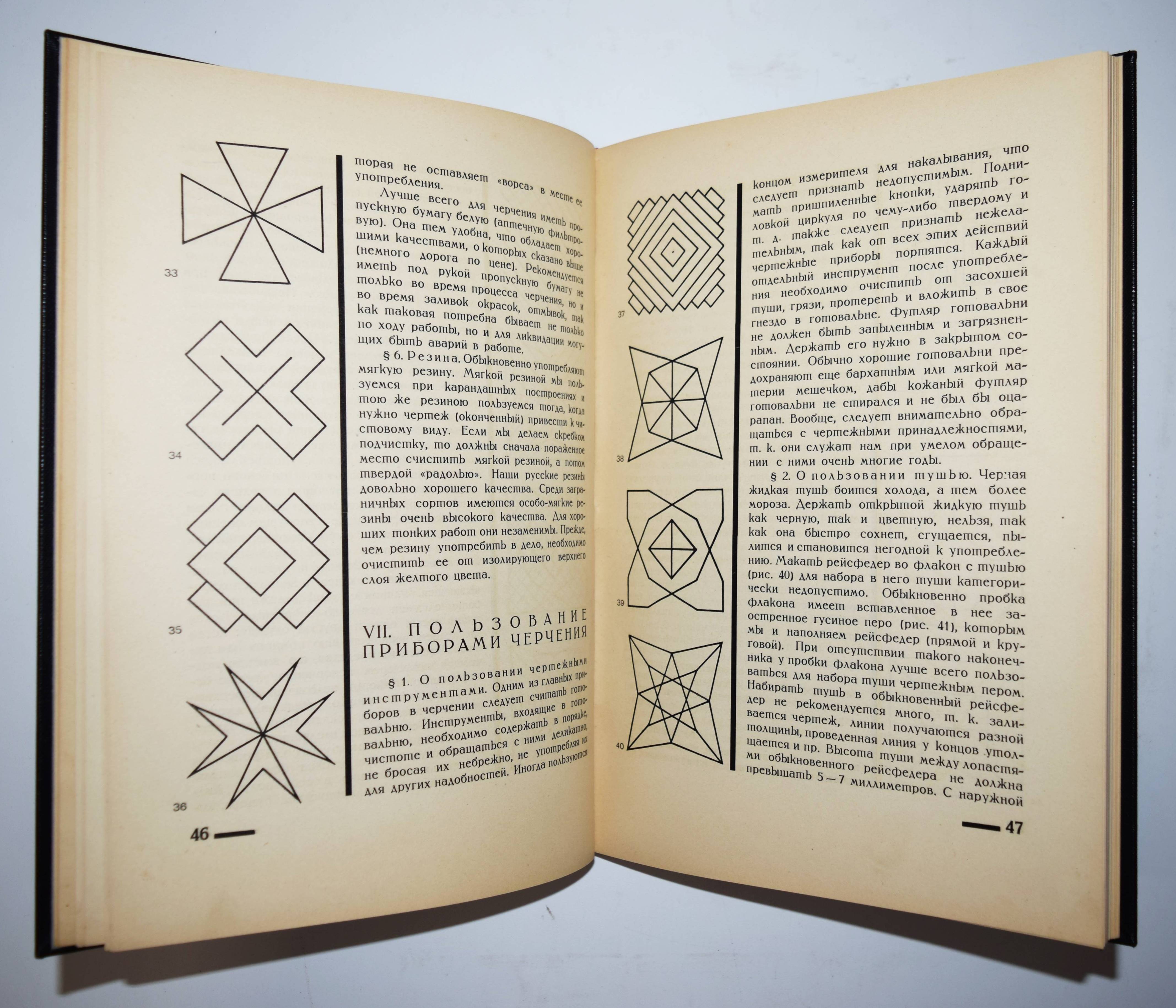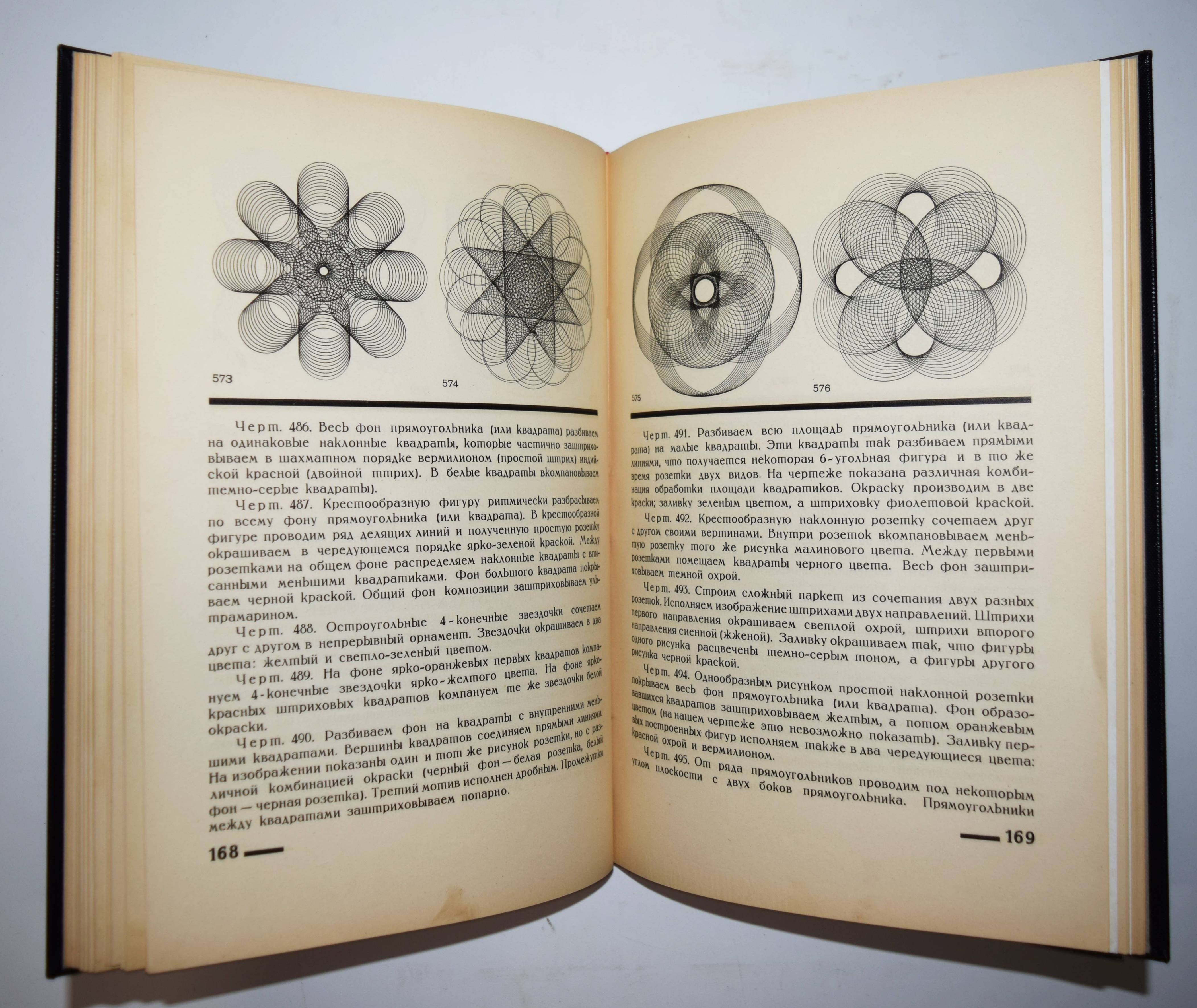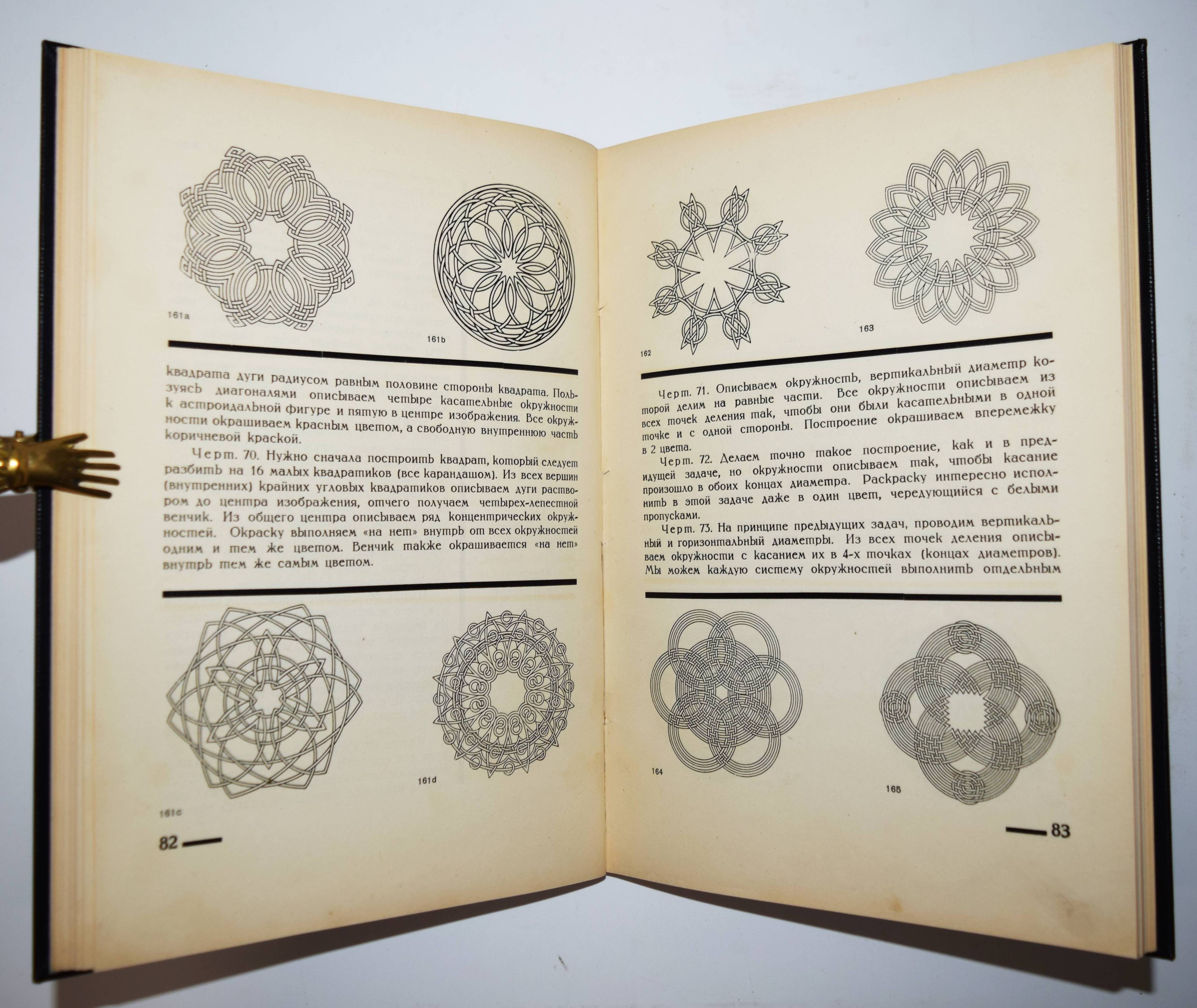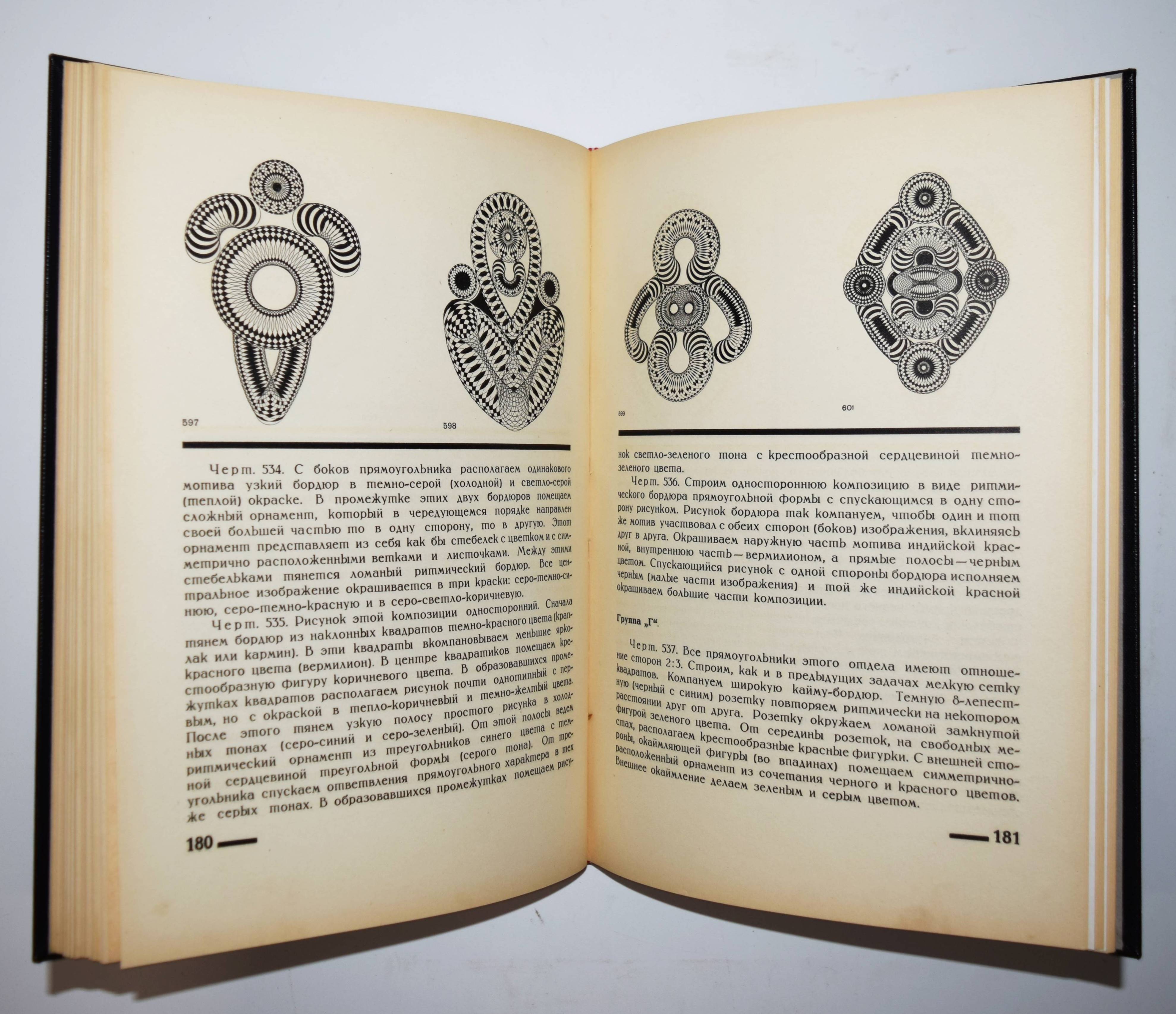 Chernikhov (Tschernychow, Tchernikhov), Iakov (Georgievich). Ornament. Kompozitsionno-klassicheskie postroeniia. (Compositional-Classical Constructions, Konstruktion klassischer Komposition). Leningrad, Eigenverlag 1930/1931. 4° (30 x 22,5 cm.). 221 S., [3] Bl. mit 8 Farbtafeln und 772 weiteren Abbildungen im Text. Moderner schwarzer Leinenband mit silbergeprägtem Rückentitel in Pappschuber mit montiertem Orig.-Umschlag (hinterer Umschlagdeckel liegt bei). Compton, Russian Avant-Garde Books 1917-34, S. 142. Hellyer 73. Rowell/Wye 857 (verz. nur 7 Farbtafeln). – Sehr seltene erste Ausgabe von Chernikhovs berühmtem Lehrbuch zur avantgardistischen Formenlehre. Nur in 3100 Exemplaren erschienen. – „A practical textbook aimed at students, with illustrations of correct and incorrect ways to draw, color, etc., and it seems remarkable today for its myriad of geometric conceits generated without the help of a computer“ (Compton). – Sehr gutes Exemplar.