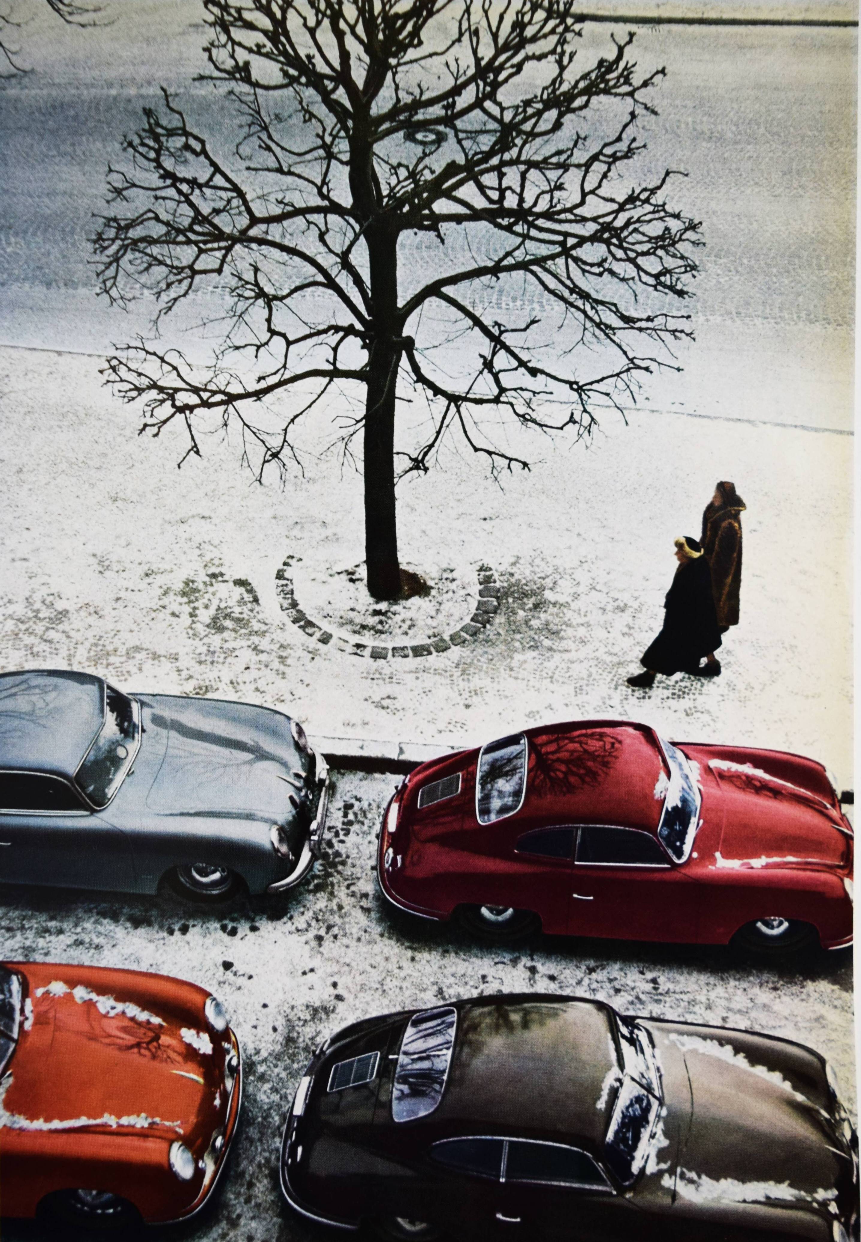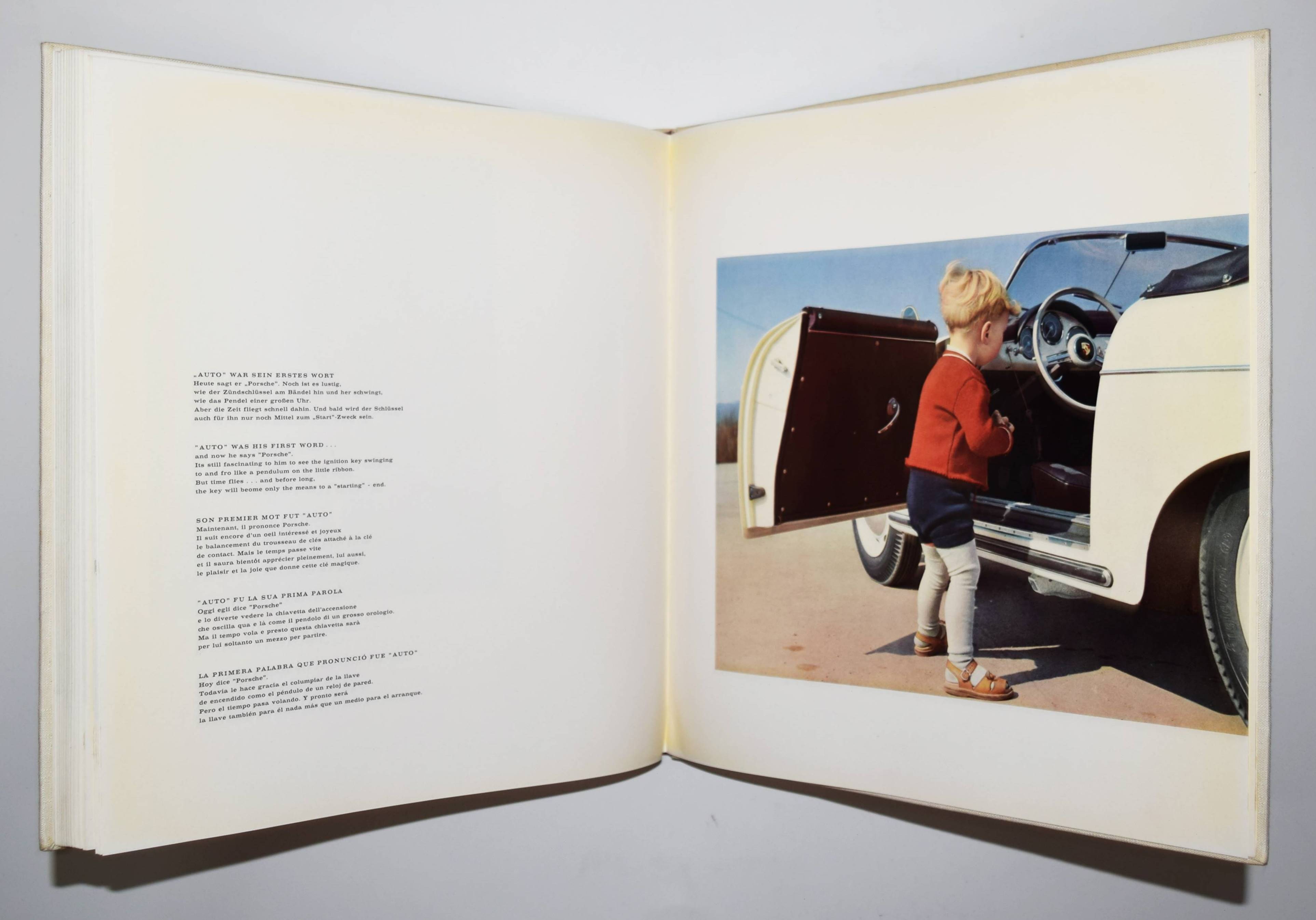 Lapper, Hermann (Hrsg.). Liebe zu ihm. Ein Bildwerk über den Porschewagen 1950 – 1960. Love for the porsche. – L’amour qu’on a pour elle. – Amore per la Porsche. – Amor a el … Stuttgart, Selbstverlag des Herausgebers (1960). Gr.-4° (30,5 x 30 cm.). [90] Bl. mit meist farb. Abbildungen. Orig.-Leinenband mit farbig illustr. Schutzumschlag. Einzige Ausgabe. – Texte in Deutsch, Englisch, Französisch, Italienisch und Spanisch. – Die seltene erste Monographie über den Porsche 356, das erste Serienmodell von Porsche. – „Erster Wagen mit dem Namen Porsche war der Prototyp 356/1, ein Roadster mit Mittelmotor, zu dessen Entstehung Ferry Porsche sagte: „Am Anfang schaute ich mich um, konnte aber den Wagen, von dem ich träumte, nicht finden. Also beschloss ich, ihn mir selbst zu bauen.“ In Serie ging der Porsche 356 mit geändertem Rahmen und einem Heckmotor. Die ersten 50 Wagen mit Aluminiumkarosserie wurden in Handarbeit in Gmünd in Kärnten gebaut, wohin Porsche gegen Ende des Zweiten Weltkriegs ausgewichen war. … Die Formgebung stammte von Erwin Komenda, der schon die Karosserie des VW Käfer gestaltet hatte. Die Gestaltung des Porsche 356 ist als Werk der angewandten Kunst urheberrechtlich geschützt (§ 2 Abs. 1 Nr. 4, Abs. 2 UrhG) und Komenda als Urheber anerkannt“ (Wikipedia). – Das erste Modell des berühmten Stuttgarter Sportwagen Herstellers wurde 1948 bis 1965 produziert. – Schutzumschlag am Kapitel und Fuss etwas berieben und am Rückendeckel mit geschlossenem Schnitt, sonst sehr gut erhalten.